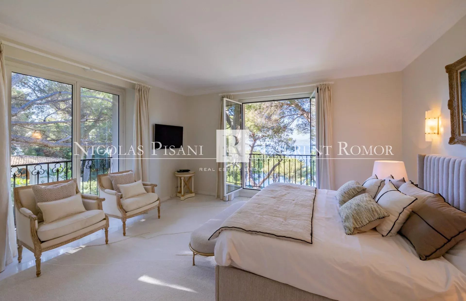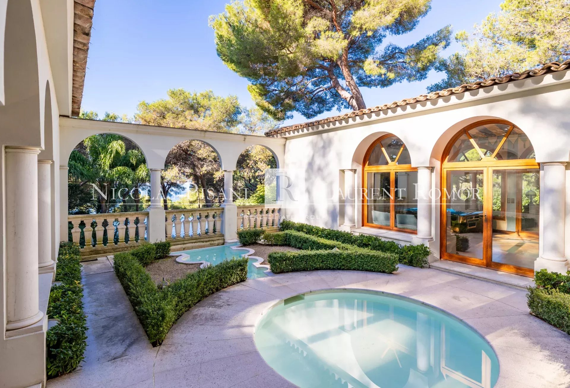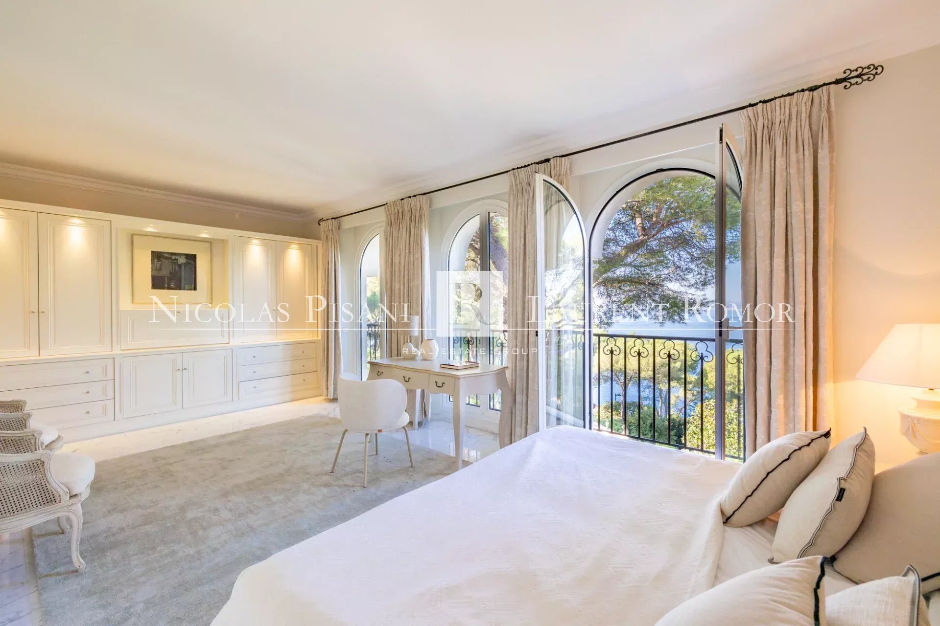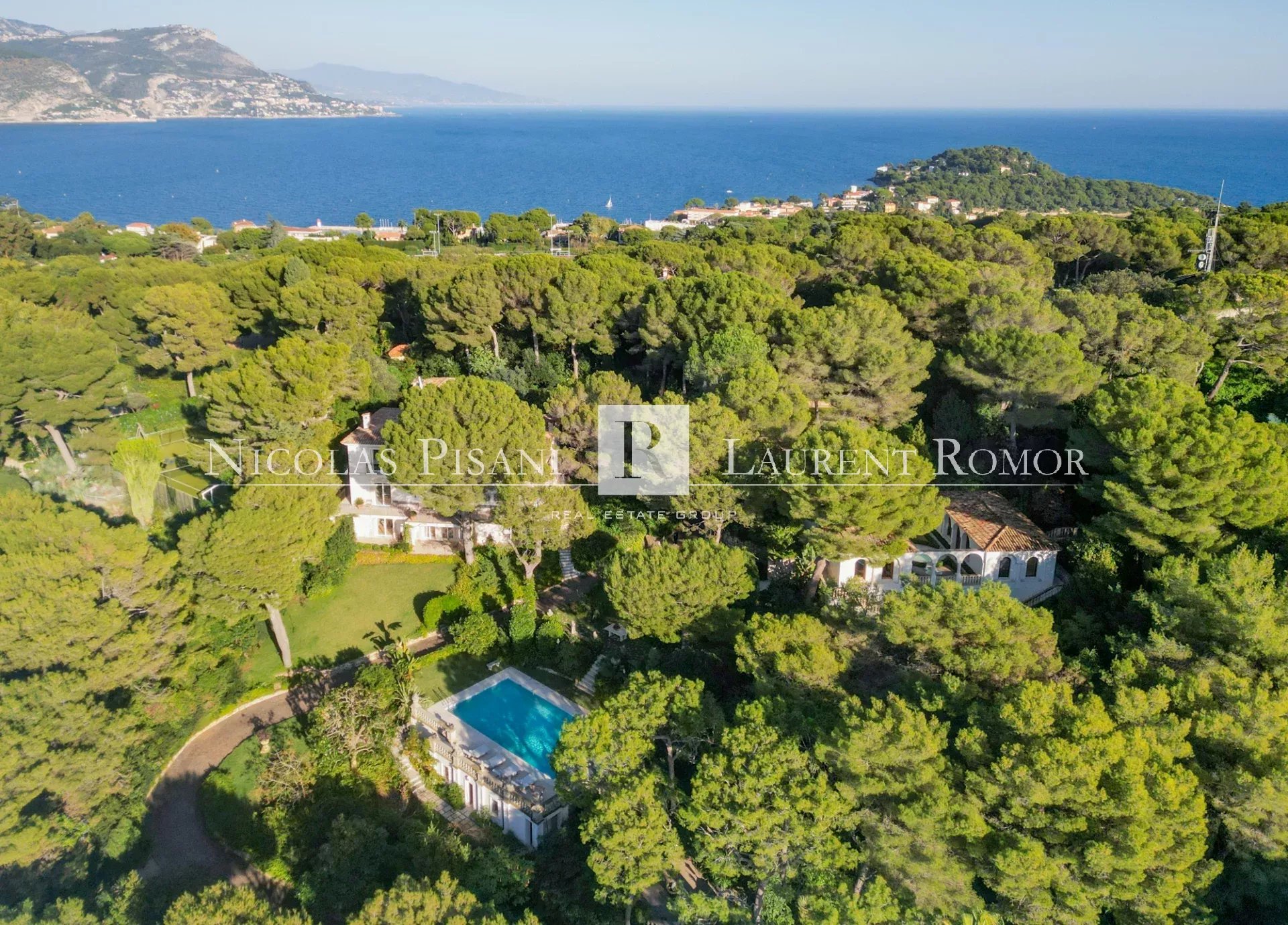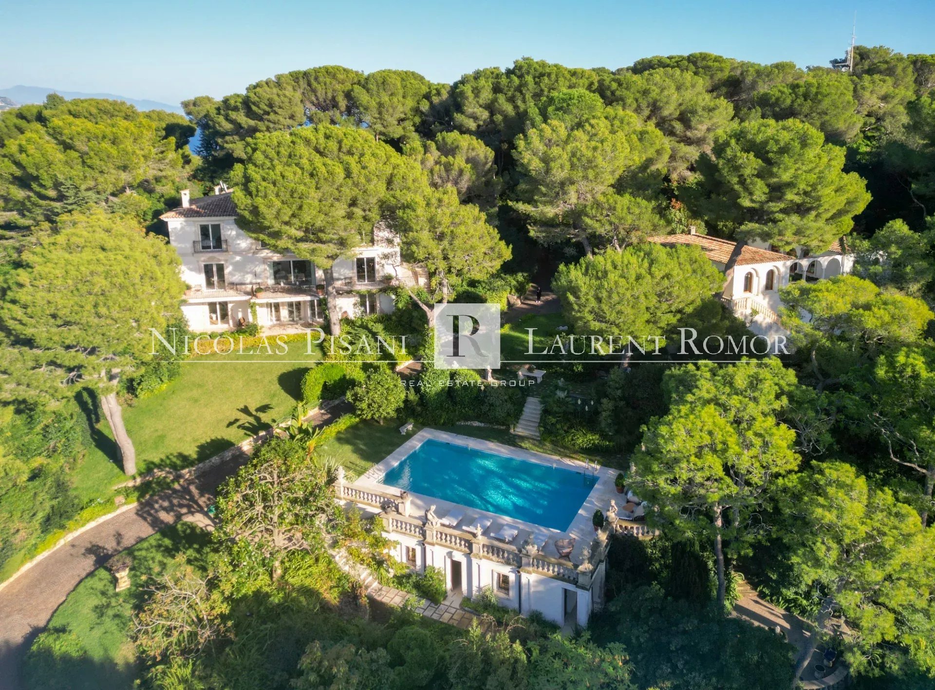 La proprietà dispone di una villa principale, di stile borghese romantico, costruita su tre livelli, con un ampio ingresso, un doppio soggiorno con camino, una sala da pranzo che si affaccia su una grande terrazza e una vista panoramica sul mare verso la Baia degli Angeli, una cucina indipendente attrezzata e in totale sei camere da letto, ognuna con cabina armadio, bagno o doccia.