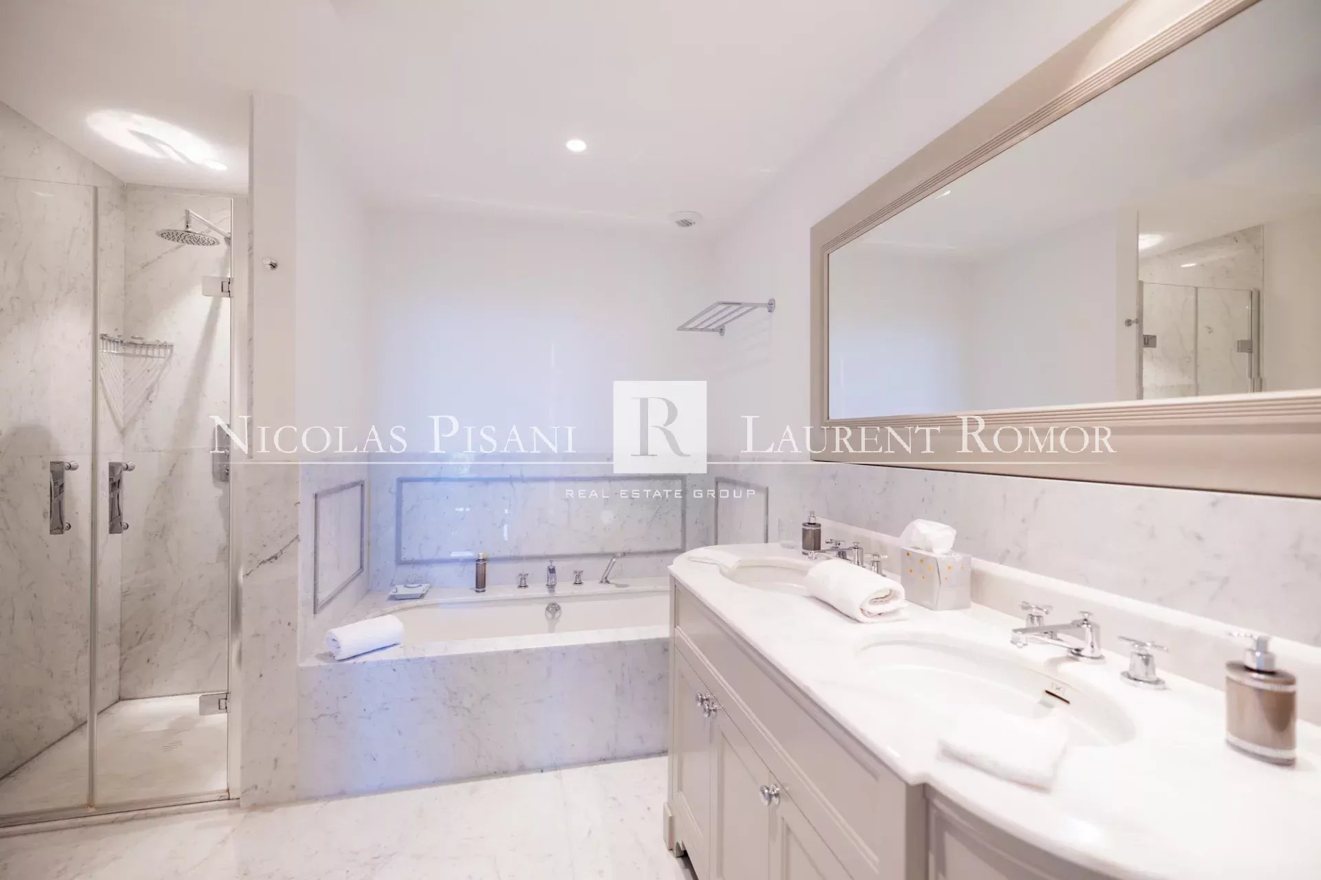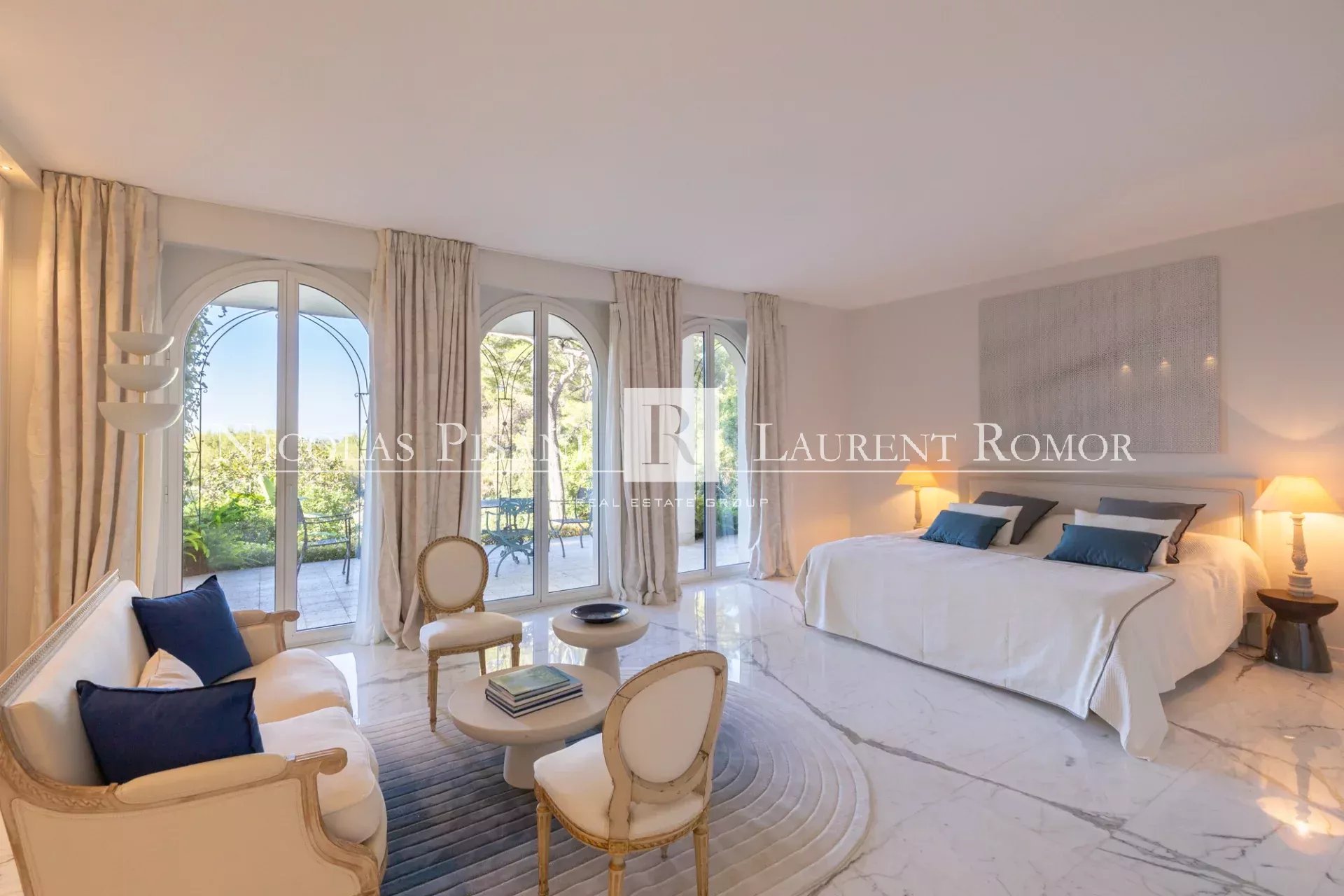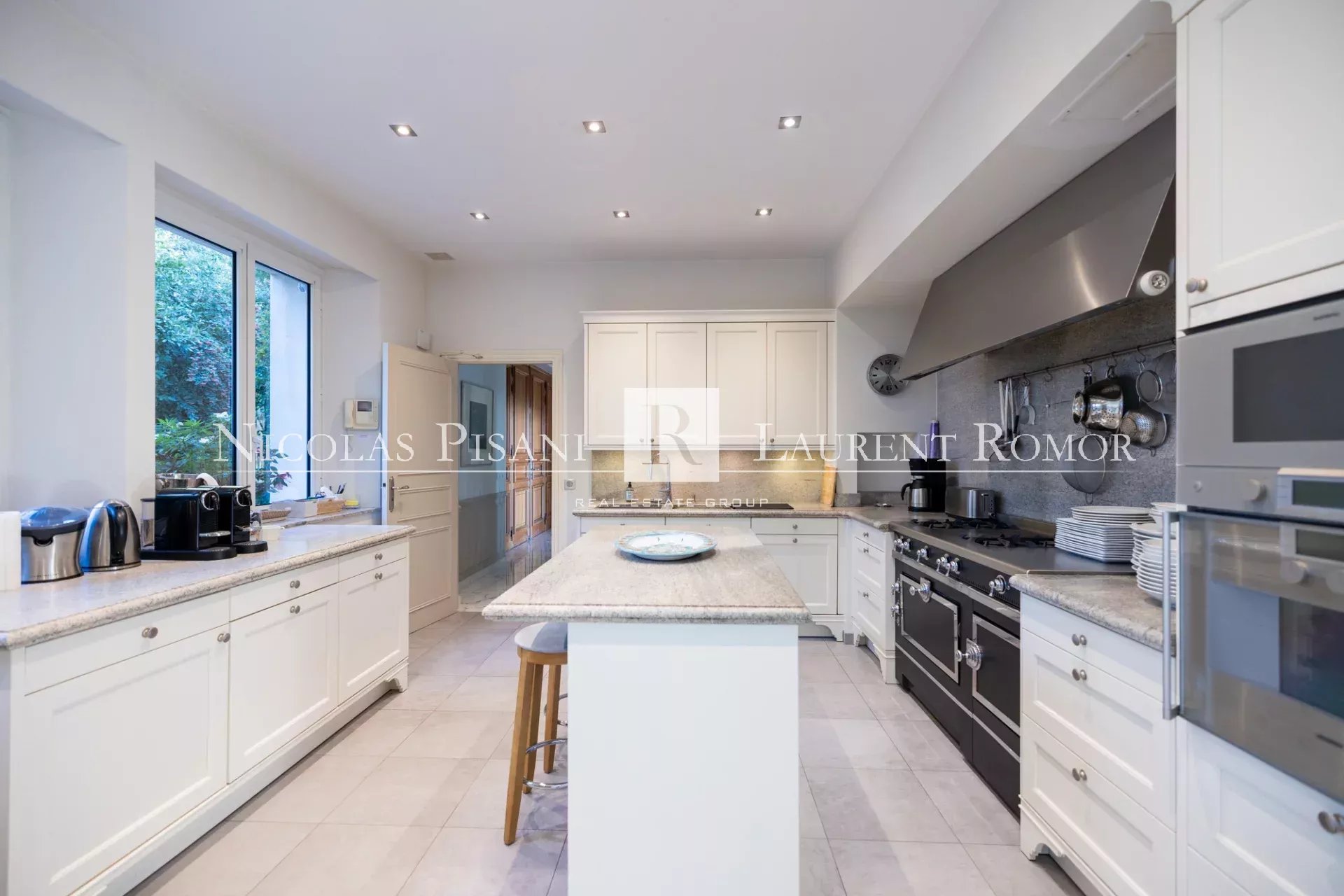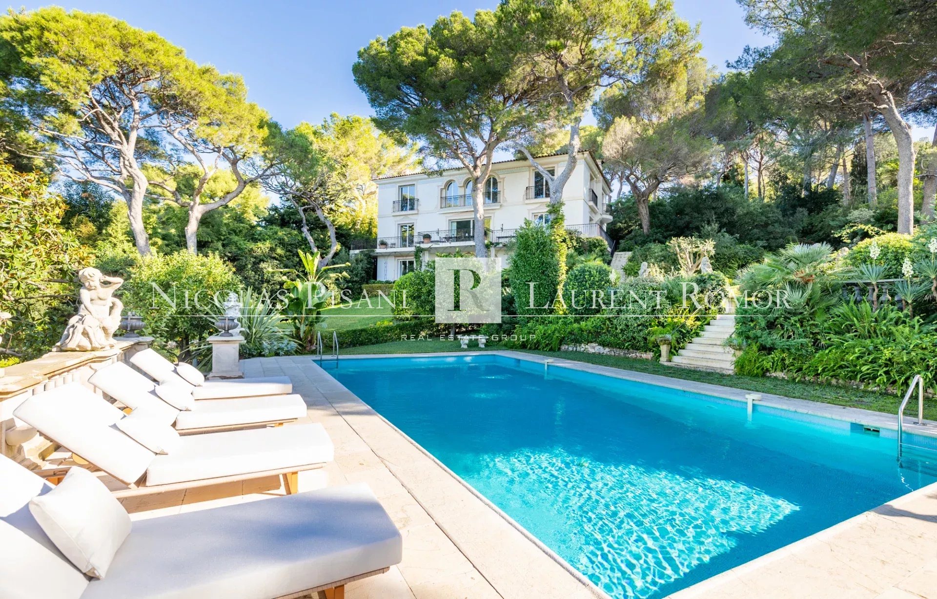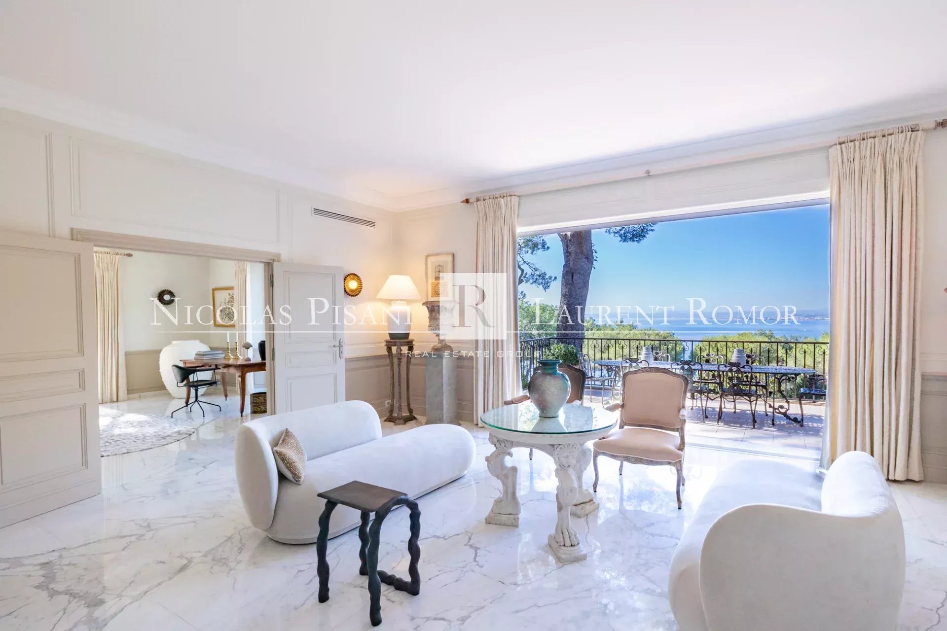 La proprietà dispone di una villa principale, di stile borghese romantico, costruita su tre livelli, con un ampio ingresso, un doppio soggiorno con camino, una sala da pranzo che si affaccia su una grande terrazza e una vista panoramica sul mare verso la Baia degli Angeli, una cucina indipendente attrezzata e in totale sei camere da letto, ognuna con cabina armadio, bagno o doccia.
