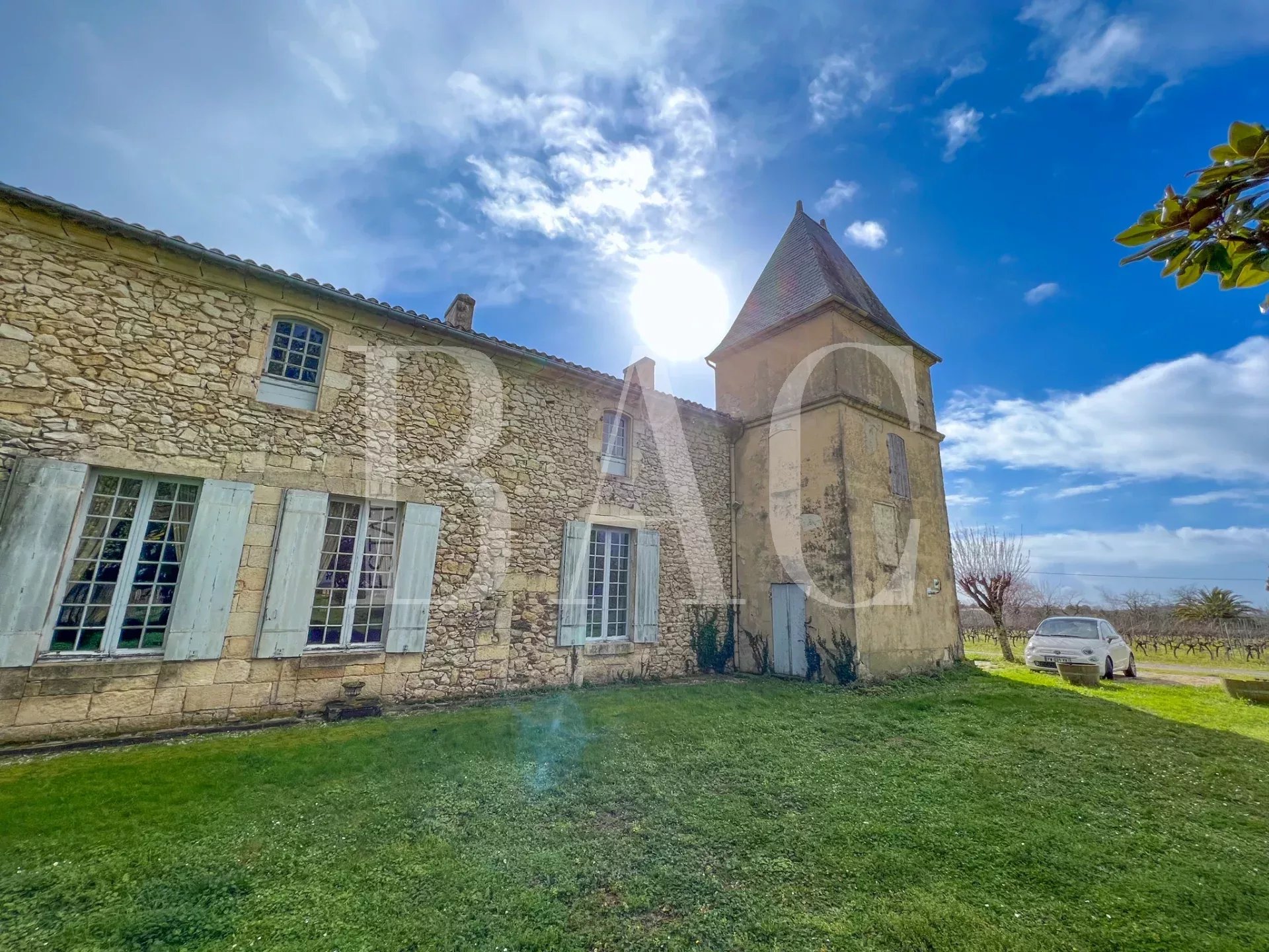 Nel cuore dei vigneti di Bordeaux, arroccato sulle sue colline, questo magnifico castello vinicolo del 1773 si inserisce perfettamente nel patrimonio storico della regione di Bordeaux.