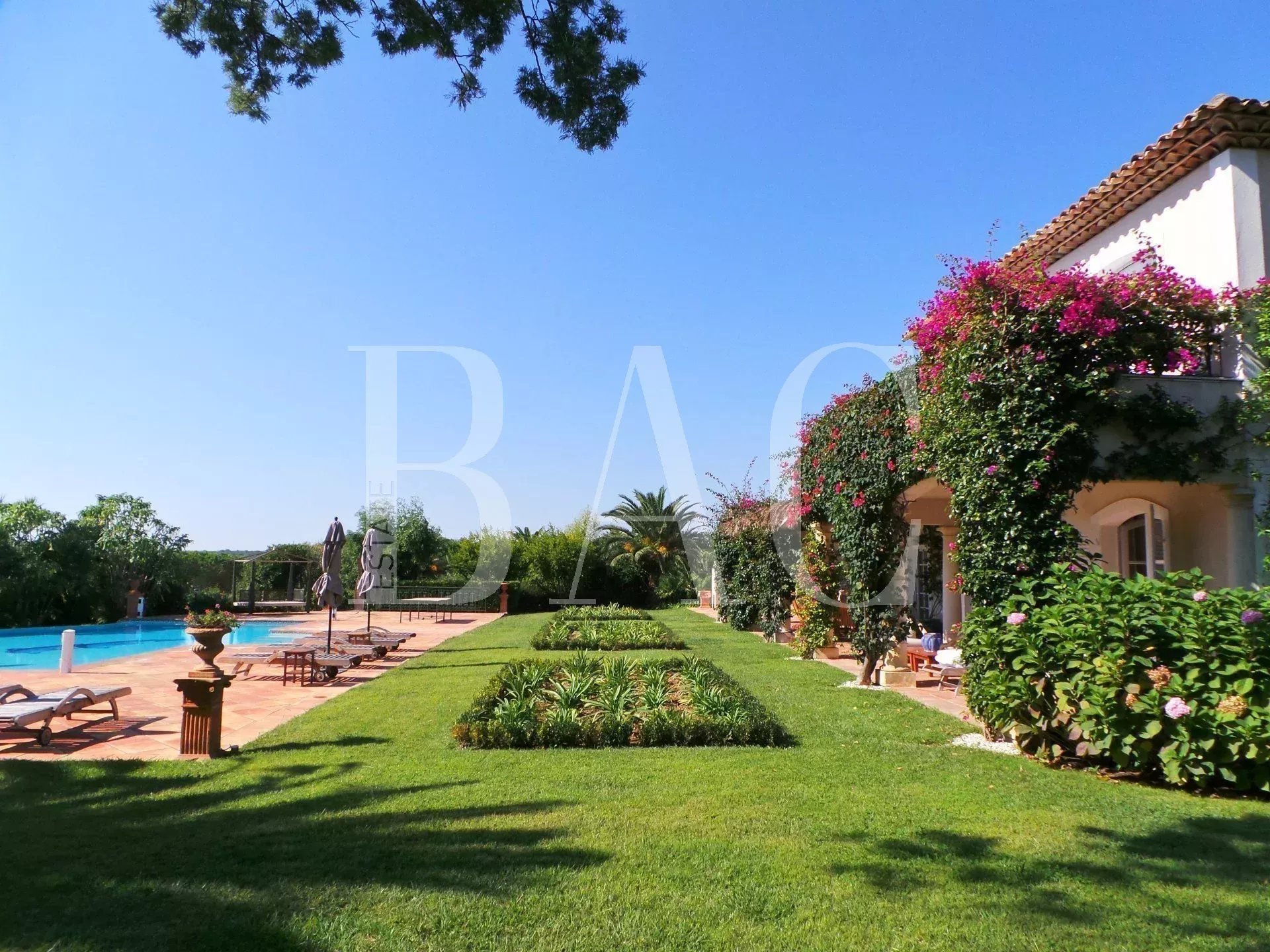 St Tropez, das Feld von Les Parcs, eine seltene Villa ca. 1000m ² Wohnfläche auf einem wunderschönen Park von 7000 m². Kein Meerblick, aber eine sehr schöne Belichtung und keine Aussicht von den Nachbarn.