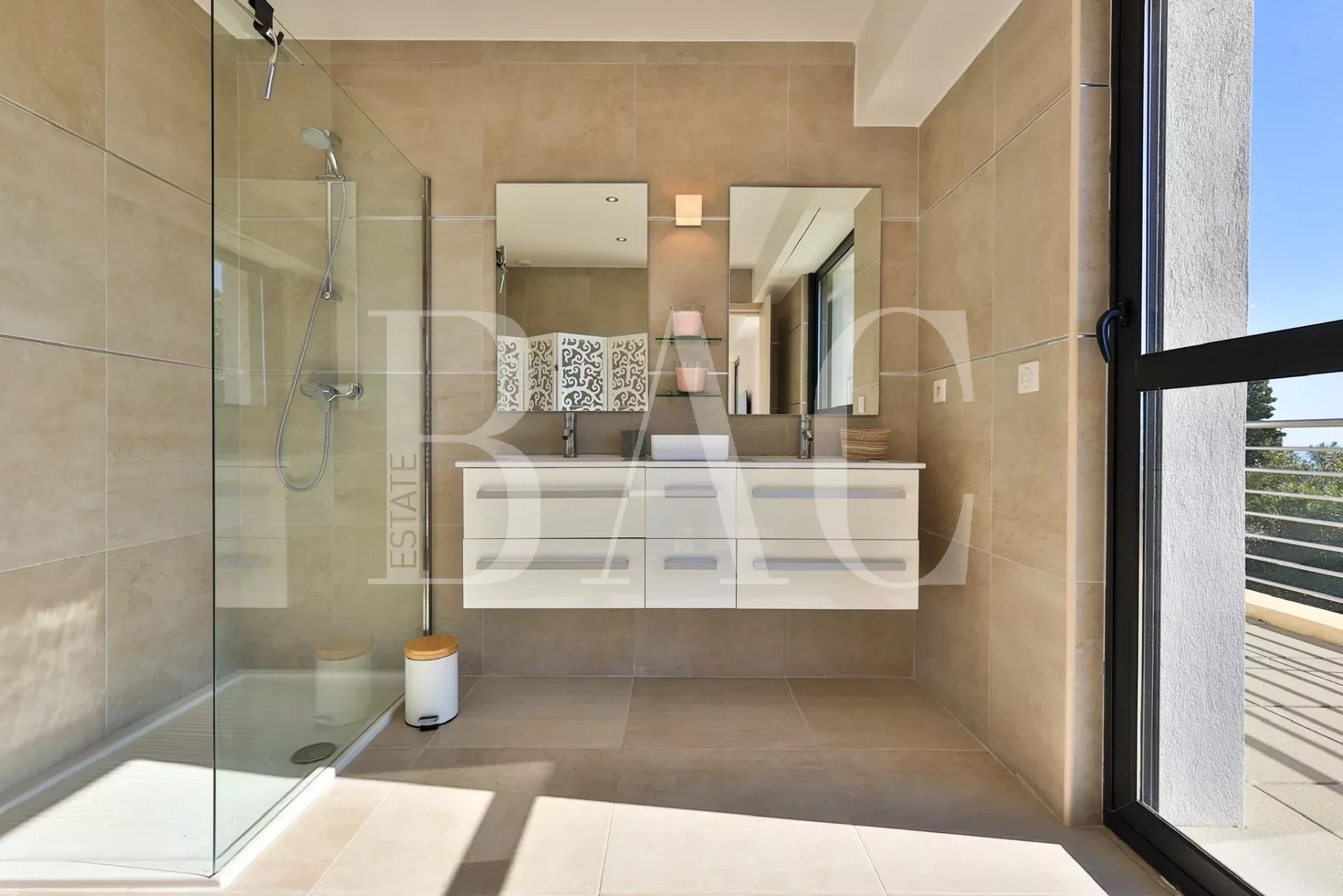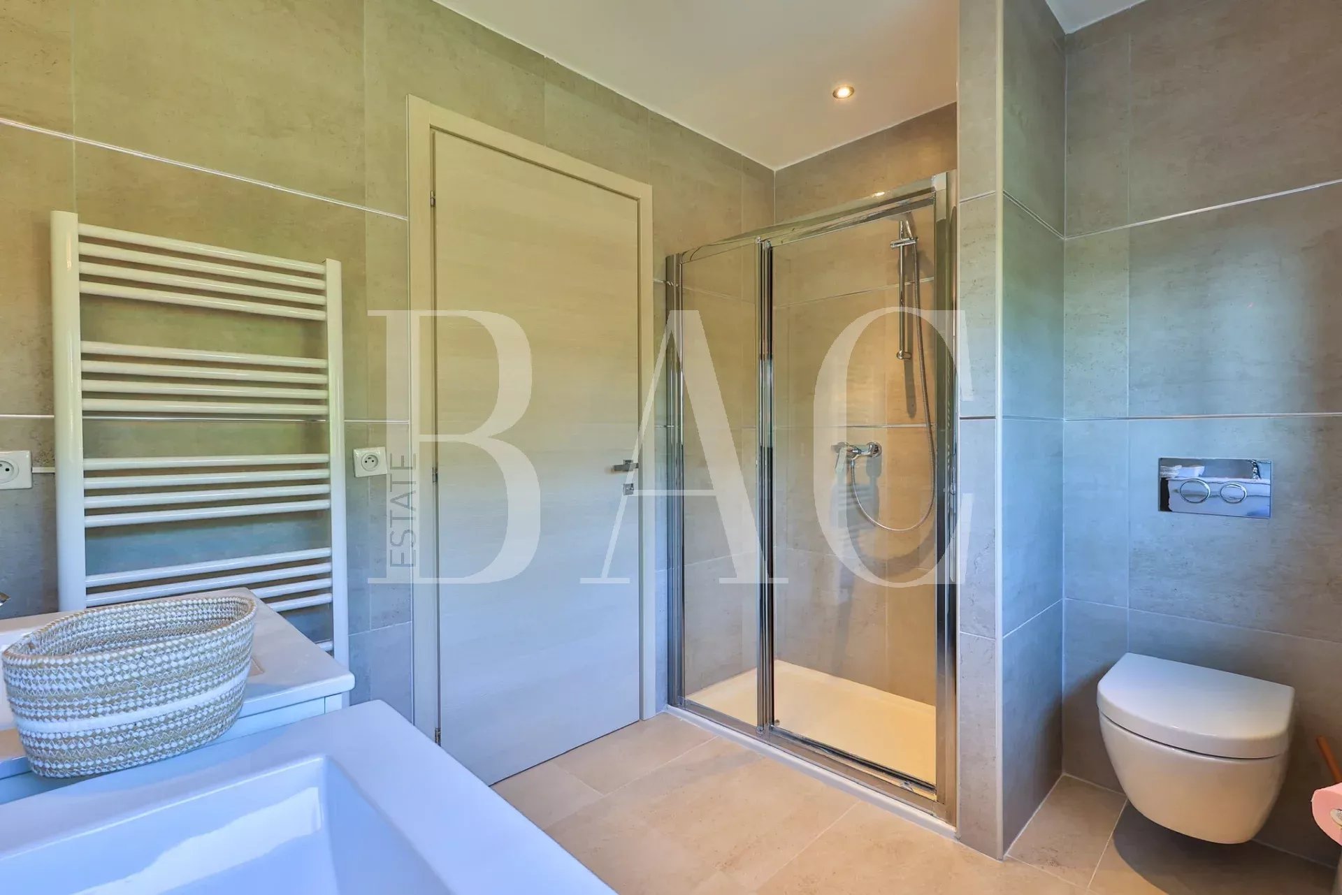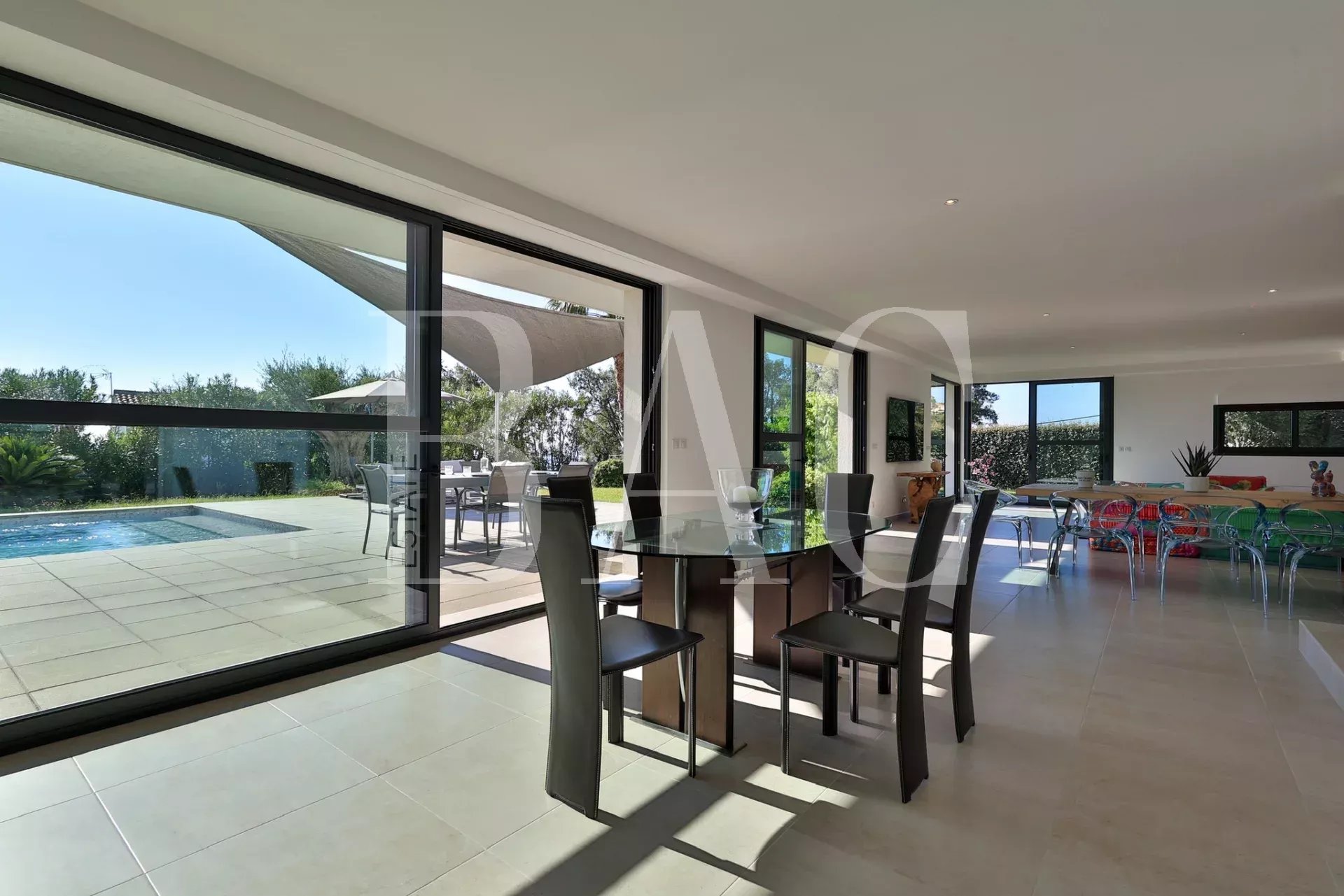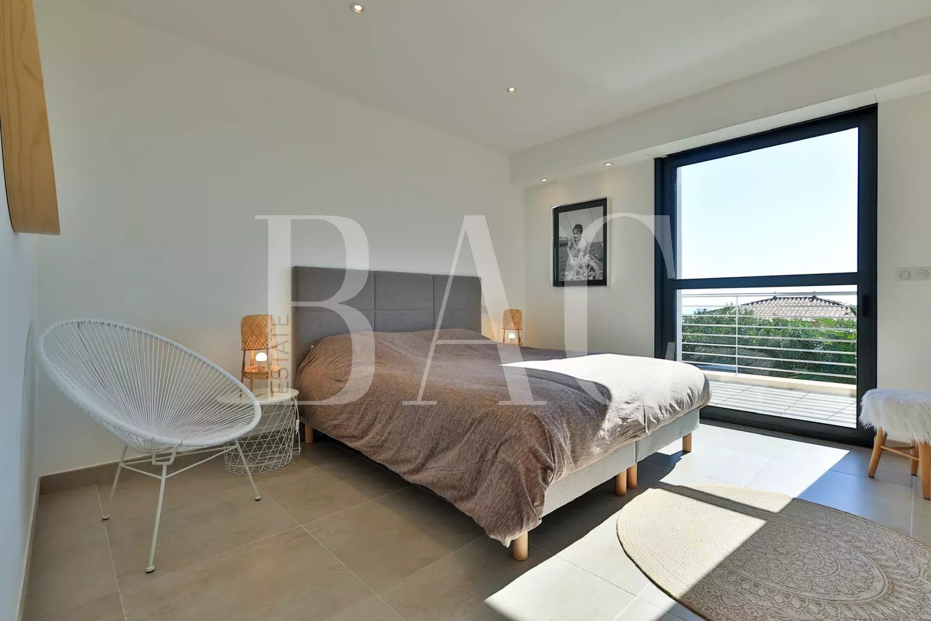Située au calme total à seulement 1.5km de la mer, cette magnifique villa contemporaine de 320m2 achevée en 2019 dispose d'une belle vue mer depuis l'étage. Edifiée sur un terrain arboré de 1.600m2 avec piscine, elle se compose d'une entrée, d'un living d'environ 80m2 avec cuisine américaine entièrement équipée et de 5 chambres en suites. 3 garages ainsi que plusieurs places de parking viennent compléter ce bien idéalement situé.