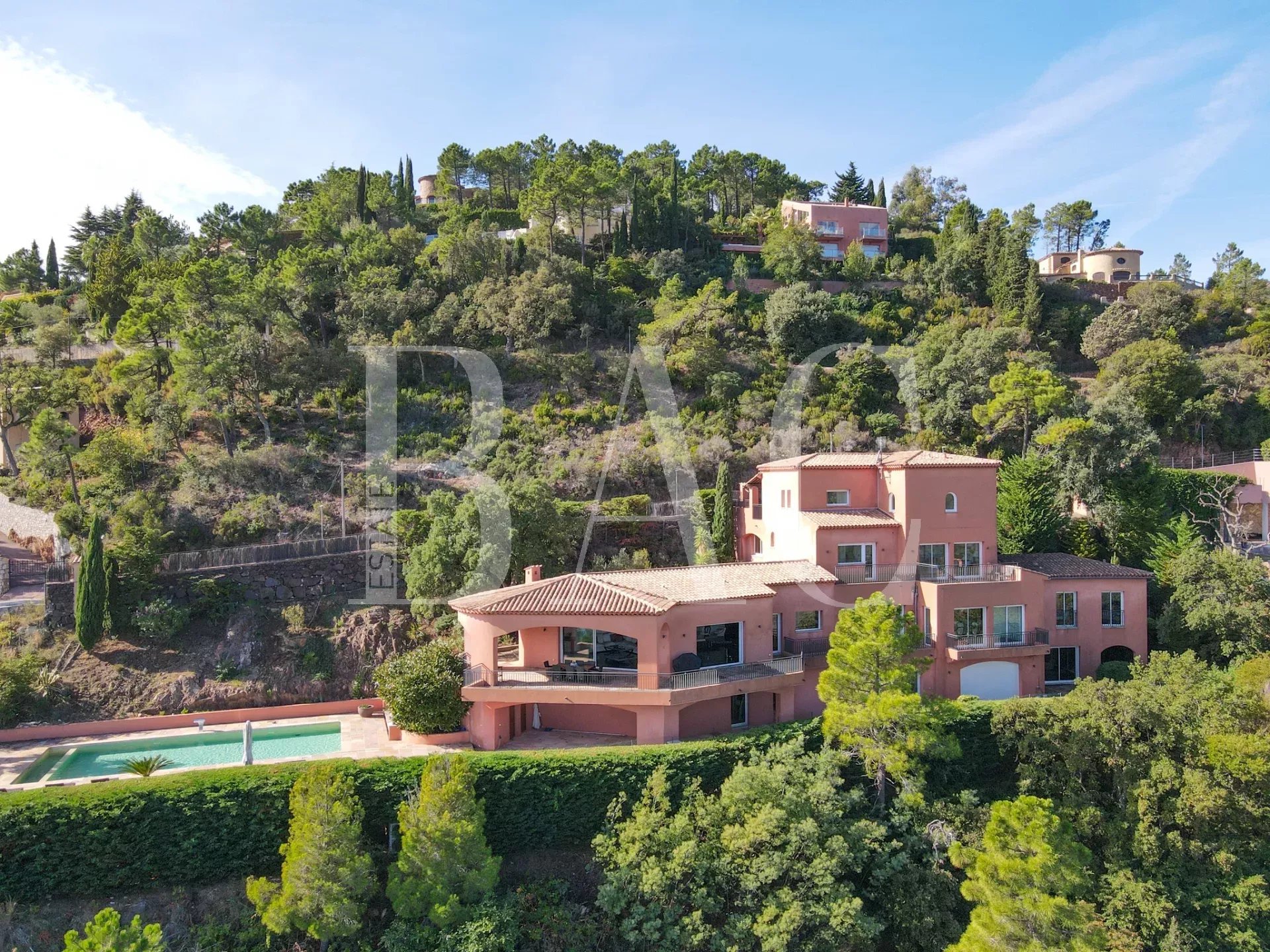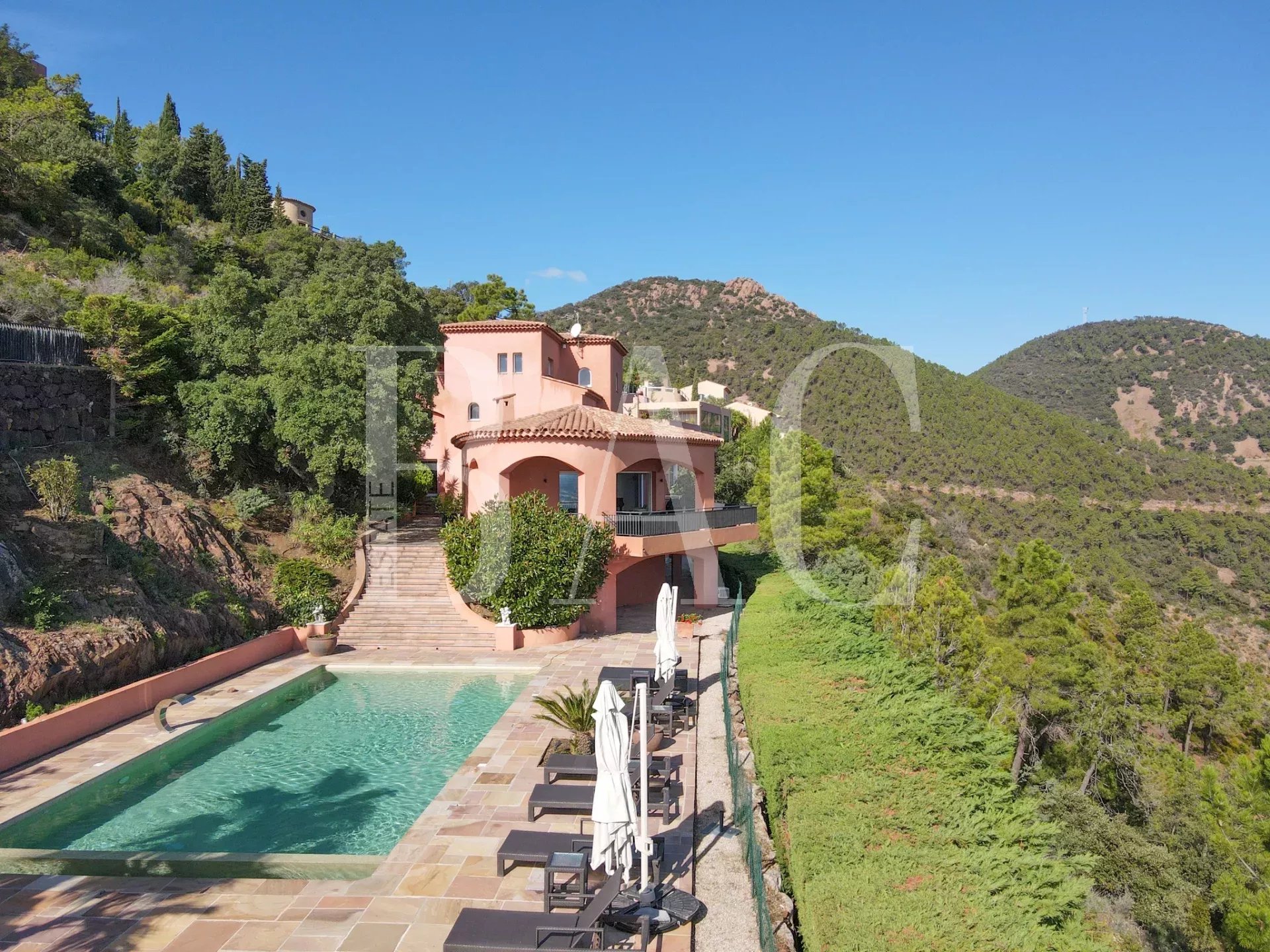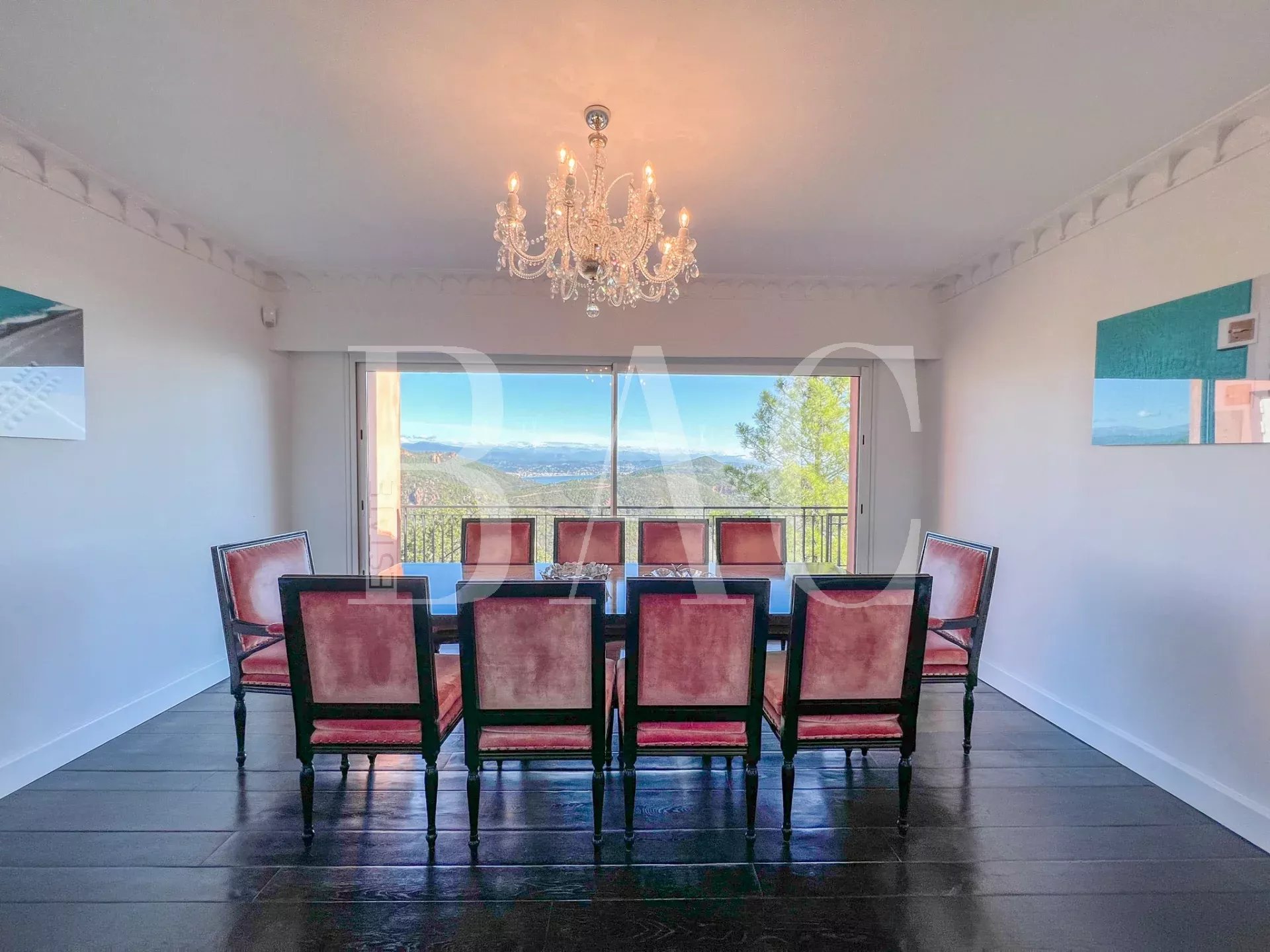 Située sur le secteur paradisiaque de Théoule-sur-Mer non loin de Cannes, dans un domaine privé et fermé proche des commodités, cette magnifique villa d'environ 700m2 profite d'un emplacement exceptionnel et dispose d'une somptueuse vue mer panoramique sur les Iles de Cannes.