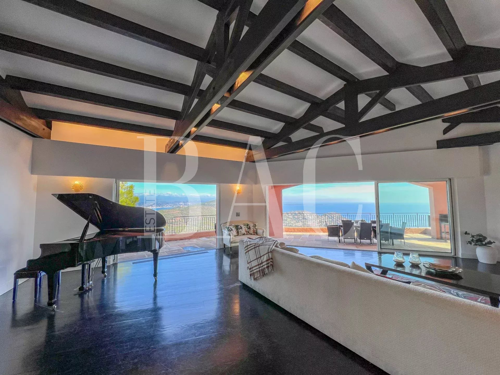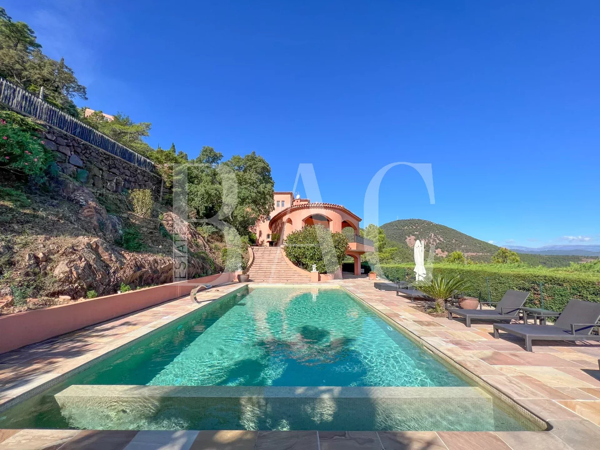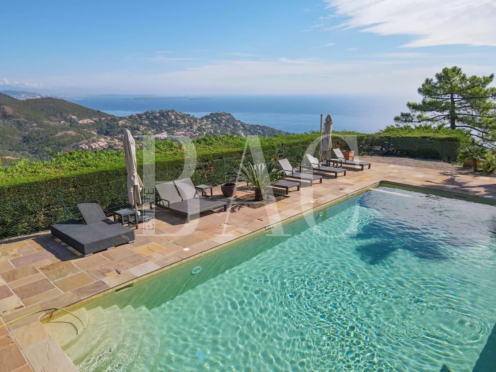 Située sur le secteur paradisiaque de Théoule-sur-Mer non loin de Cannes, dans un domaine privé et fermé proche des commodités, cette magnifique villa d'environ 700m2 profite d'un emplacement exceptionnel et dispose d'une somptueuse vue mer panoramique sur les Iles de Cannes.