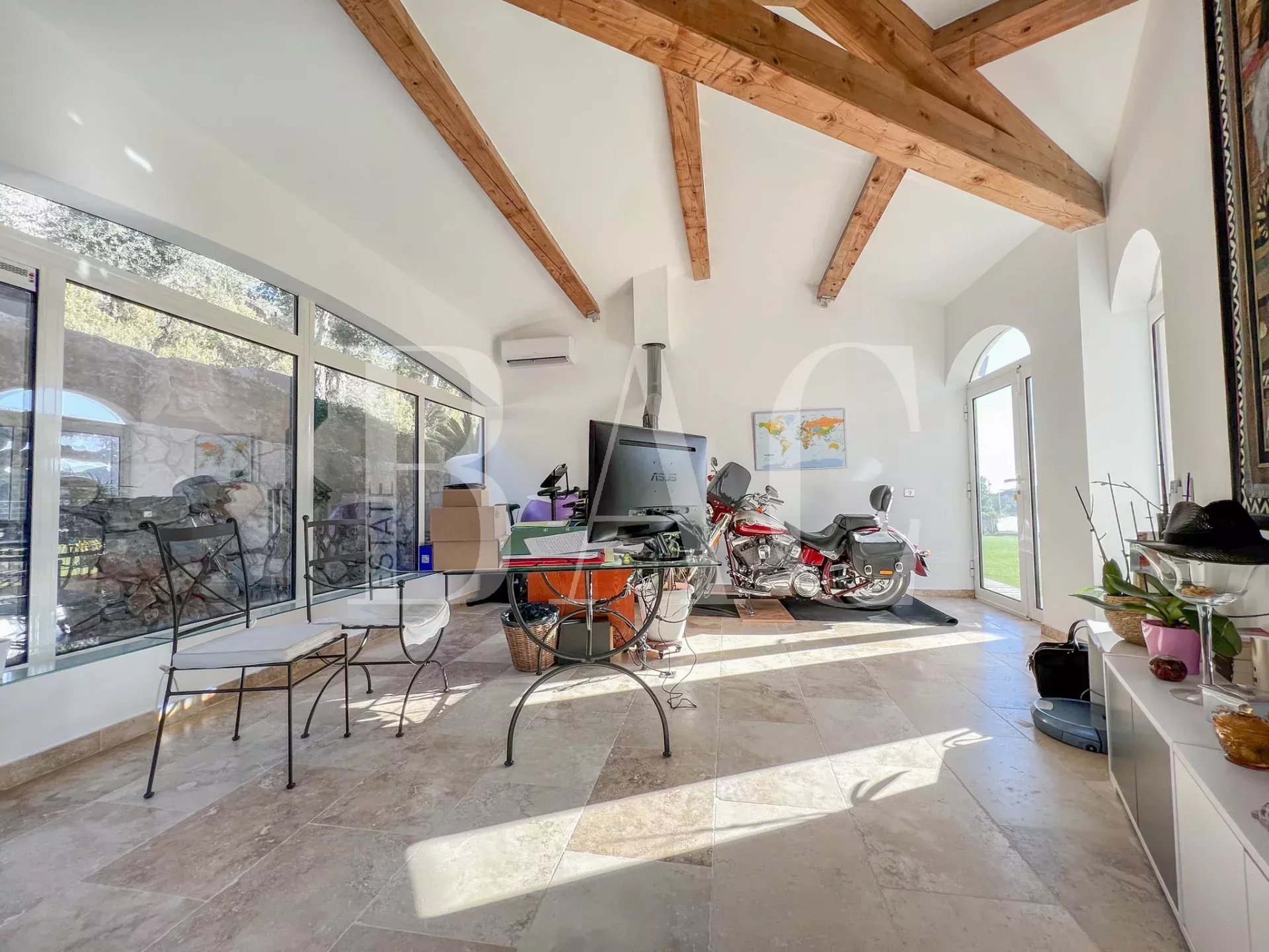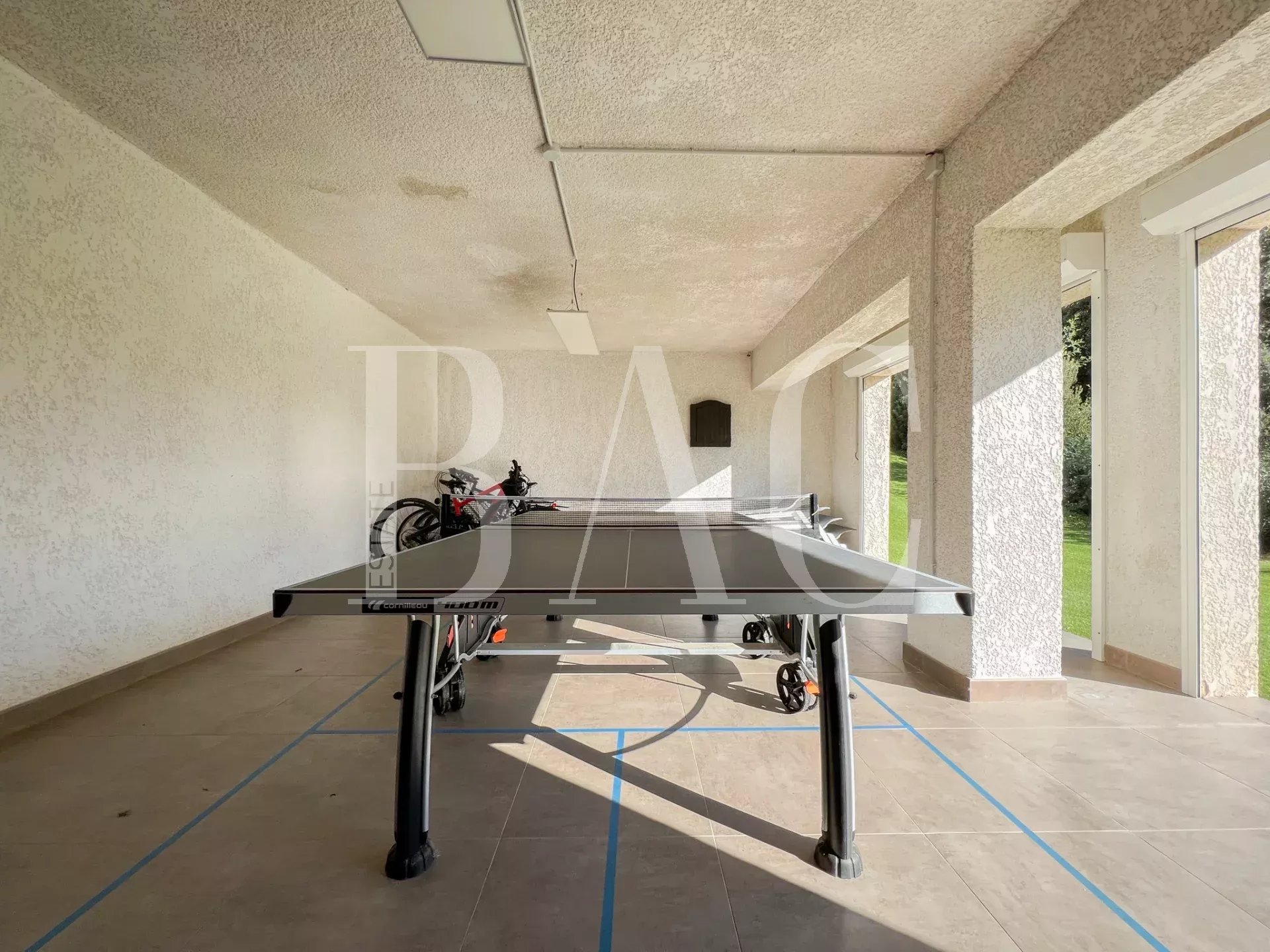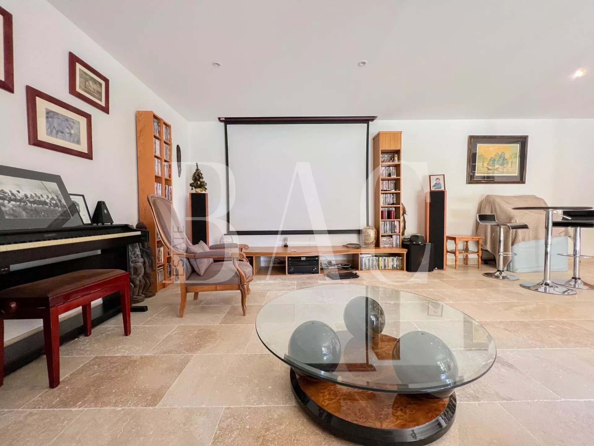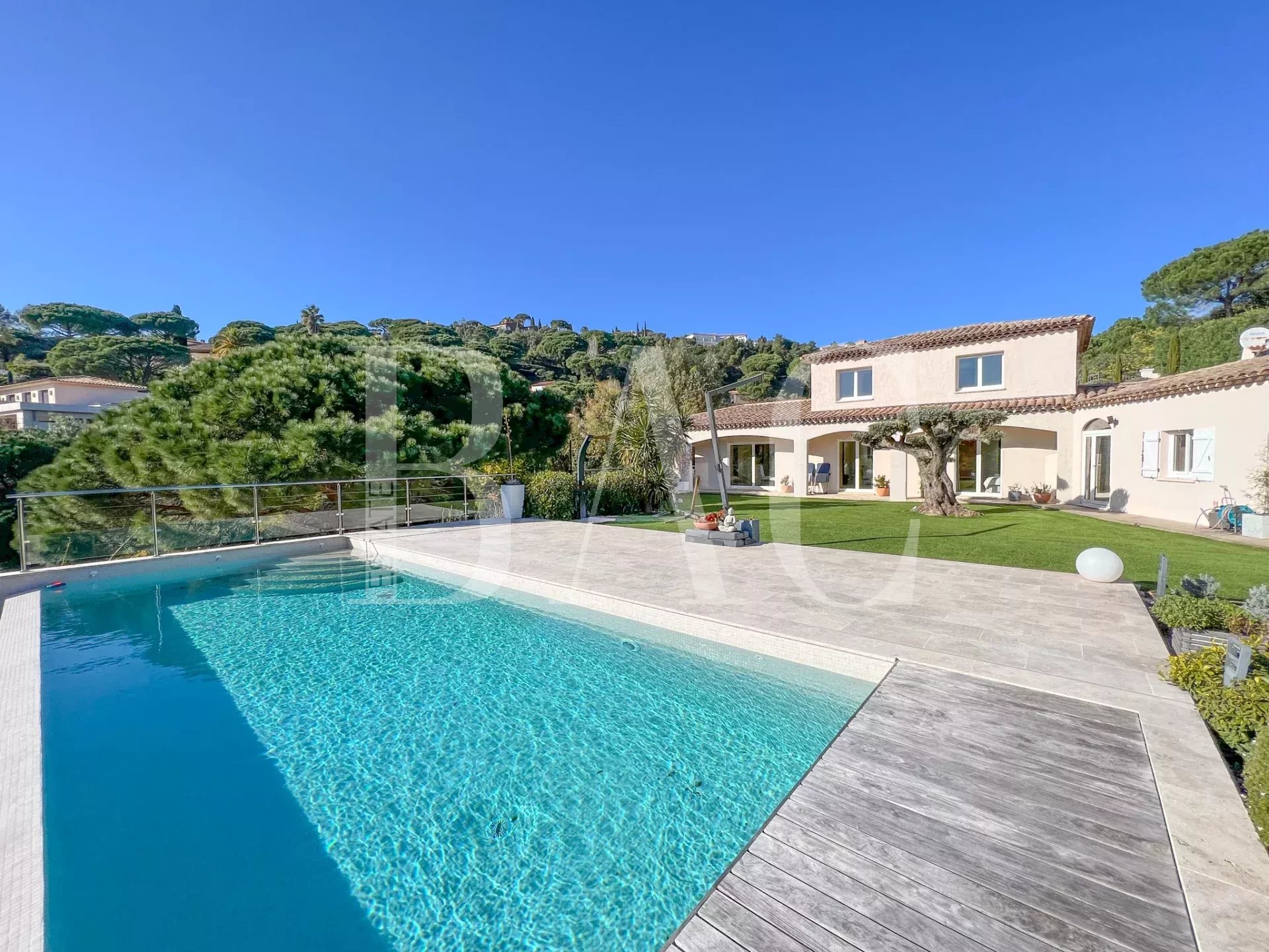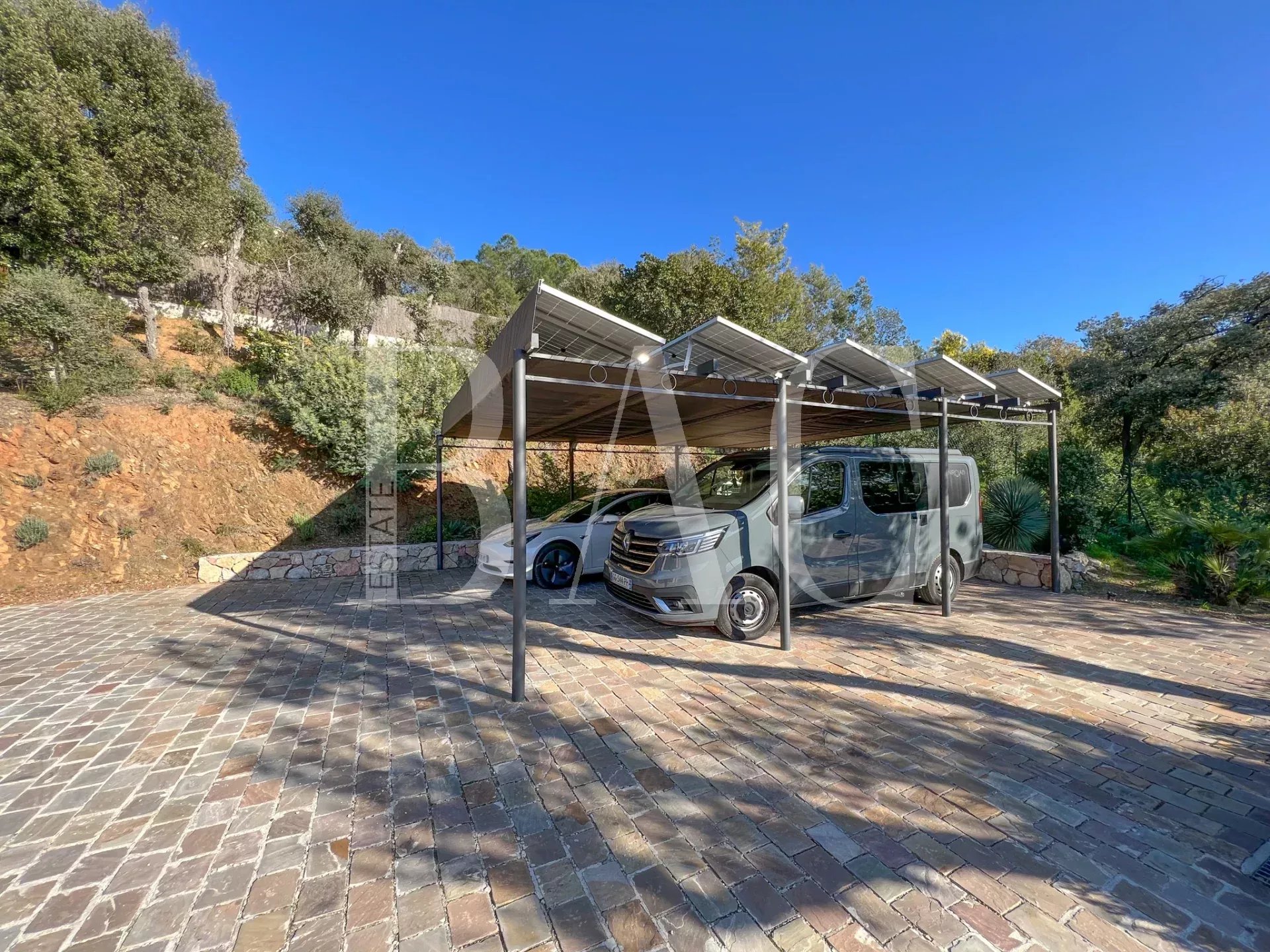 Située à seulement 1.5km des plages, dans le domaine recherché de la Nartelle, cette magnifique villa de 280m2 est édifiée sur un beau terrain arboré et paysager de 2.800m2 avec piscine à débordement chauffée de 10 x 4m. Elle se compose au rez-de-chaussée d'une entrée, d'un séjour/salle à manger, d'une cuisine entièrement équipée avec cellier, d'une suite parentale avec salle de douche, grand bureau. A l'étage, deux chambres et une salle de bain avec baignoire balnéo. La propriété dispose également d'un appartement T2 avec entrée indépendante. Une salle de cinéma, une salle de jeu ainsi qu'un careport avec panneaux solaires pouvant accueillir 2 véhicules viennent compléter ce bien.