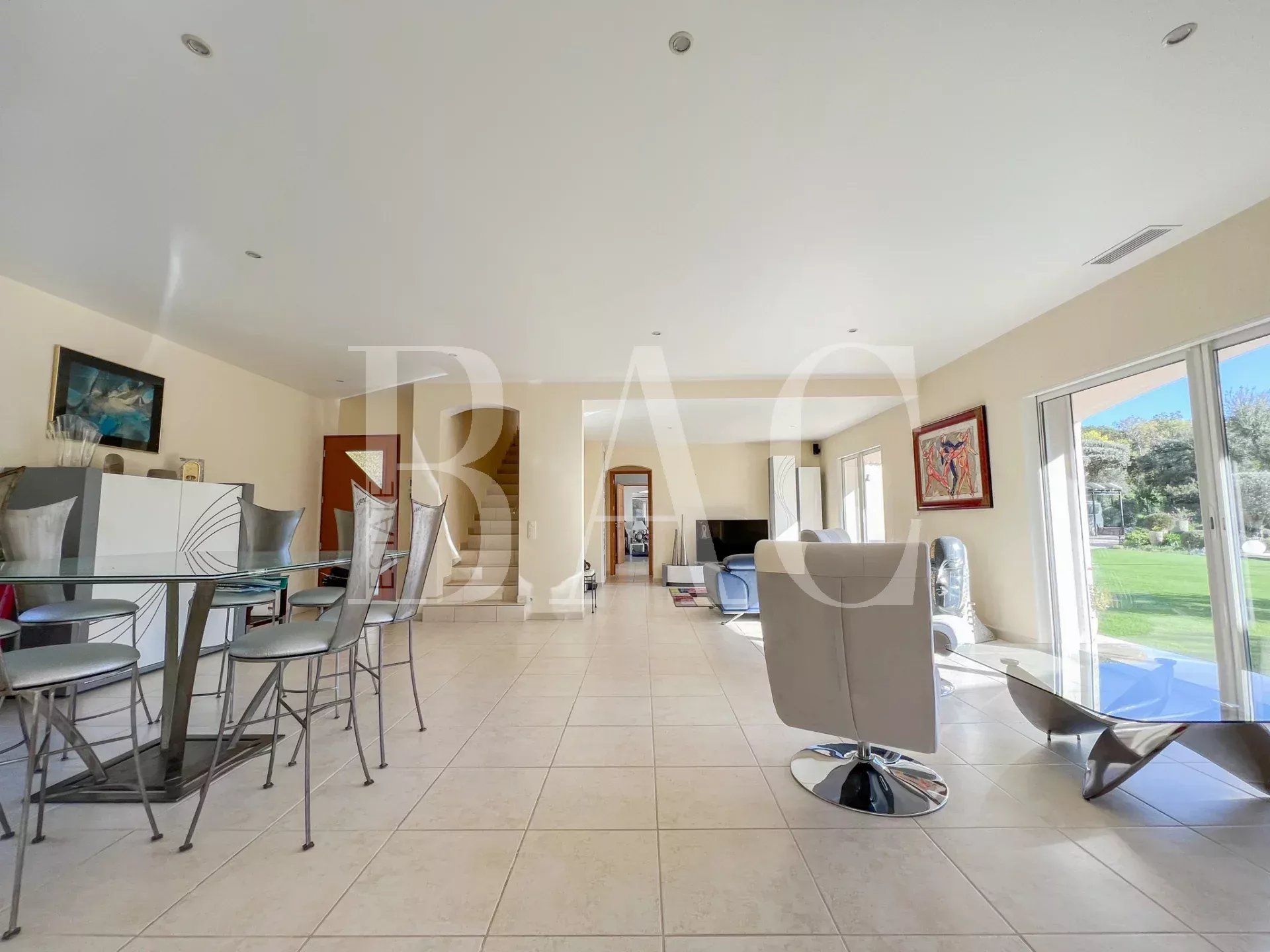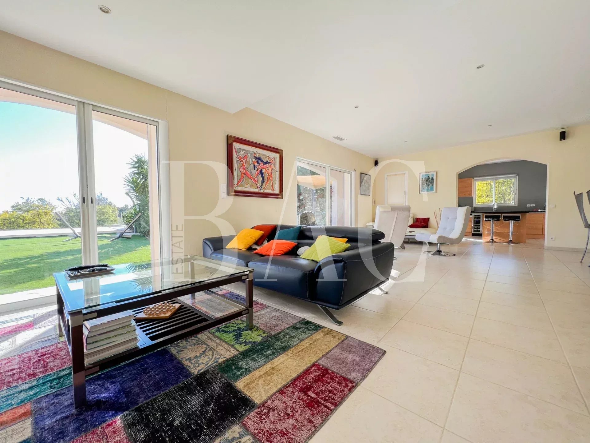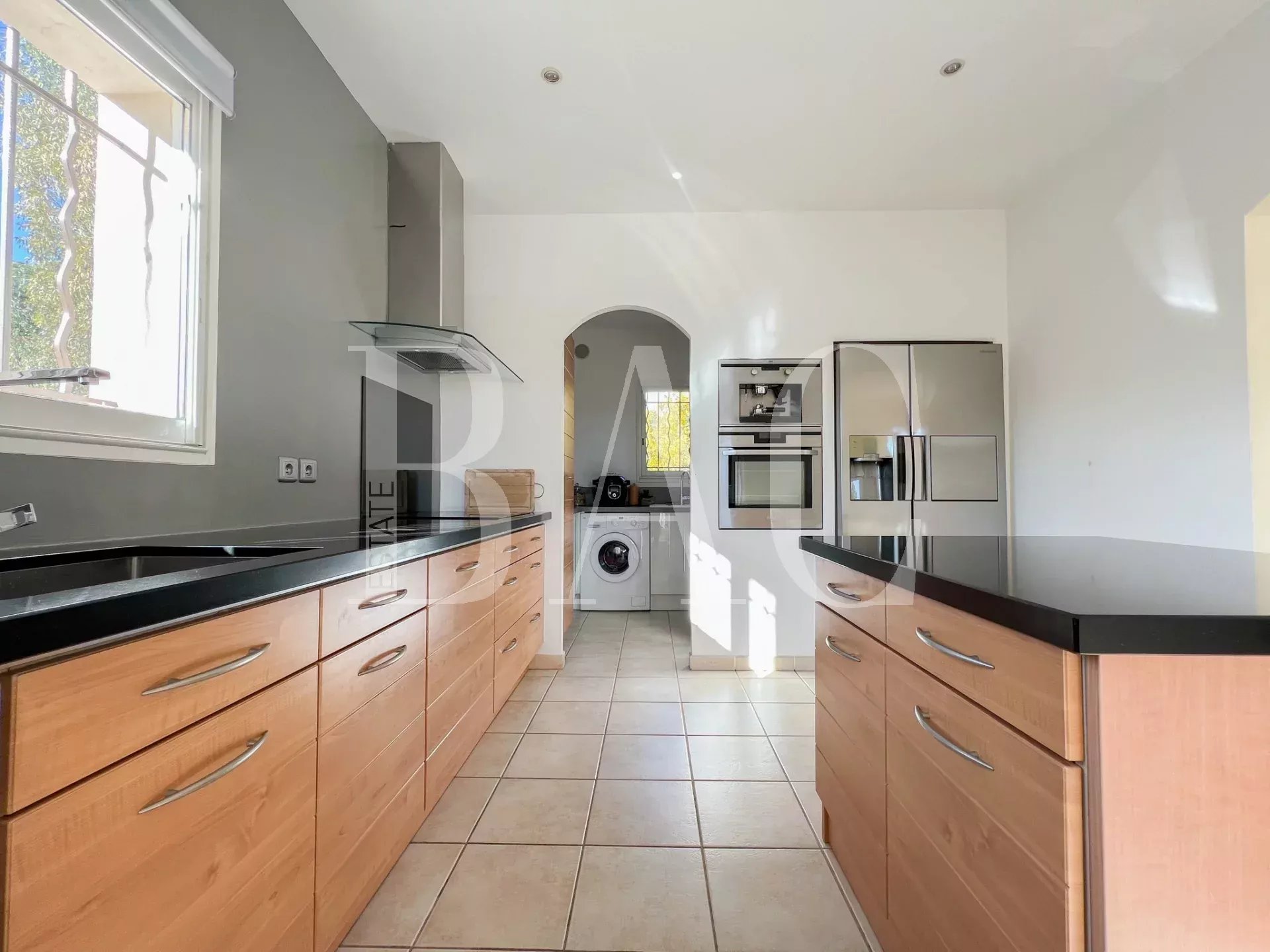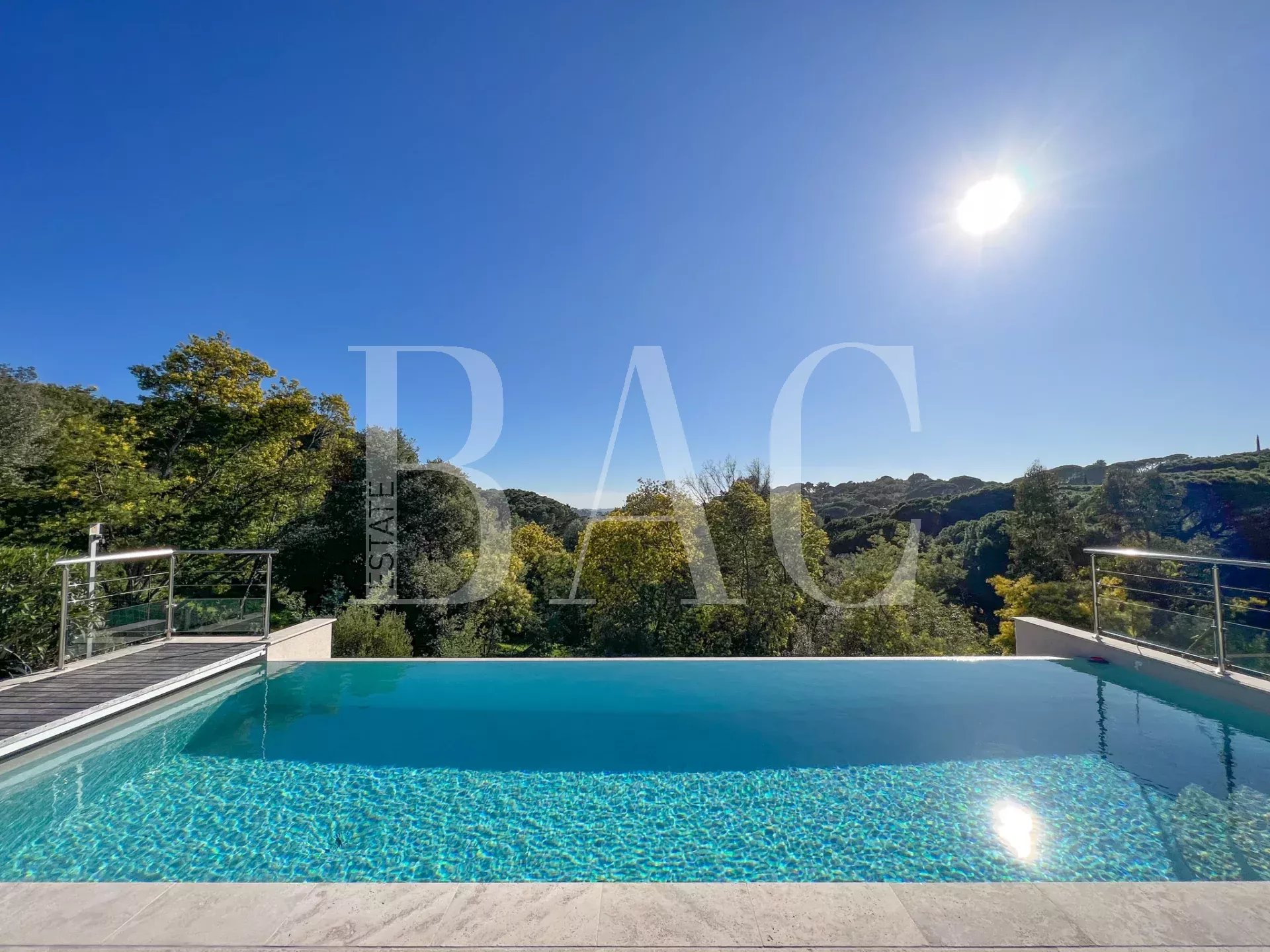 Située à seulement 1.5km des plages, dans le domaine recherché de la Nartelle, cette magnifique villa de 280m2 est édifiée sur un beau terrain arboré et paysager de 2.800m2 avec piscine à débordement chauffée de 10 x 4m. Elle se compose au rez-de-chaussée d'une entrée, d'un séjour/salle à manger, d'une cuisine entièrement équipée avec cellier, d'une suite parentale avec salle de douche, grand bureau. A l'étage, deux chambres et une salle de bain avec baignoire balnéo. La propriété dispose également d'un appartement T2 avec entrée indépendante. Une salle de cinéma, une salle de jeu ainsi qu'un careport avec panneaux solaires pouvant accueillir 2 véhicules viennent compléter ce bien.