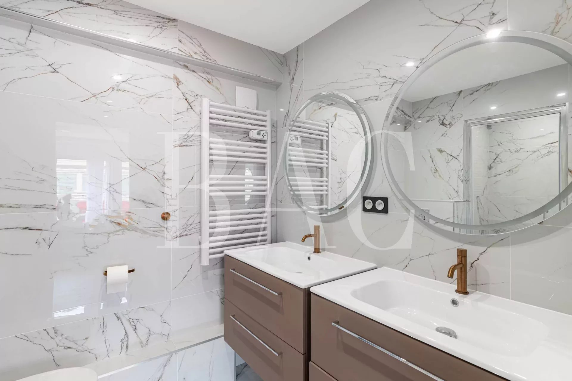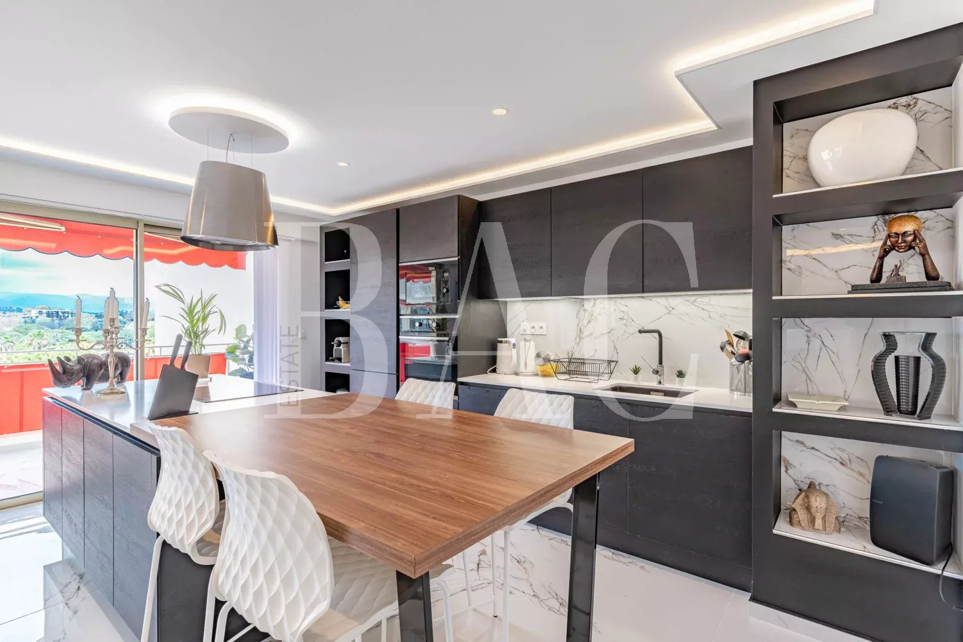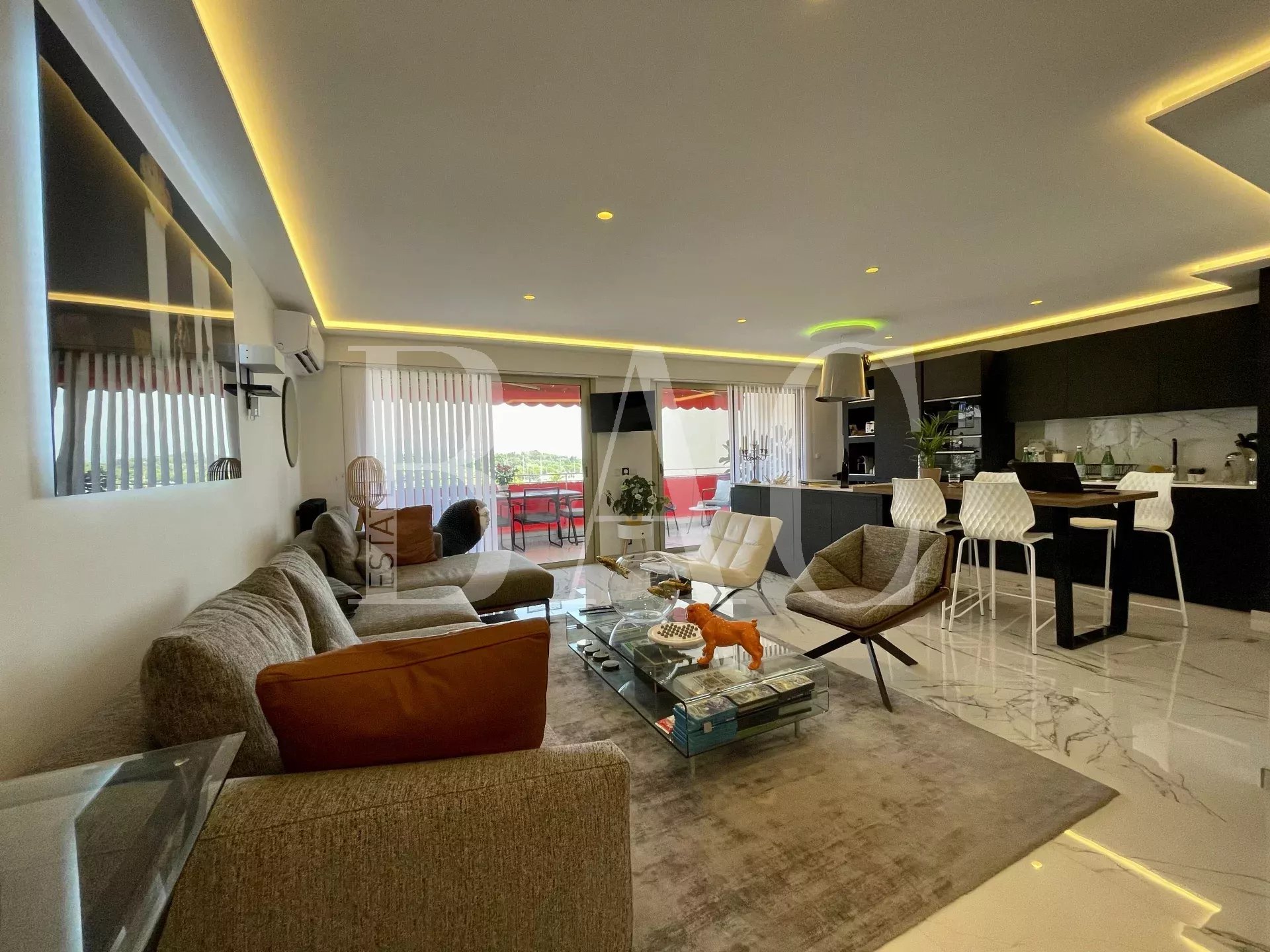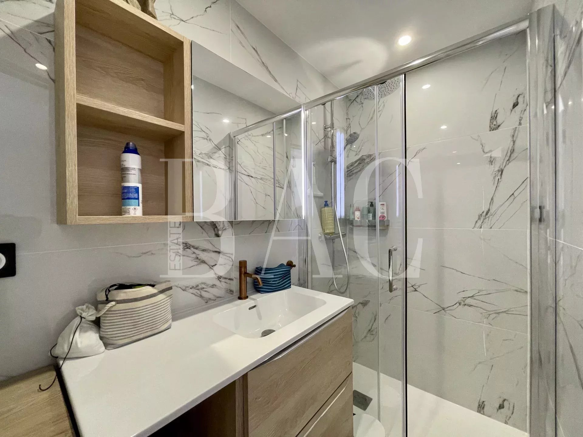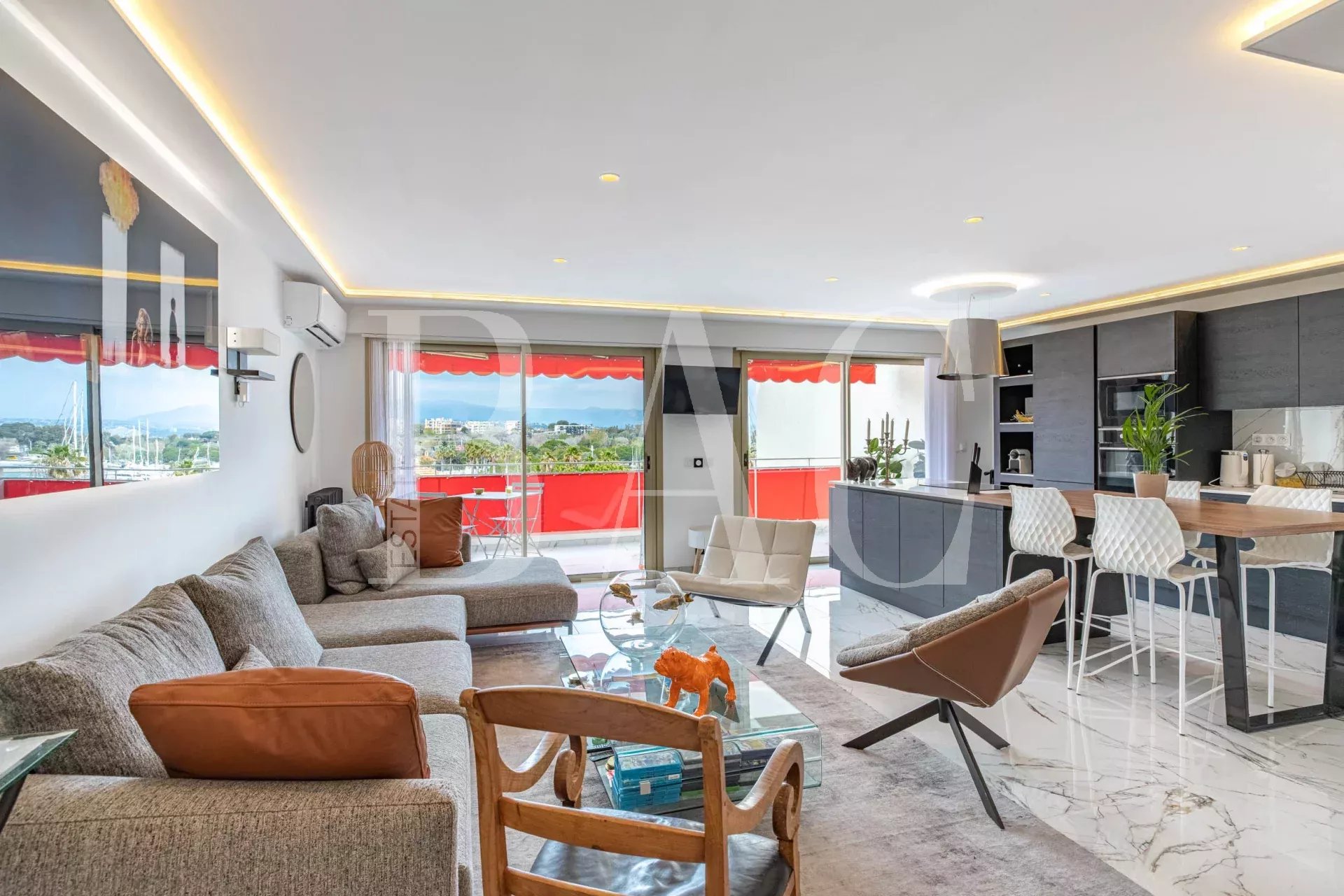 Antibes, tra Port Vauban e il centro storico. Appartamento in perfette condizioni. Superficie abitabile 105 m2. Si compone come segue: ampio ingresso, soggiorno di 36 mq con cucina integrata, che si apre sulla terrazza di 13 mq con splendida vista sul porto e sul Fort Carré, lavanderia, tre camere da letto che si aprono su un balcone con piccola vista mare, tre bagni con doccia e due servizi igienici. Nella dependance un ampio garage e un posto auto privato al piano interrato.