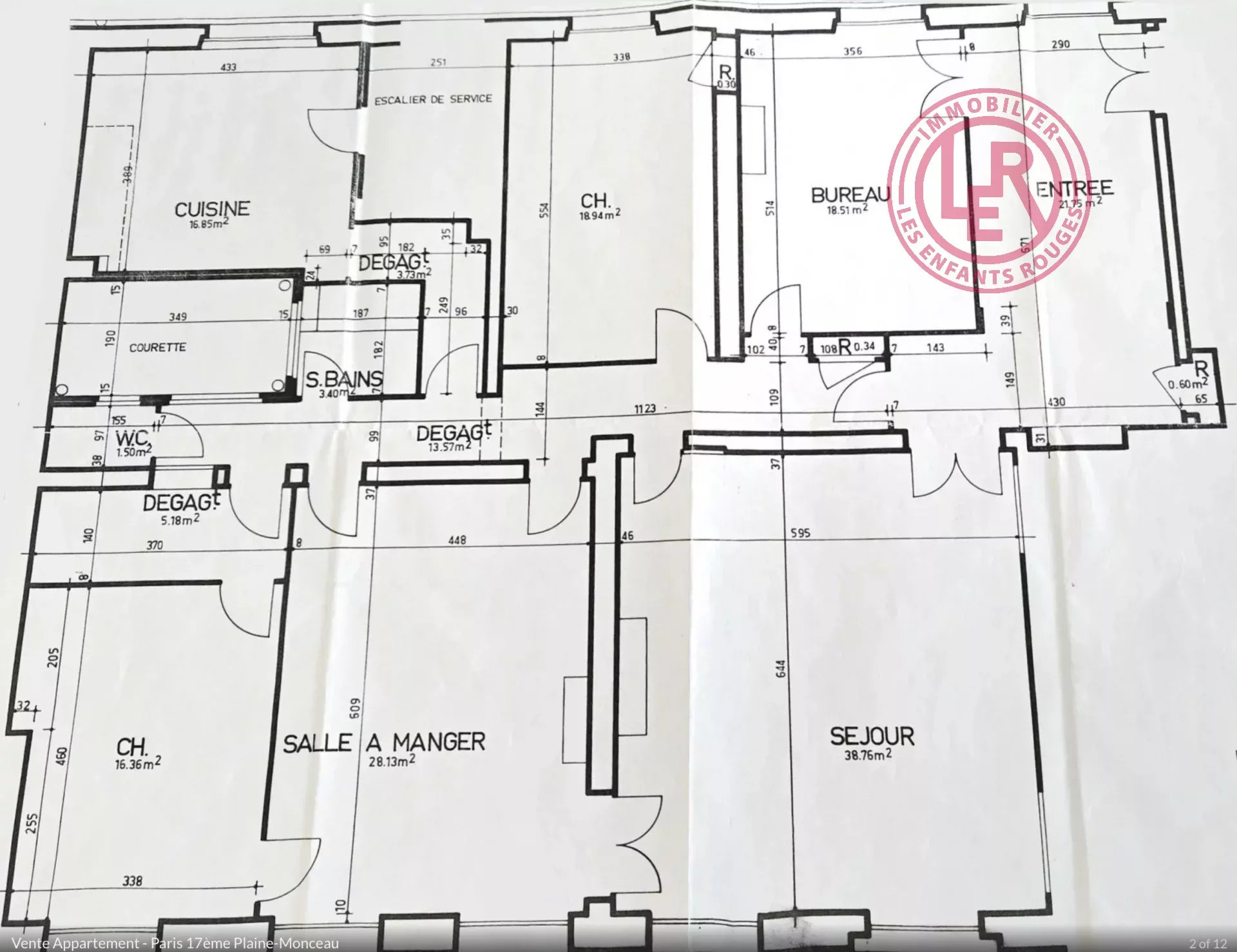 PRONY / WAGRAM ! Dans un magnifique immeuble Pierre de Taille fraîchement ravalé aux parties communes de haut standing, nous vous proposons un très beau 5/6 pièces de 184,19m² Carrez, disposant d'une très belle clarté au premier étage avec ascenseur. Configuré actuellement en 3 chambres, il est possible de le configurer en 4 chambres soit en la disposant la 4ème dans la salle à manger pour conserver 38 m2 de séjour ou alors par la cuisine pour conserver un double séjour de 65 m2. Cet appartement traversant se compose d'un excellent plan en étoile comprenant d'un côté (sur rue) un séjour, une salle à manger, une chambre, une salle de bain et de l'autre côté (sur cour) 2 chambres, une cuisine et une salle d'eau. Grande double cave idéale pour la conservation du "bon" vin. Les prestations : 3 mètres de hauteur sous plafond, clarté, parquet en chevrons sous la moquette, moulures et cheminées en marbres. Quelques travaux sont à prévoir avec notamment une mise aux normes électriques, les pièces d'eau à remettre au goût du jour et la moquette à enlever pour mettre en valeur le parquet. Possibilité d'acquérir en sus un débarras de 6 m2 (avec puit de lumière) et une chambre de service de 6 m2 (avec point d'eau et électricité).