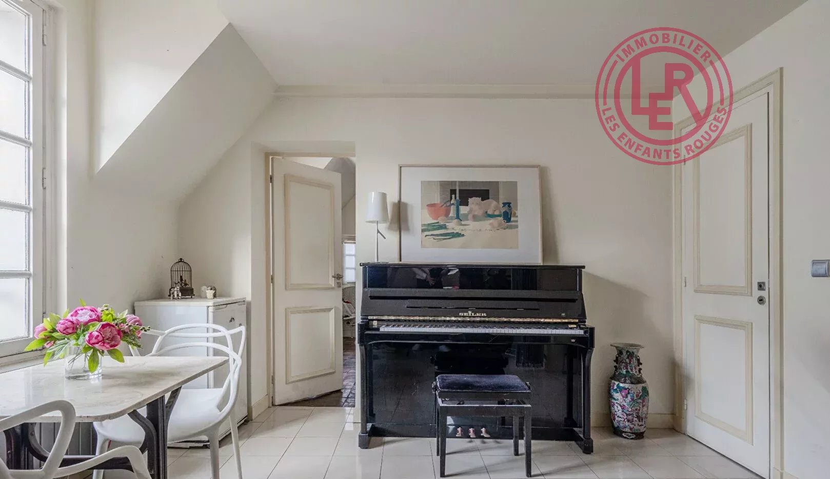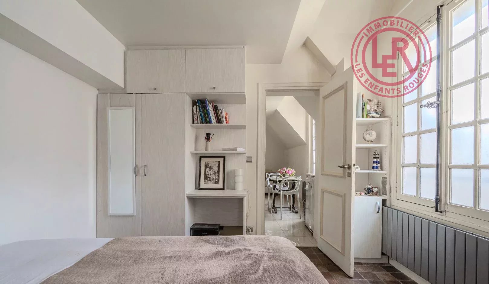 RARE- Situé au dernier étage d’un Hôtel particulier proche de la place Saint-André des Arts, secteur Odéon, dont les façades et toitures sont inscrites à l'inventaire des Monuments Historiques, et dont la tourelle d’angle est classée , ce charmant appartement traversant de 2/3 pièces offre une surface de 45,80 m² (loi Carrez). Il se compose d’une entrée, d’un séjour, d’une cuisine, d’une chambre, d’un bureau (pouvant faire office de seconde petite chambre), d’une salle de bains et de WC séparés. De nombreux rangements sont disponibles, et une cave vient compléter ce bien. « Les informations sur les risques auxquels ce bien est exposé sont disponibles sur le site Géorisques : www.georisques.gouv.fr » Agent commercial immatriculé au Registre spécial des agents commerciaux du greffe du tribunal de commerce de PARIS, sous le numéro RSAC 907 899 629