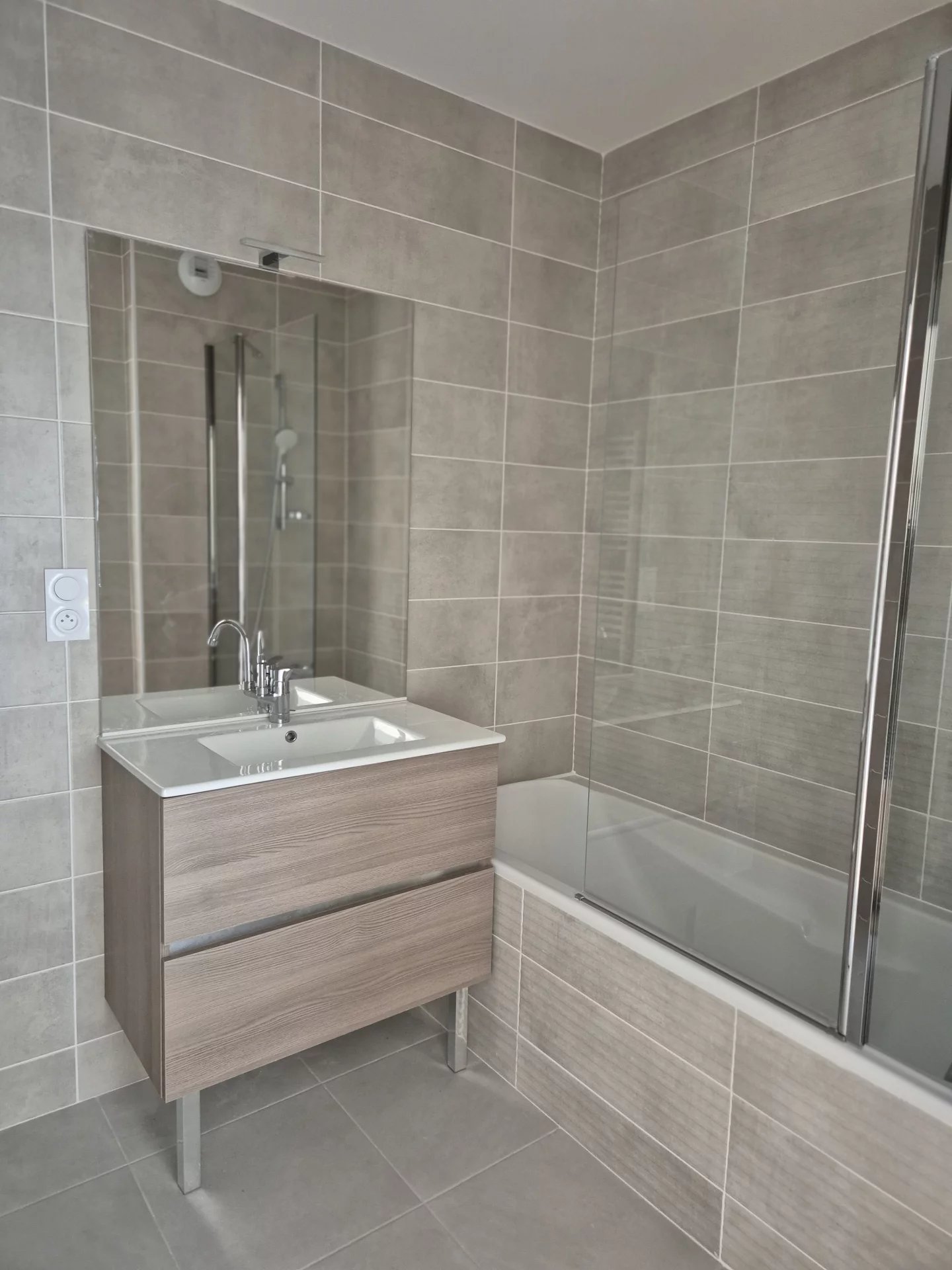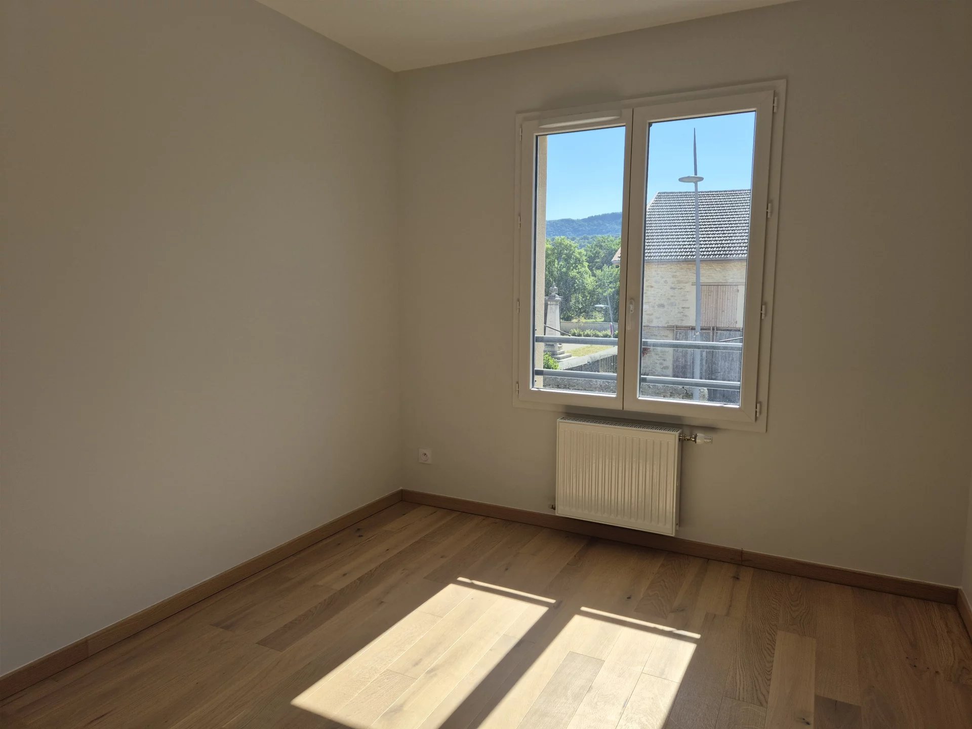 Au cœur d'un village dynamique avec des commerces de proximités, cet appartement neuf et moderne de 3 pièces est situé au premier étage d’une copropriété récente. Il offre un hall d’entrée, un séjour-cuisine (non aménagée) donnant sur une terrasse de 13 m² exposée Est et un dégagement avec placard dessert une salle de bains, le wc et deux chambres dont une avec placard mural. L'appartement est chauffé au moyen d'une chaudière gaz individuelle. Un spacieux garage de 20,56 m² complète ce bien qui est équipé d'électricité.