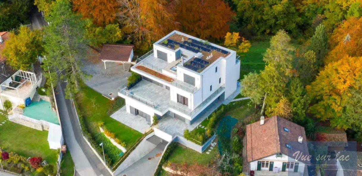 Propriété située dans l’un des meilleurs quartiers de Pully, bénéficiant d'une situation dominante et d’une vue époustouflante sur le Lac, les Alpes et la forêt avoisinante.