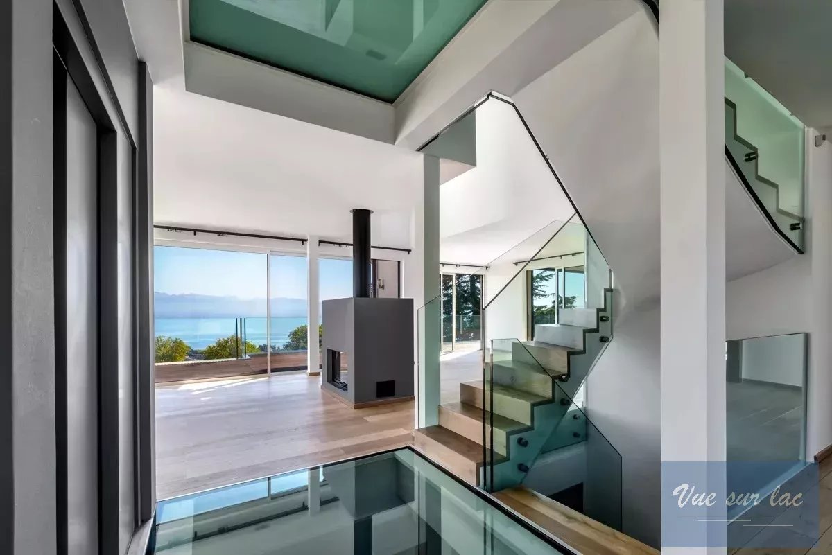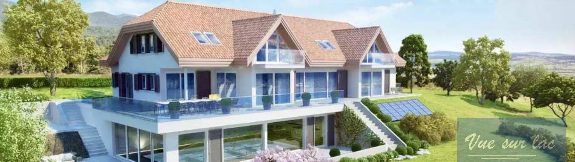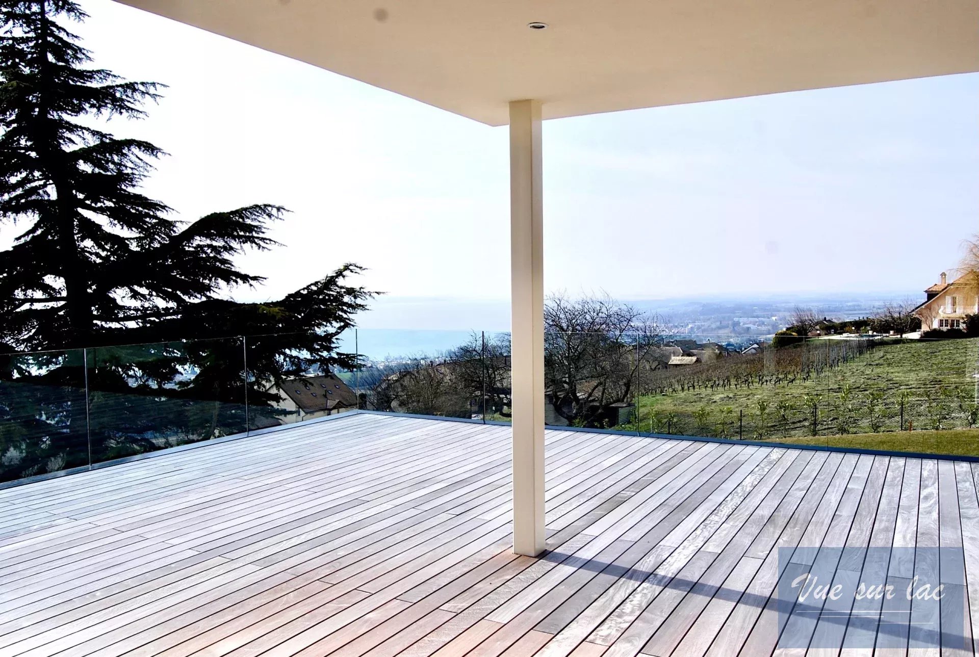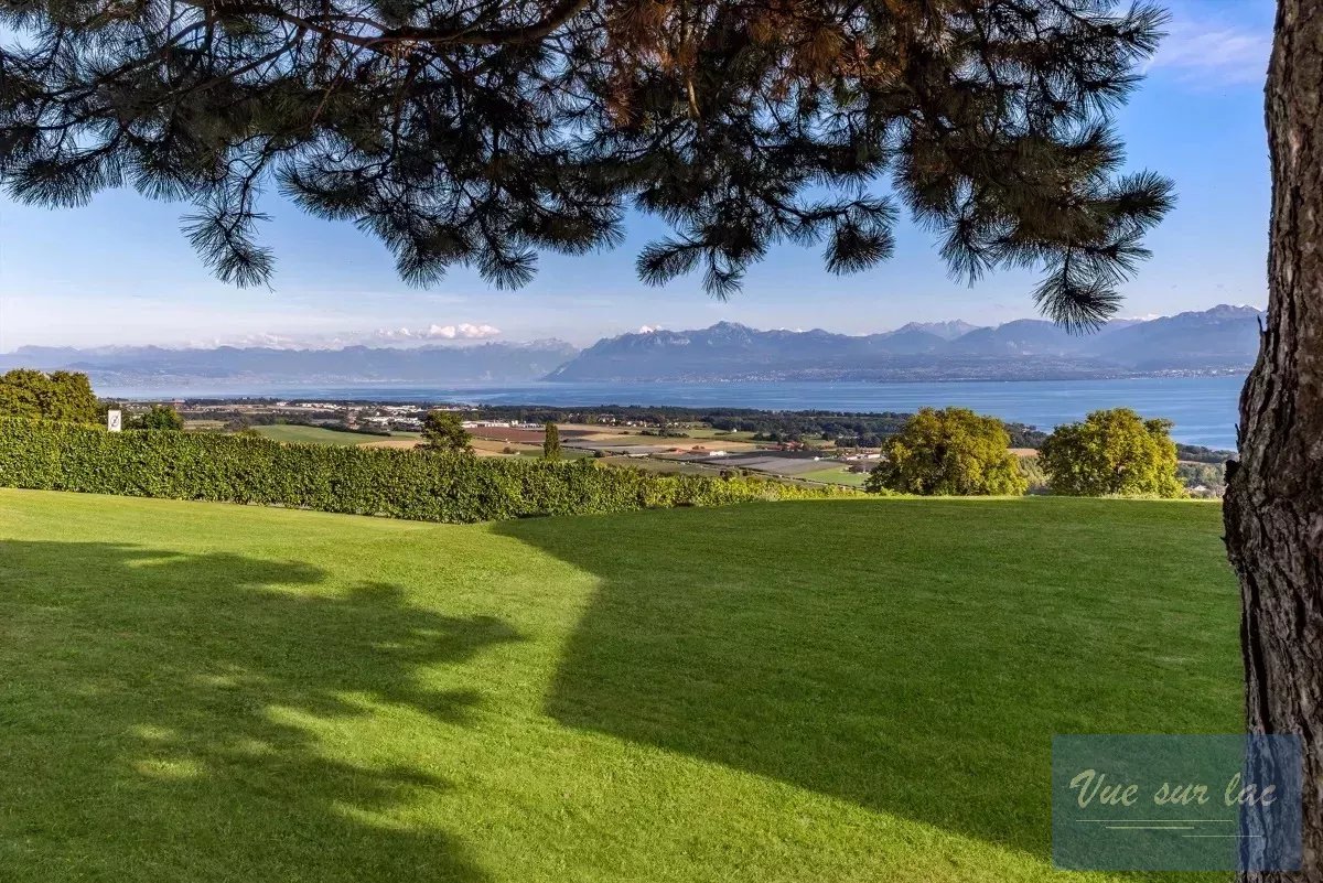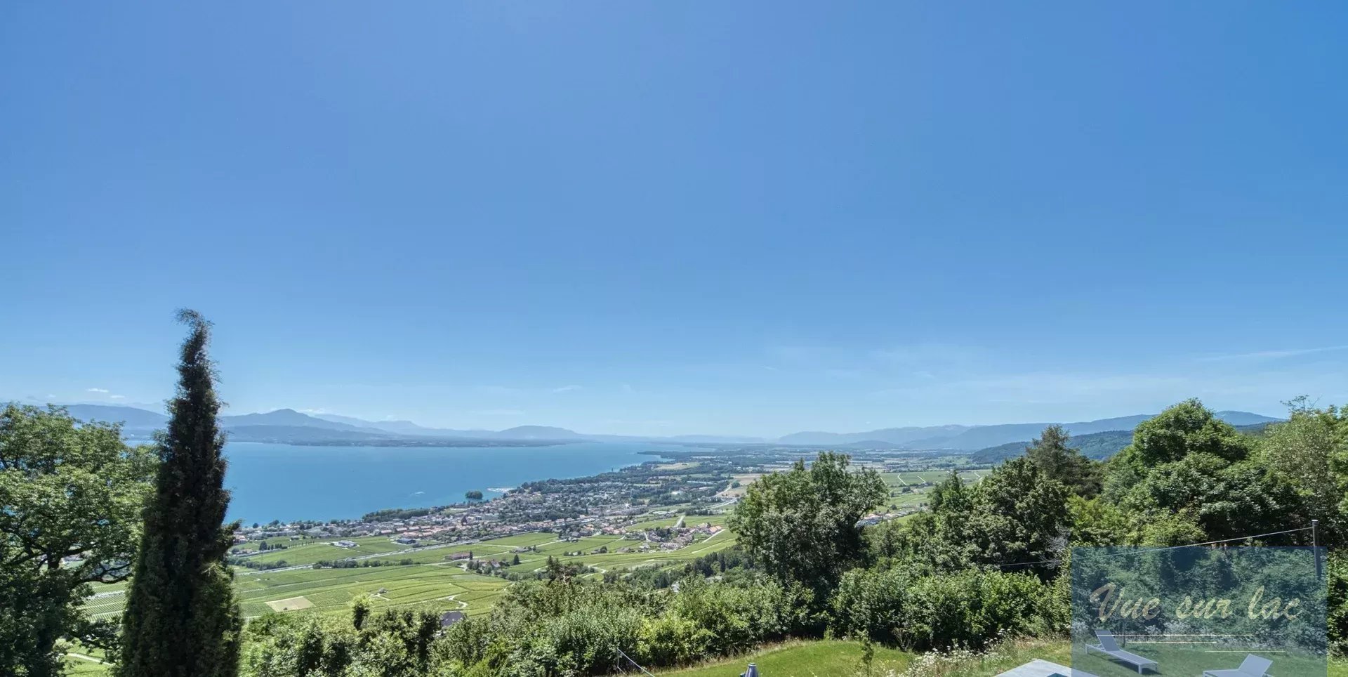 Bénéficiant d'une parcelle de plus 3'500 m2 plane, la propriété profite d'une vue panoramique sur le lac, les Alpes et le Mont Blanc.