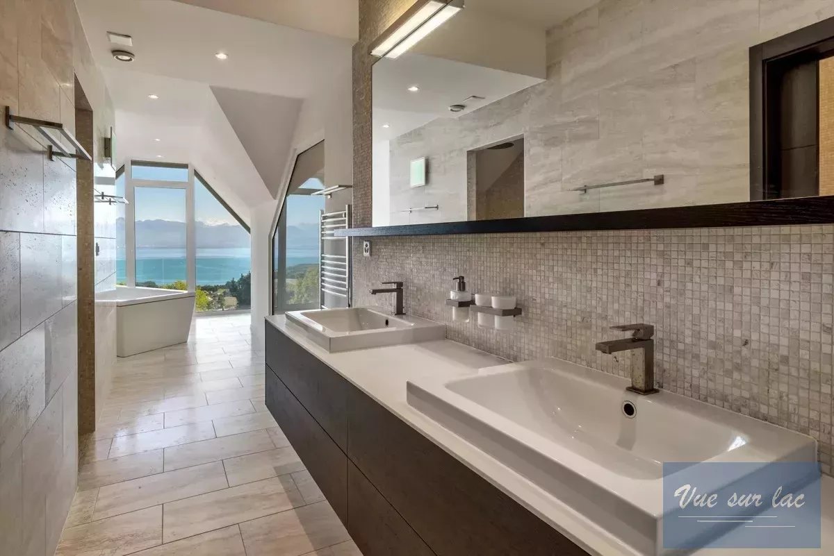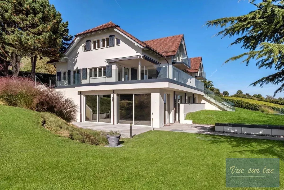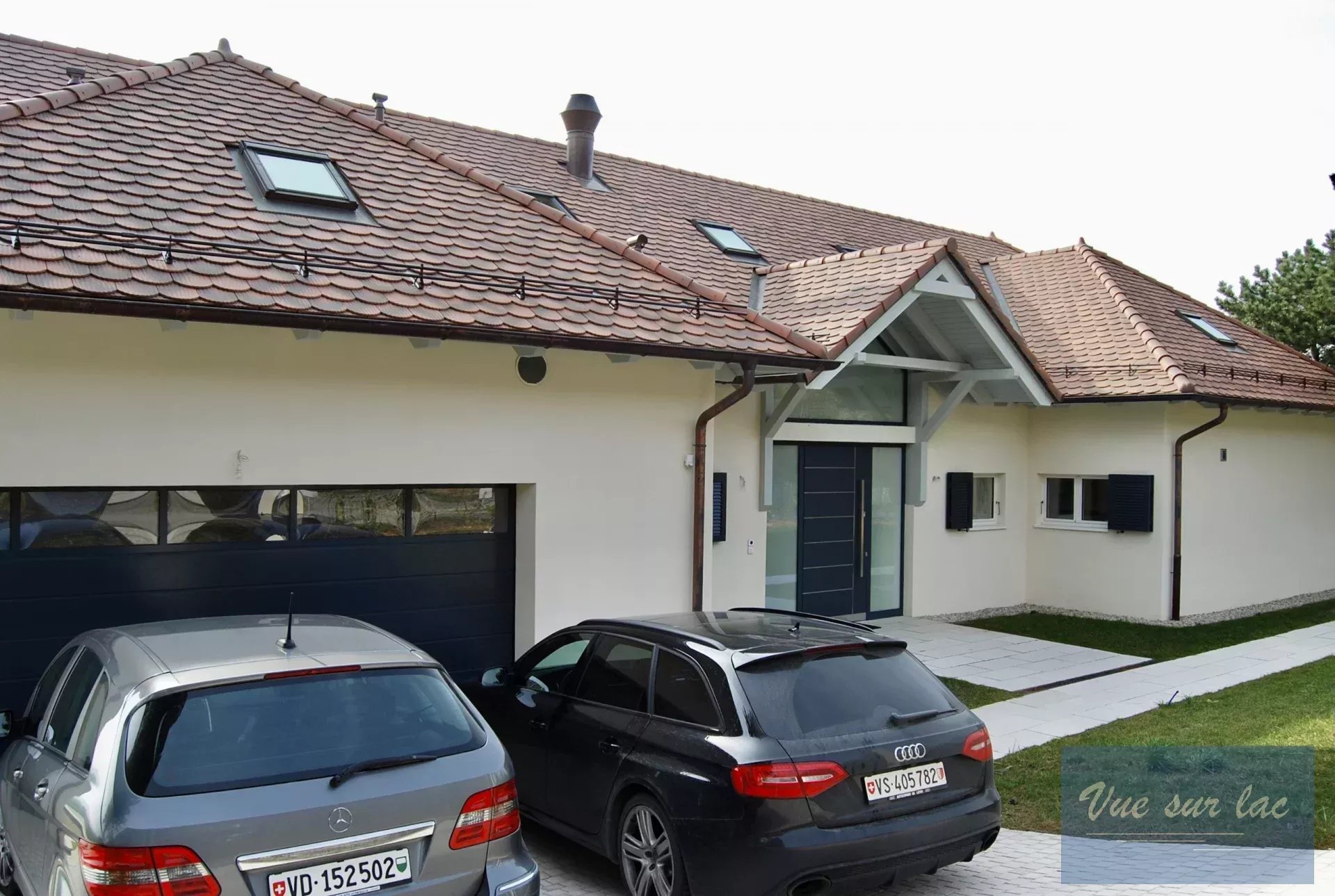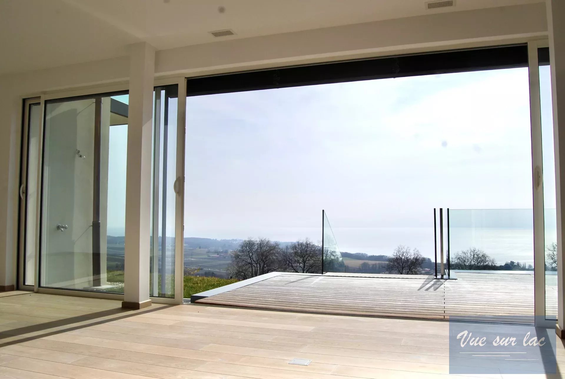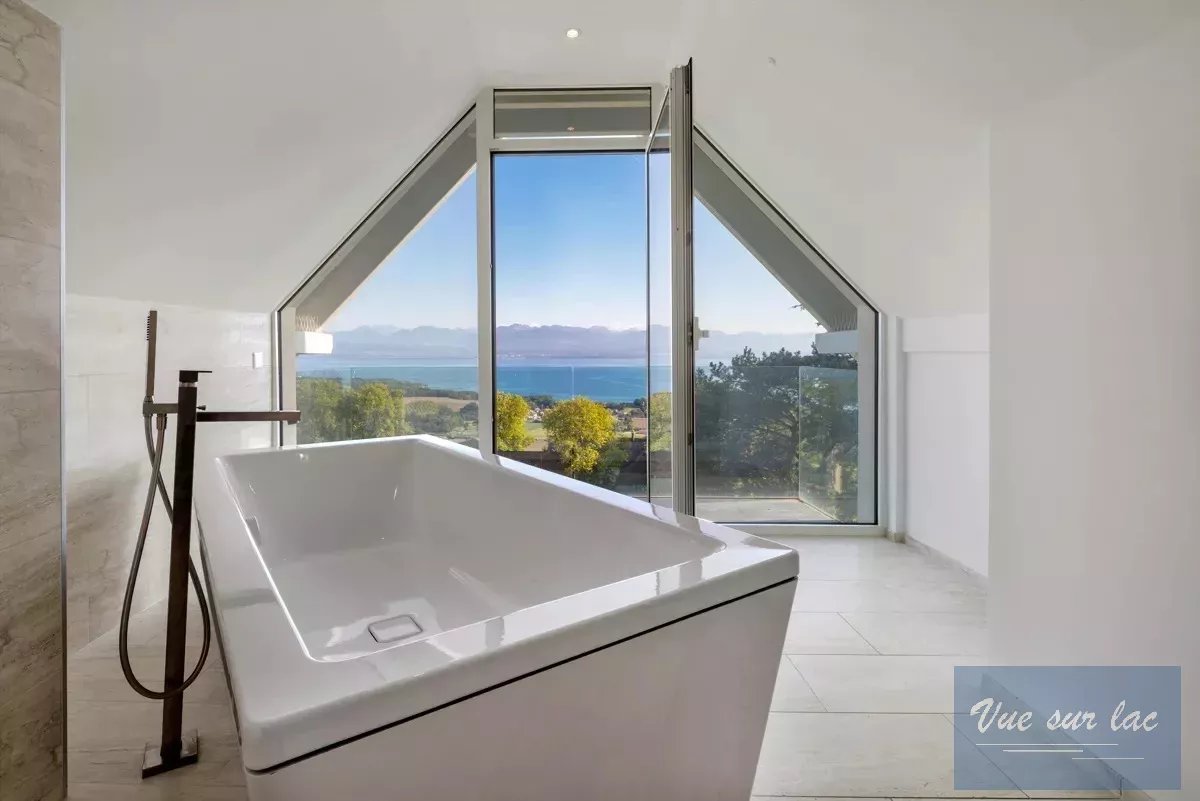 Bénéficiant d'une parcelle de plus 3'500 m2 plane, la propriété profite d'une vue panoramique sur le lac, les Alpes et le Mont Blanc.