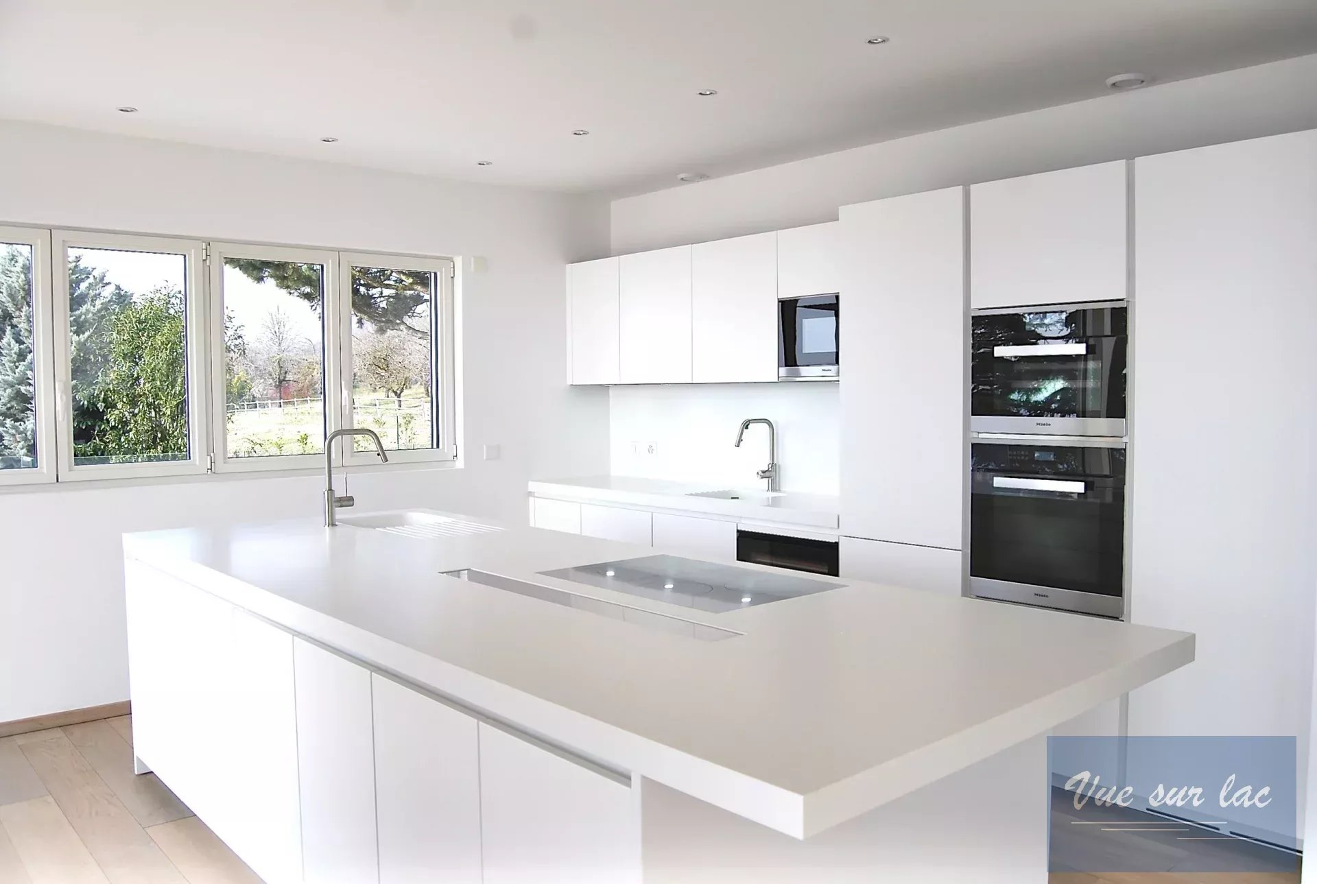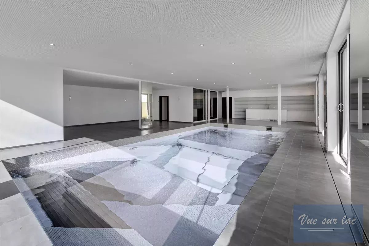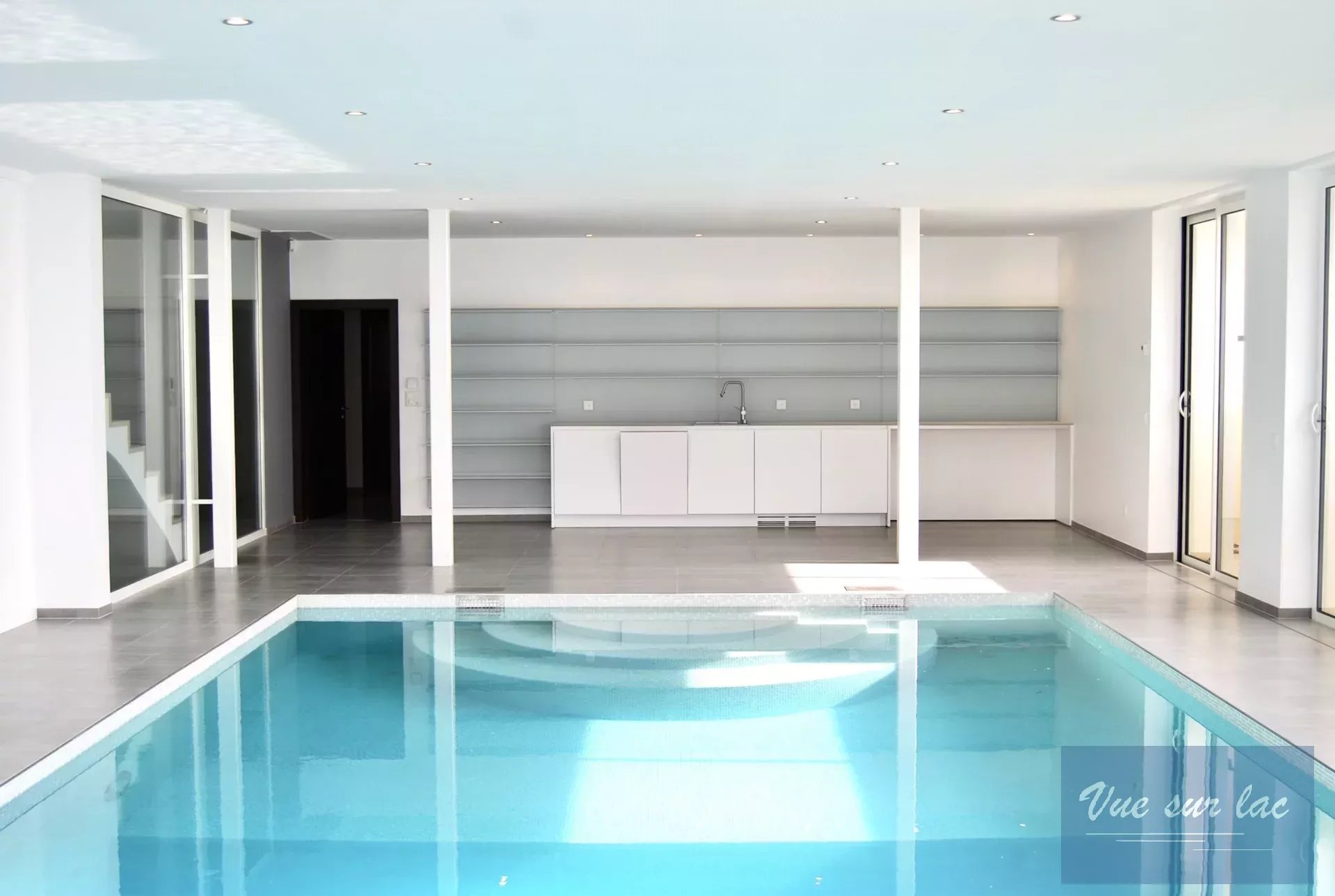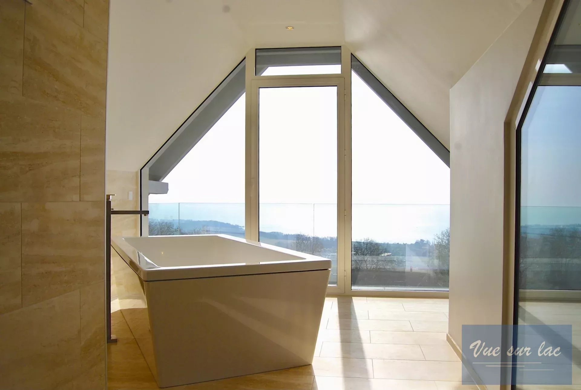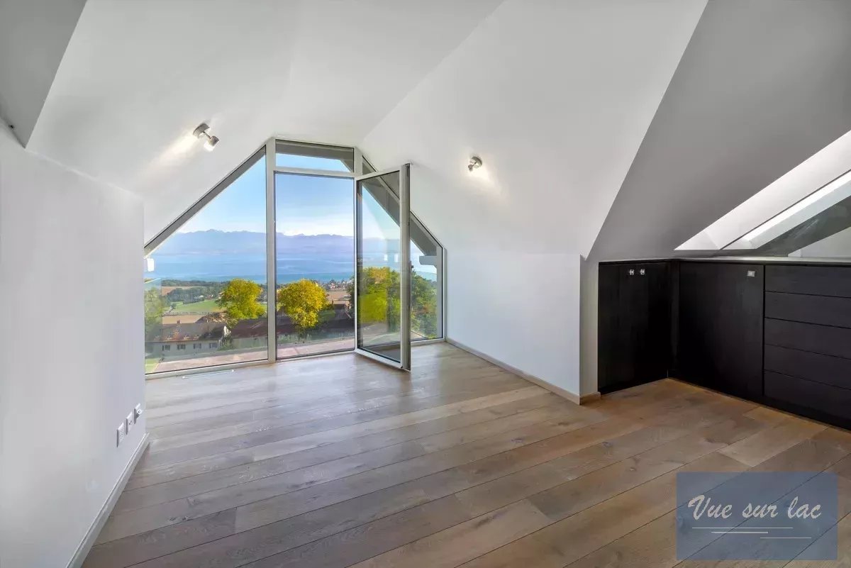 Bénéficiant d'une parcelle de plus 3'500 m2 plane, la propriété profite d'une vue panoramique sur le lac, les Alpes et le Mont Blanc.