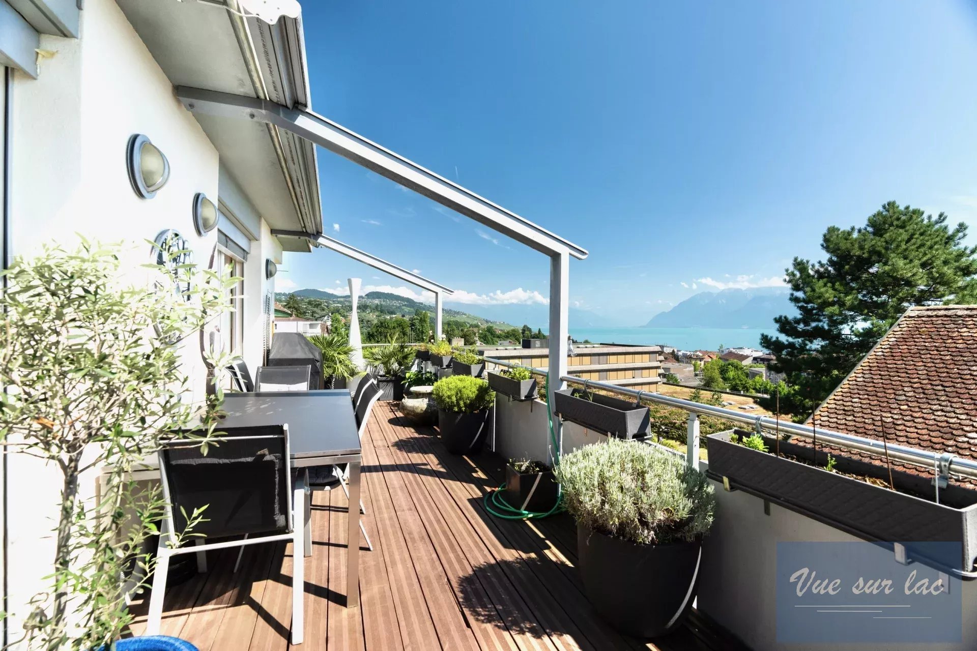 Très grand et lumineux appartement au coeur de Pully, dans un quartier calme et aux vues panoramiques sur le lac et les montagnes.
