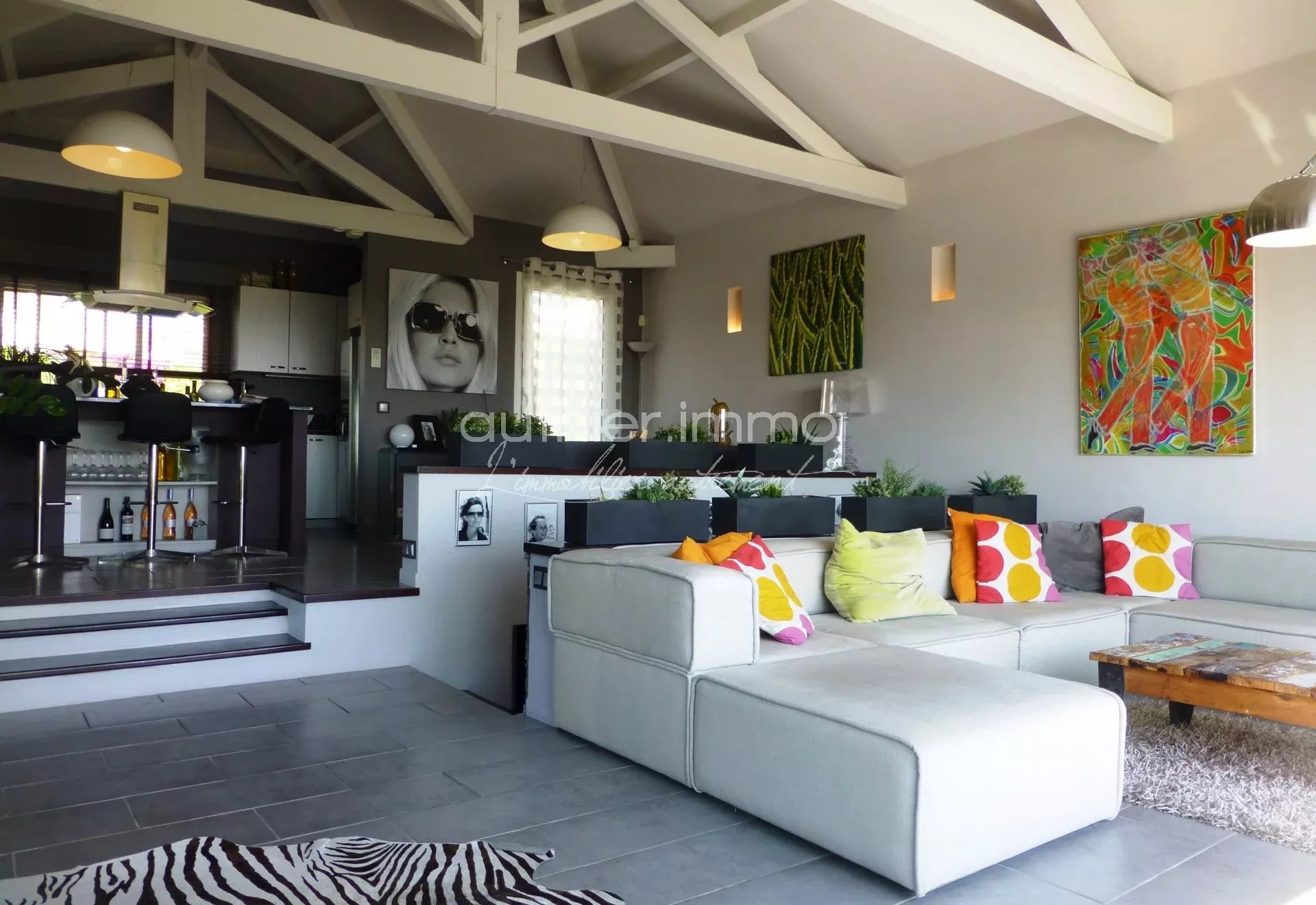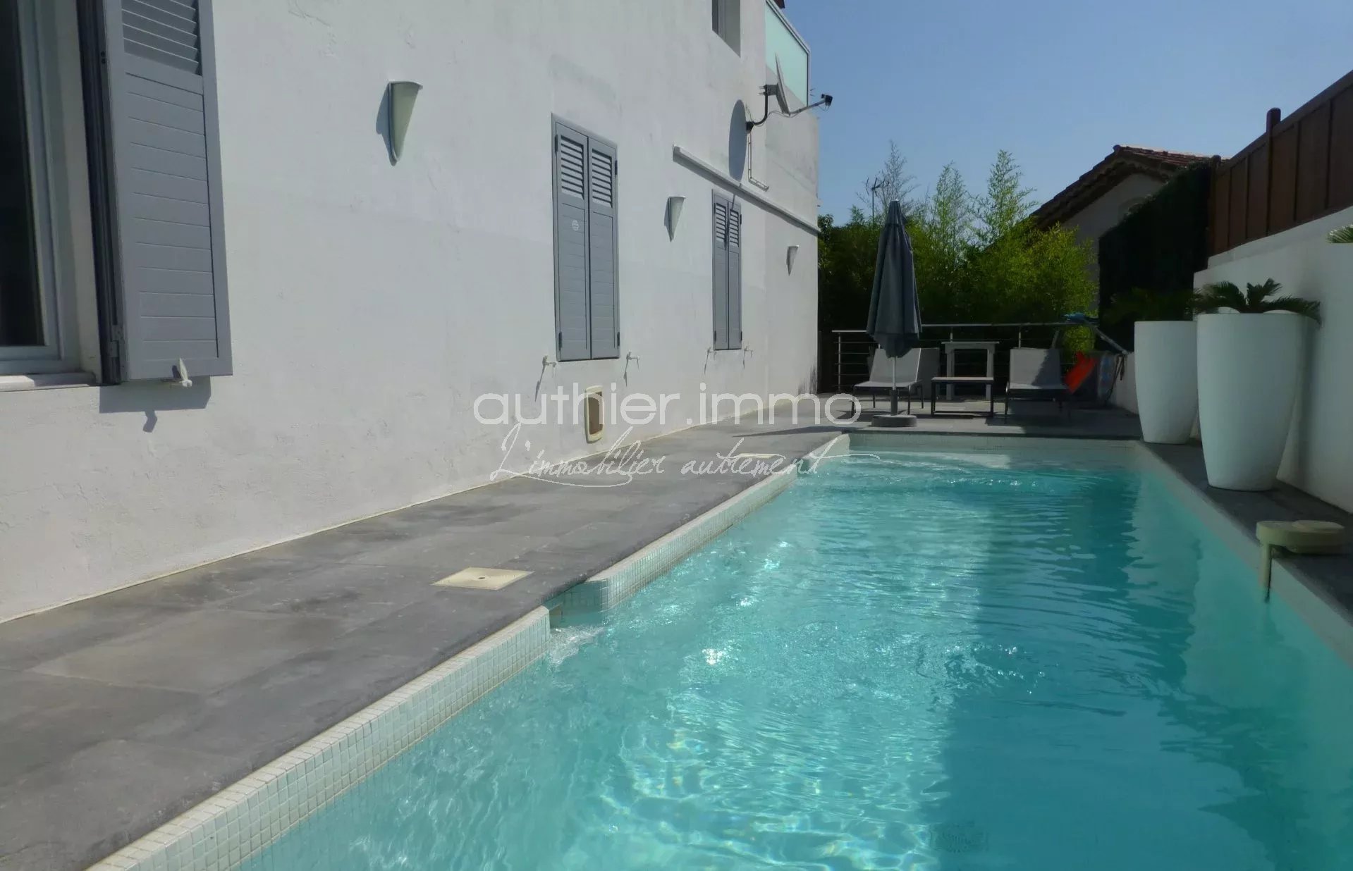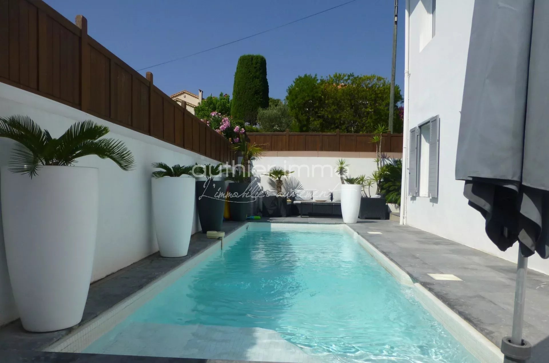 ANTIBES RESIDENTIEL COMMERCES A PIED VILLA des Années 20 rénovée en 2011 dans un style contemporain. Espace vie de 65 m² prolongé d'une terrasse Vue Mer, Cuisine conviviale, salon cheminée ... Prestations Raffinées alliant confort et bon goût, 3 chambres, salle d'eau et salle de bains + 2 pièces indépendant pouvant être intégré à la maison (rapport locatif intéressant) Terrain 350 m² avec Piscine chauffée et nage à contre courant. Garage et parkings. Chauffage au sol Produit Exceptionnel à visiter très vite !!!