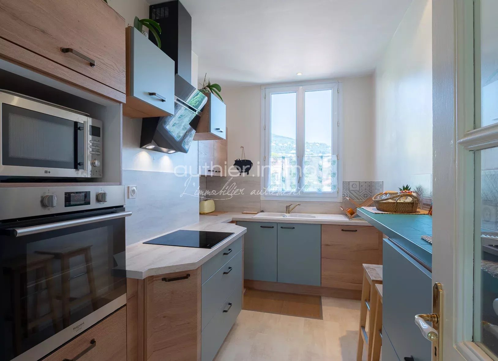 L’entrée dessert une belle cuisine à vivre baignée de lumière, une chambre avec dressing, une salle de bain et un Wc.