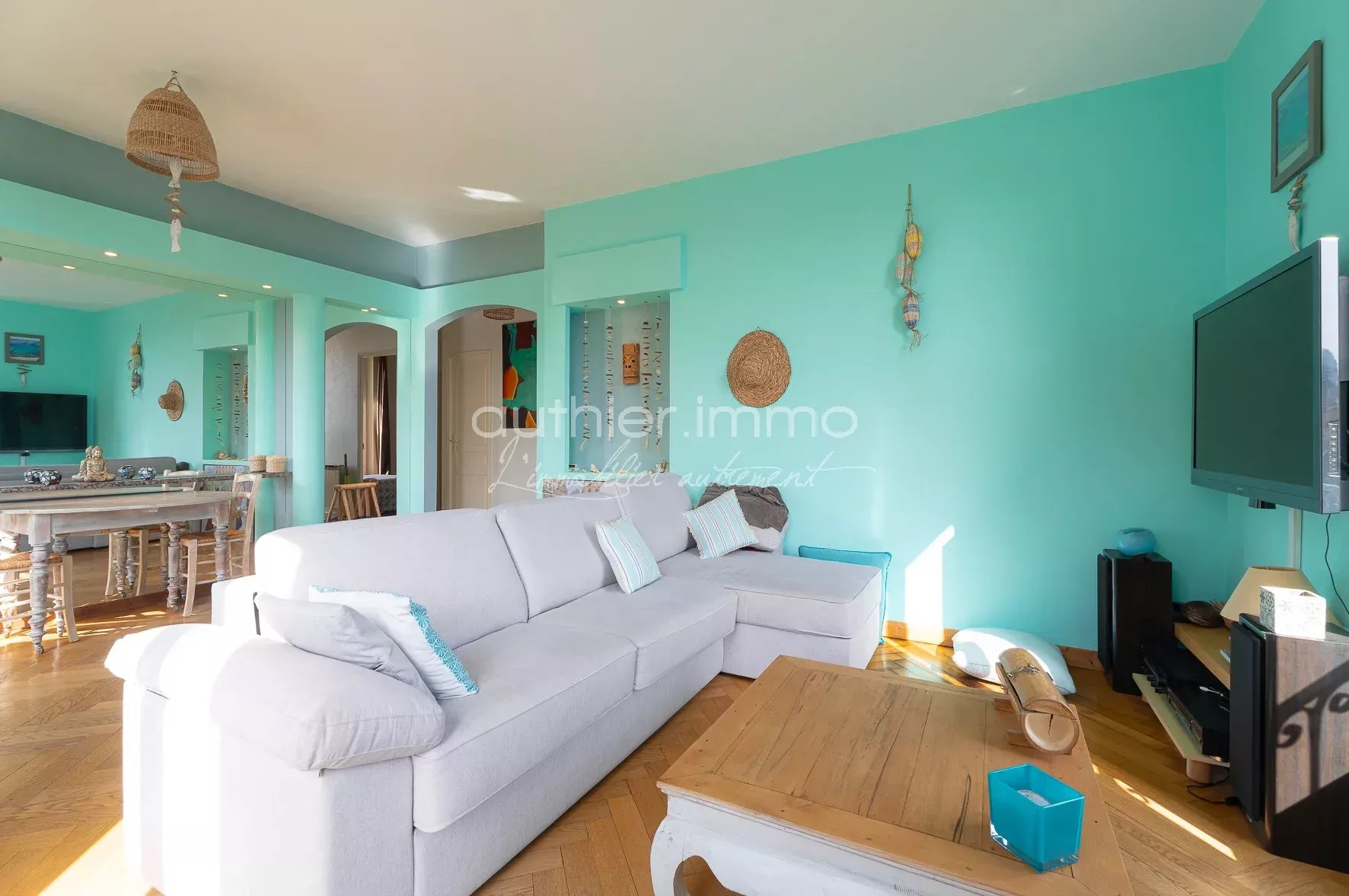 Cette dernière triplement exposée, offre un coin salon et un coin salle à manger.