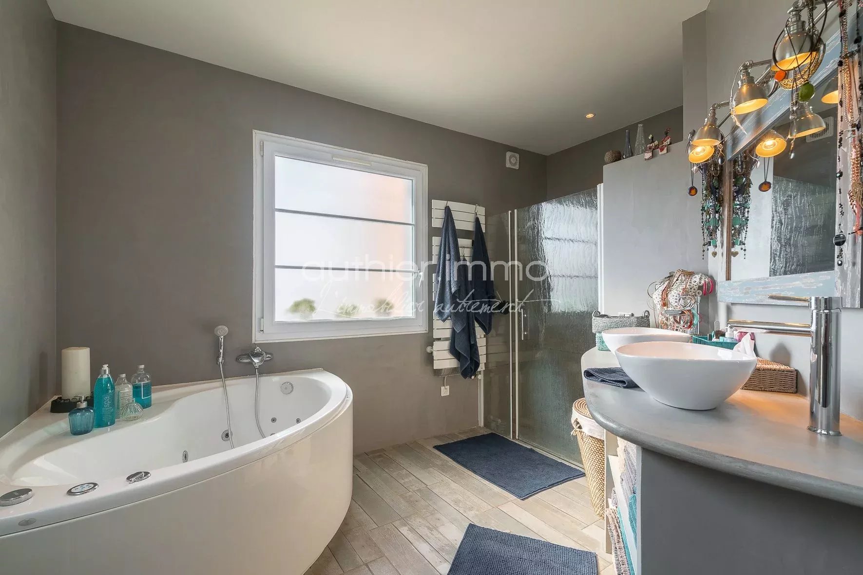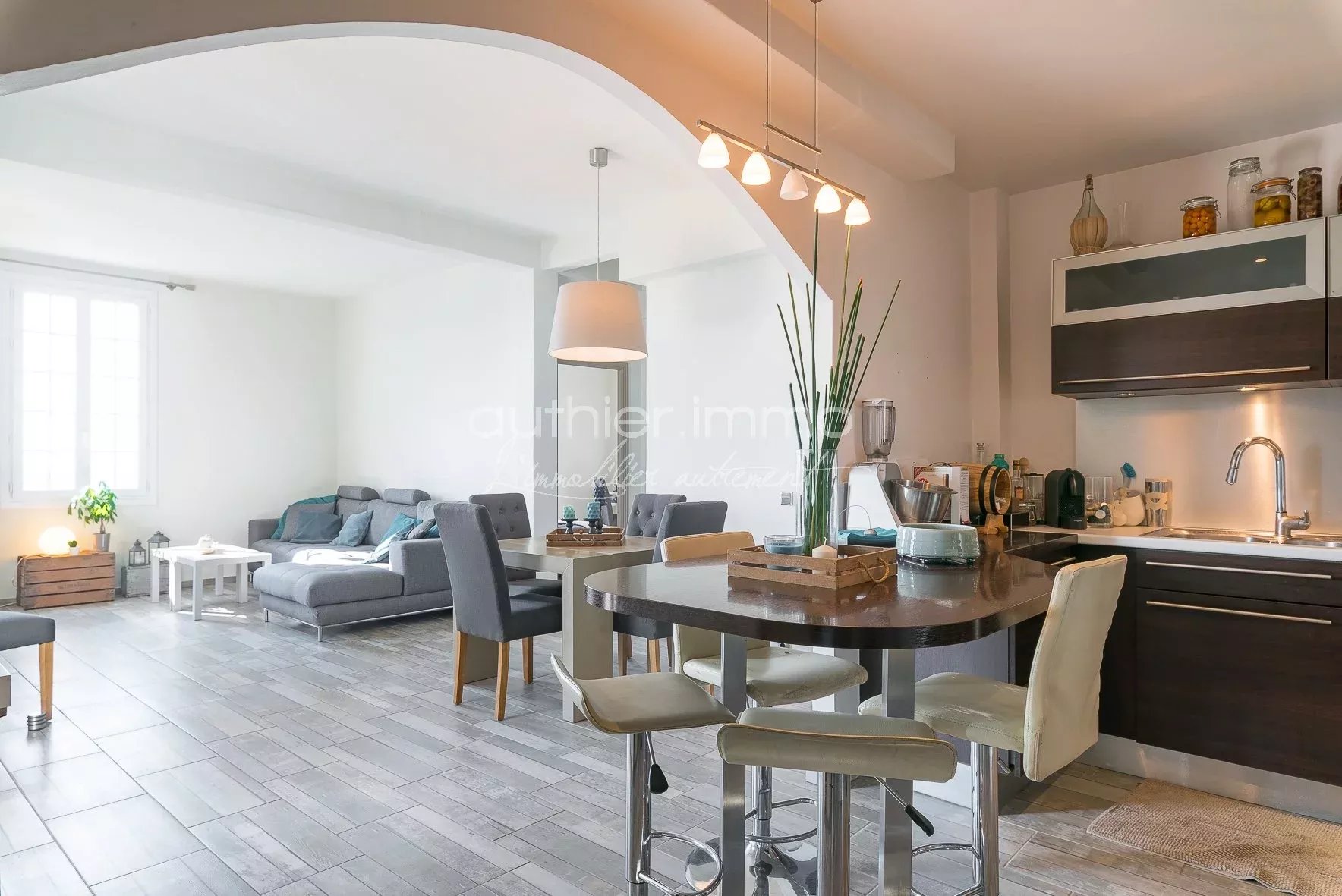 Spacieux et lumineux, le Séjour se prolonge d'une Maginifique Terrasse offrant une vue incroyable Mer et Collines, la cuisine est une invitation aux plaisirs culinaires et au partage, les 2 chambres principales profitent d'une belle hauteur sous plafond, la 3ème chambre est possible dans l'immense dressing, la salle de bains offre douche et baignoire balnéo, le coin buanderie se partage avec les toilettes et en annexe un espace bureau de 20 m² modulable en studio indépendant.