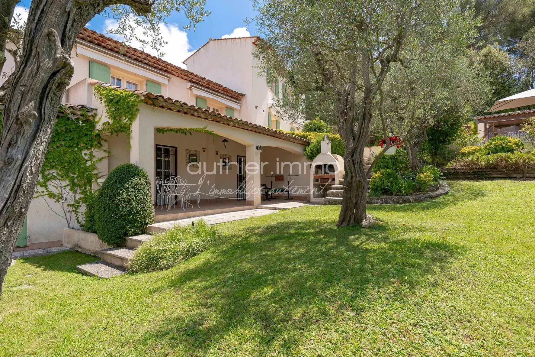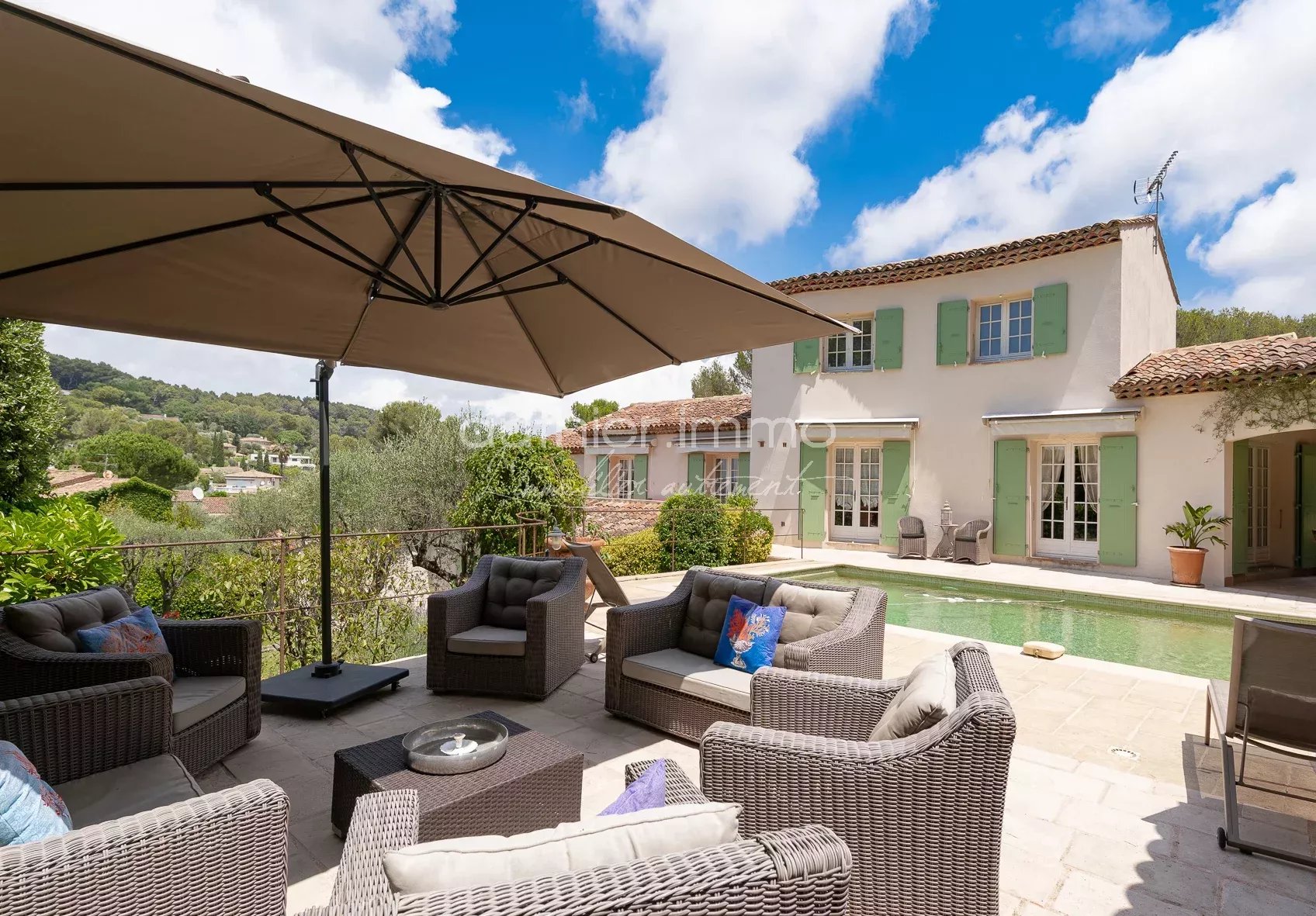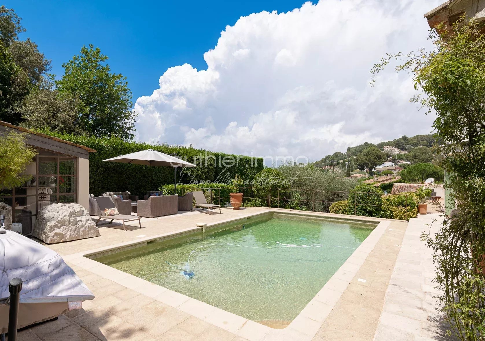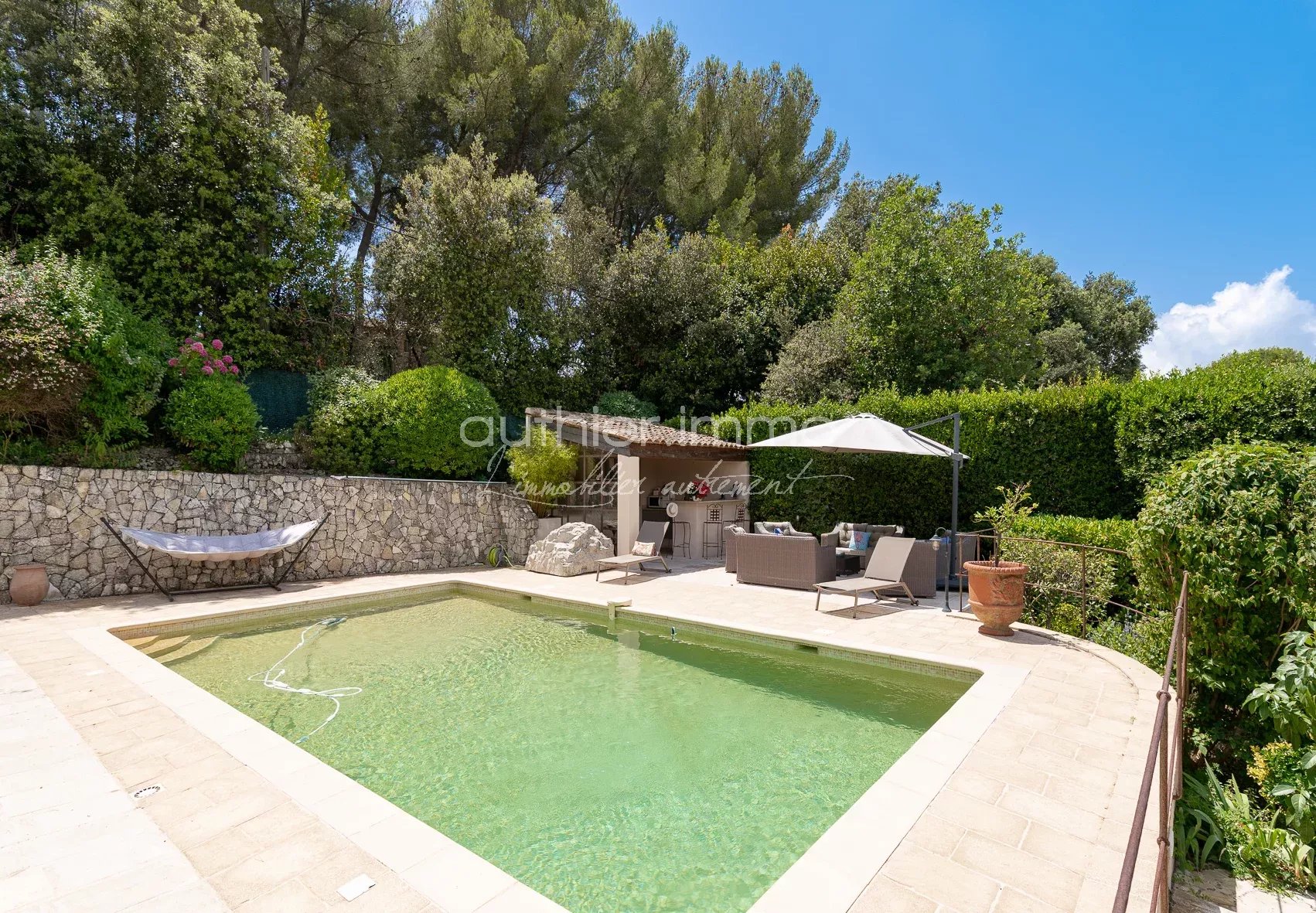 EXCLUSIVITÉ - VENDUE - Implantée en position dominante, à 12min du centre de Cannes et 3min de l’autoroute A8, dans un Domaine paisible à l’Abri des regards, cette maison des années 70 est issue de la réunion de 2 villas mitoyennes.