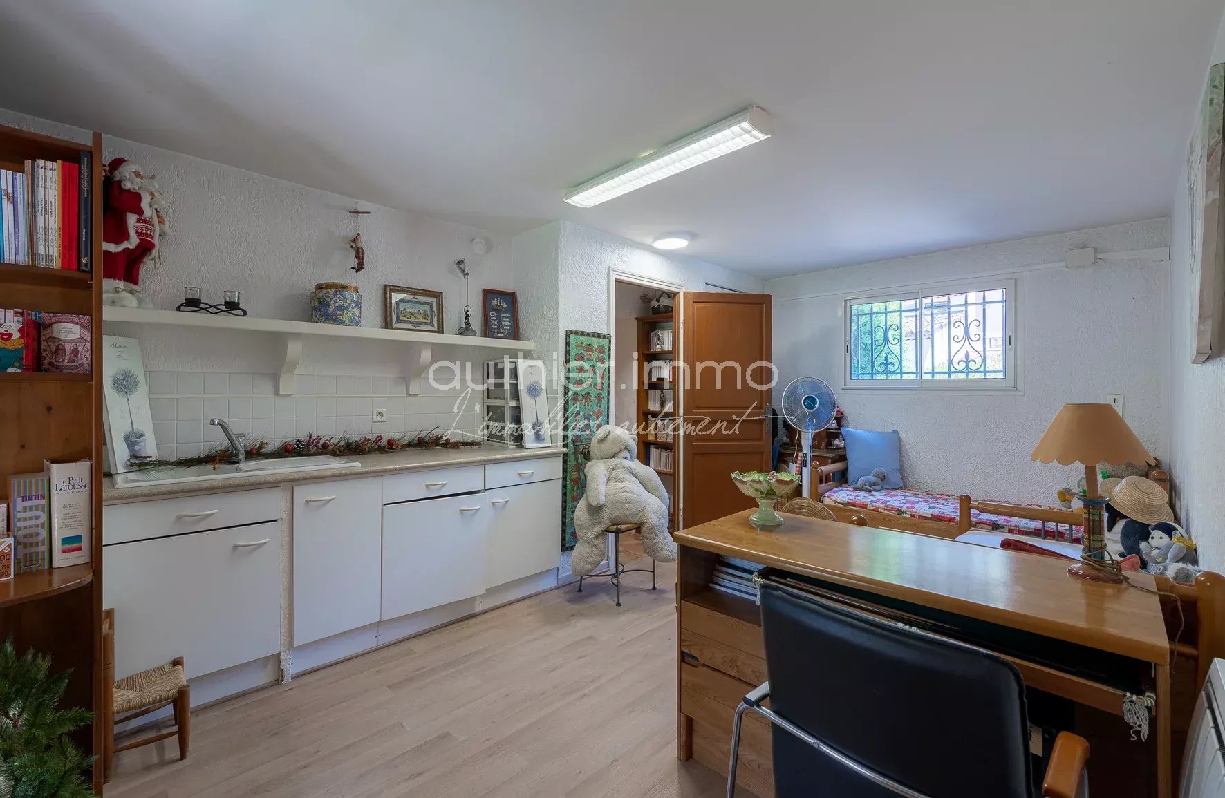 La 2ème partie de la maison en Rez de Jardin, donne la possibilité d’héberger la famille ou les amis de passage tout en conférant autonomie et indépendance aux convives. Elle se compose d’un Salon avec Cheminée prolongé d’une terrasse couverte avec Barbecue, un grand bureau, et 2 chambres avec salle de douche