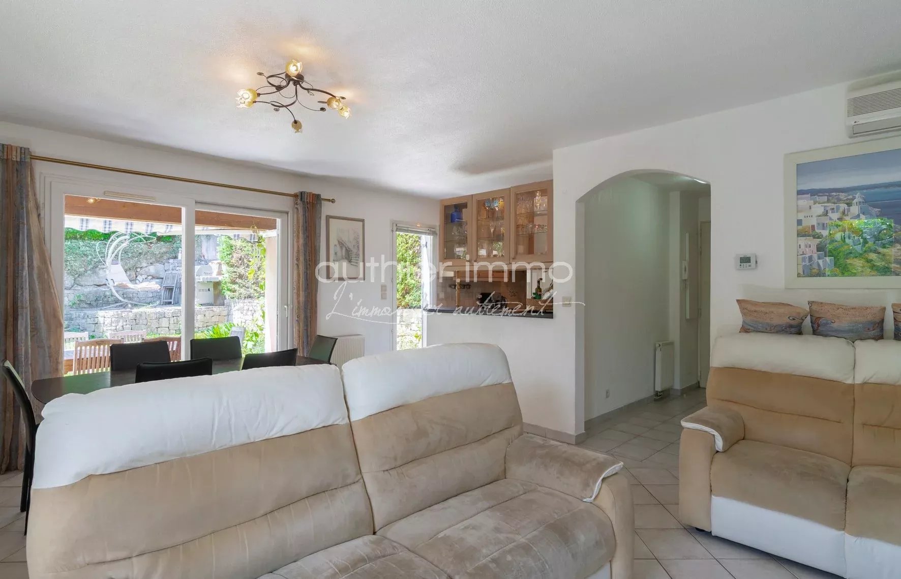 EXCLUSIVITÉ - VENDUE - Agréable et lumineuse villa, nichée dans un coin de verdure sans aucun vis-à-vis, profitant du calme et d'un accès direct au parc de la Valmasque, le Séjour avec cheminée est ouvert sur un agréable jardin, la cuisine donne sur la terrasse, à l'étage les trois chambres avec penderies se partagent une vaste salle de bains, 2 toilettes, sous-sol avec buanderie et grande cave. A 5 minutes de Sophia, à pied du Golf Victoria Un grand garage et 2 places de parking viennent compléter cet ensemble idéalement situé Chauffage Gaz de ville - Climatisation - Double Vitrage - Expo Sud-Ouest Charges copro 150€/an - foncier 776€/an A voir très vite !