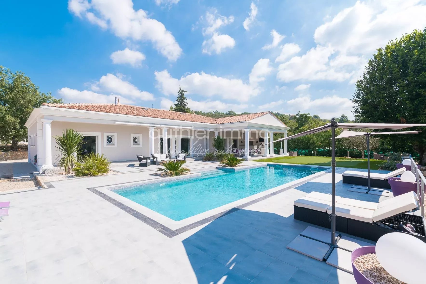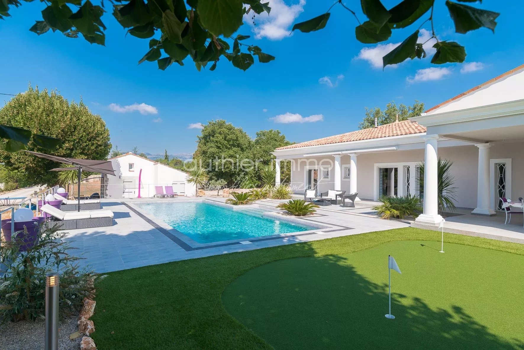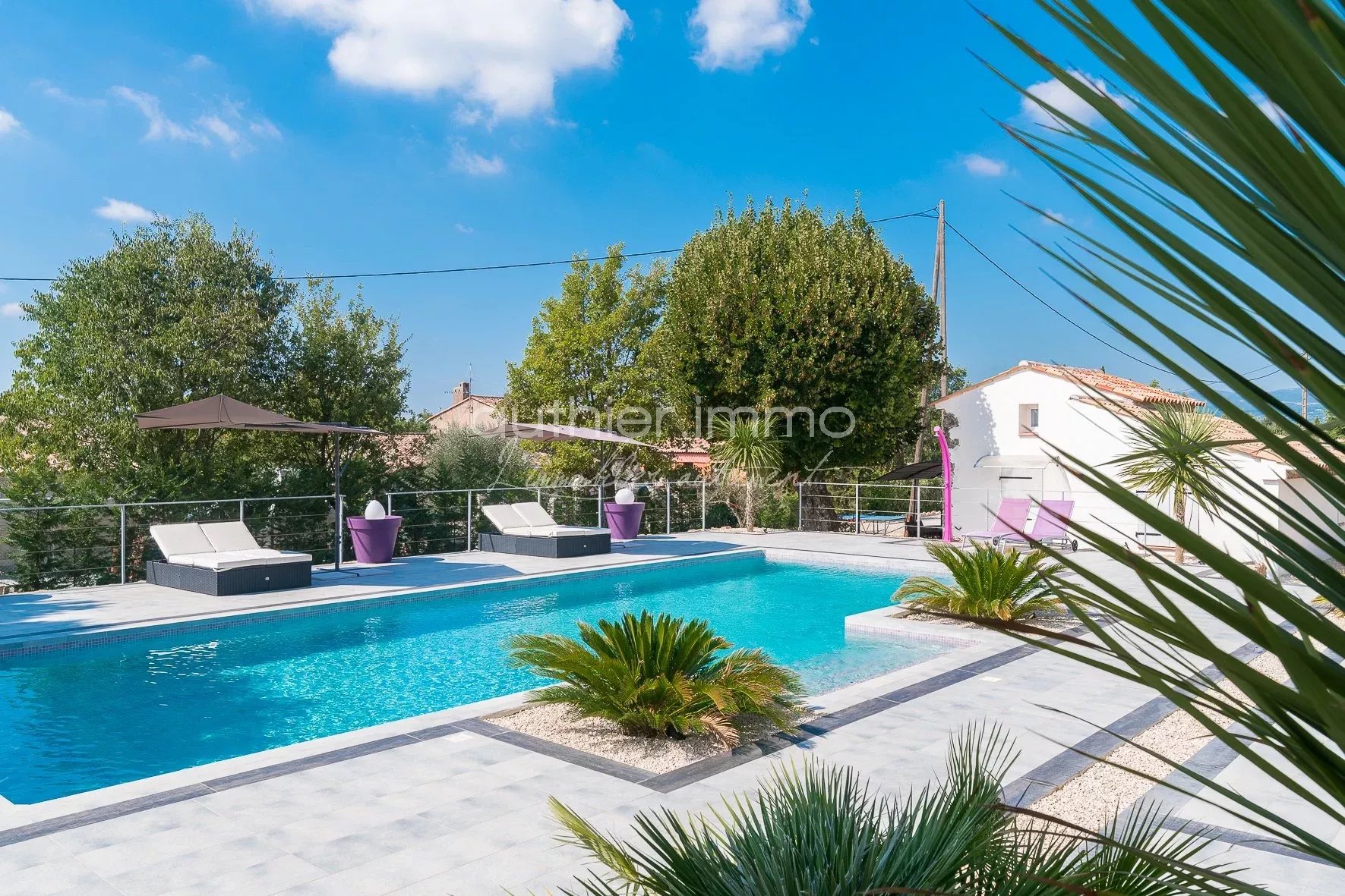 VENDUE - EXCLUSIVITÉ - Elégante Villa d'Architecte, Située dans le village Provençal de St Cézaire, à proximité du Golf de Taulane et de Terre Blanche, Cette Villa unique et sophistiquée de 300 m² est une Véritable Réussite de l'Architecture Moderne. La maison dispose de 5 chambres en suite, chacune avec salle de bains, d'une spacieuse zone de réception (100 m²), d'une cuisine exceptionnelle ultra-équipée et d'un Mazet indépendant de 35 m² Climatisation, Chauffage au sol, aspiration centralisée, cave à vin et chauffe eau thermodynamique Terrain Plat de 3000 m², avec Terrasse et Piscine de 70 m² avec cuisine d'été, putting green Construction 2010 avec certificat de conformité Très Belle Affaire !