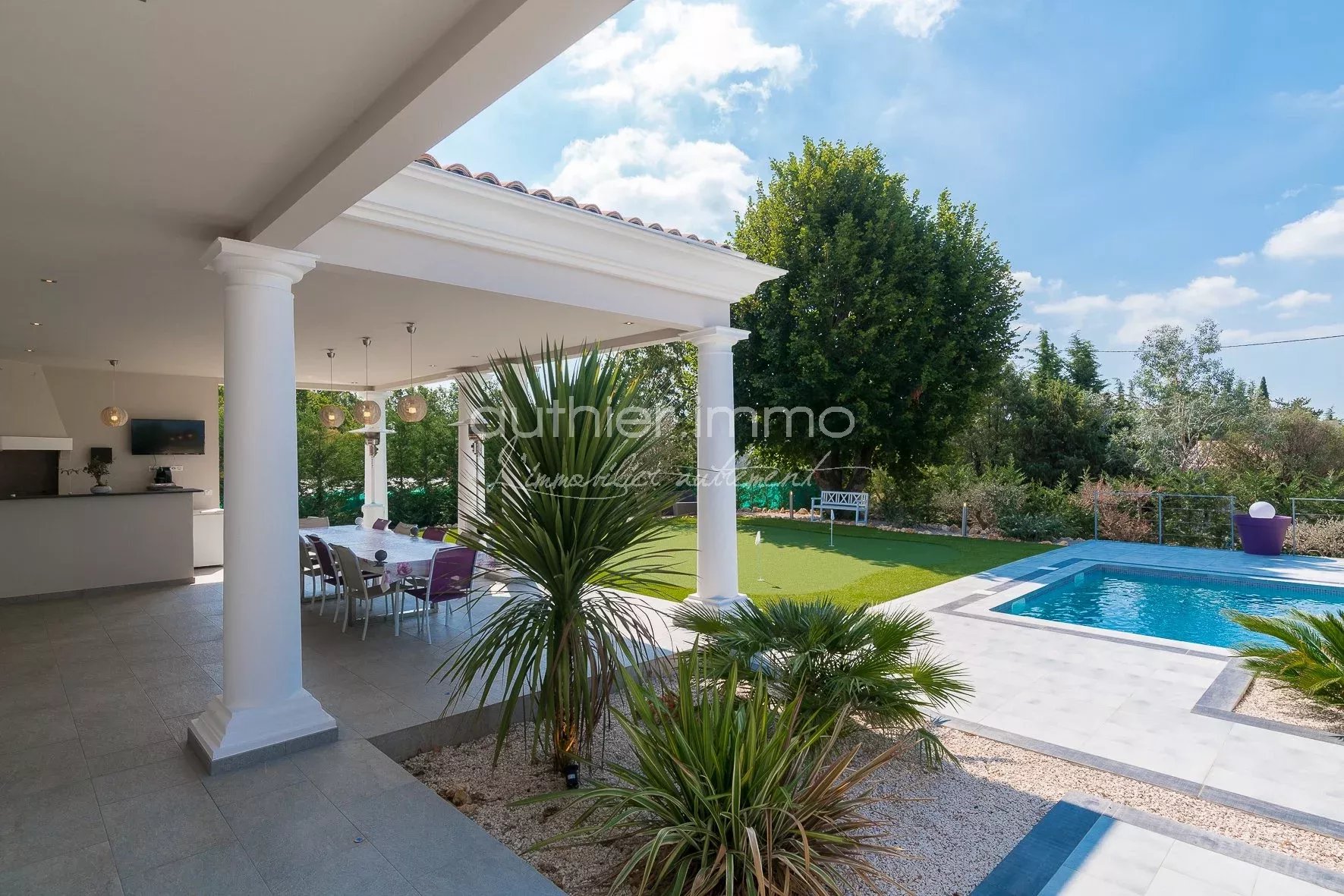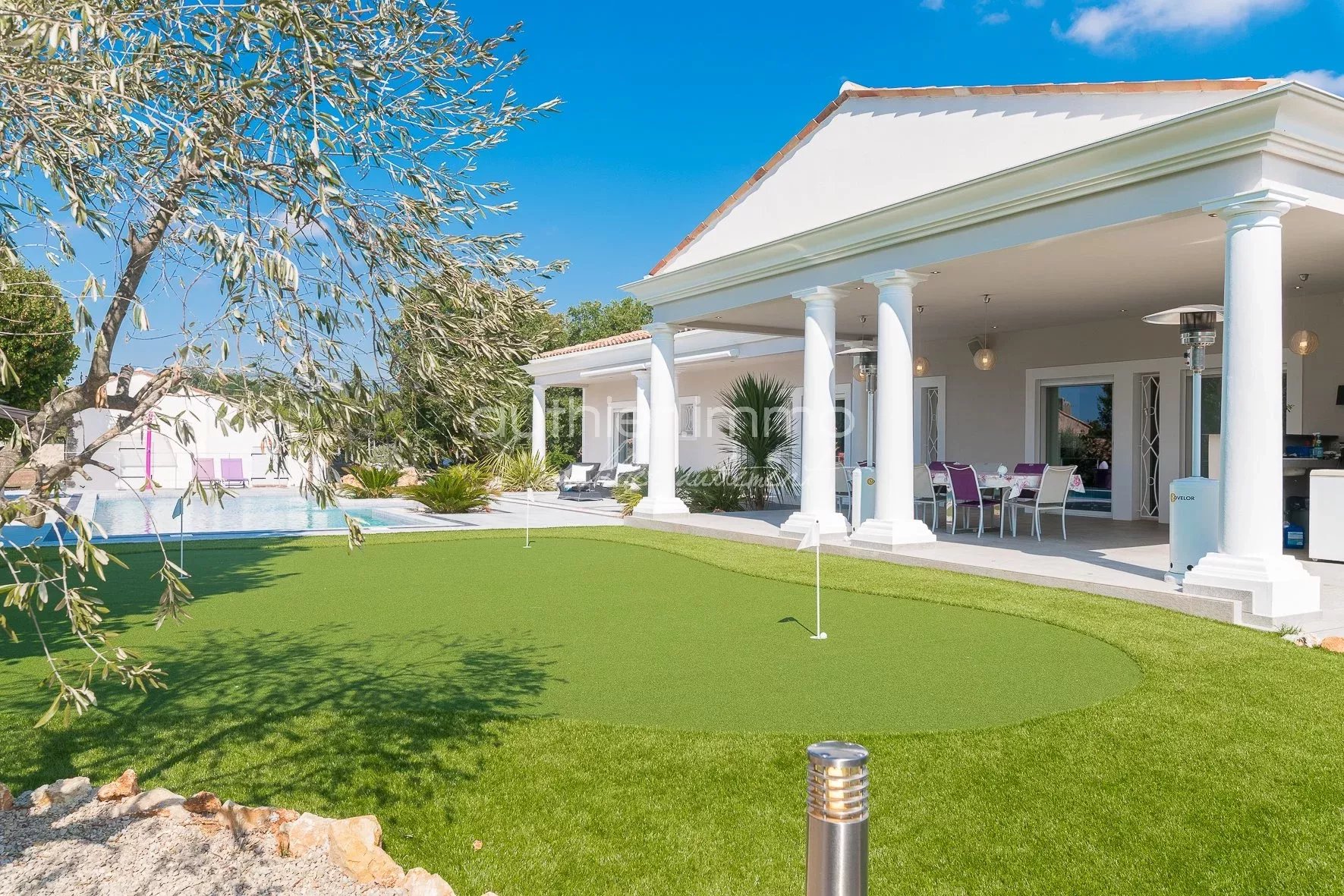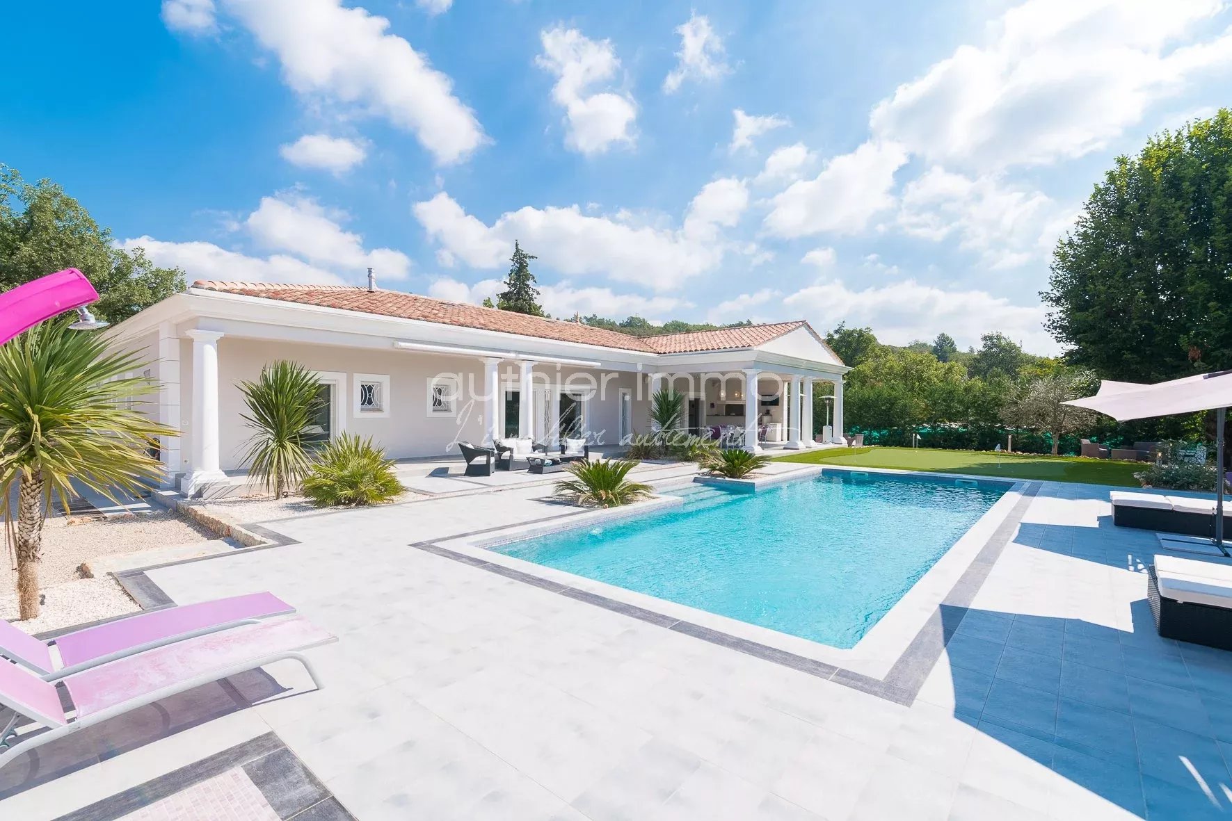 VENDUE - EXCLUSIVITÉ - Elégante Villa d'Architecte, Située dans le village Provençal de St Cézaire, à proximité du Golf de Taulane et de Terre Blanche, Cette Villa unique et sophistiquée de 300 m² est une Véritable Réussite de l'Architecture Moderne. La maison dispose de 5 chambres en suite, chacune avec salle de bains, d'une spacieuse zone de réception (100 m²), d'une cuisine exceptionnelle ultra-équipée et d'un Mazet indépendant de 35 m² Climatisation, Chauffage au sol, aspiration centralisée, cave à vin et chauffe eau thermodynamique Terrain Plat de 3000 m², avec Terrasse et Piscine de 70 m² avec cuisine d'été, putting green Construction 2010 avec certificat de conformité Très Belle Affaire !