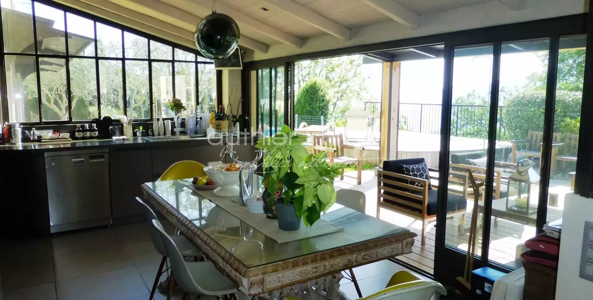 VENDUE - CHATEAUNEUF, Situation résidentielle à proximité du village, au calme, Magnifique bastide rénovée par une architecte d'intérieur. Elle se compose d'une entrée, Bureau avec Terrasse couverte, suite parentale avec magnifique Véranda offrant une vue panoramique, En Rez de Jardin, salon avec cheminée, spacieuse cuisine équipée - salle à manger, Terrasse couverte, 3 chambres donnant sur jardin, salle de bains et salle d'eau. Sous-Sol de 50 m² Cellier / lingerie, Mazet Indépendant, Terrain 1650 m², superbe piscine, garage. Coup de coeur Assuré !!!