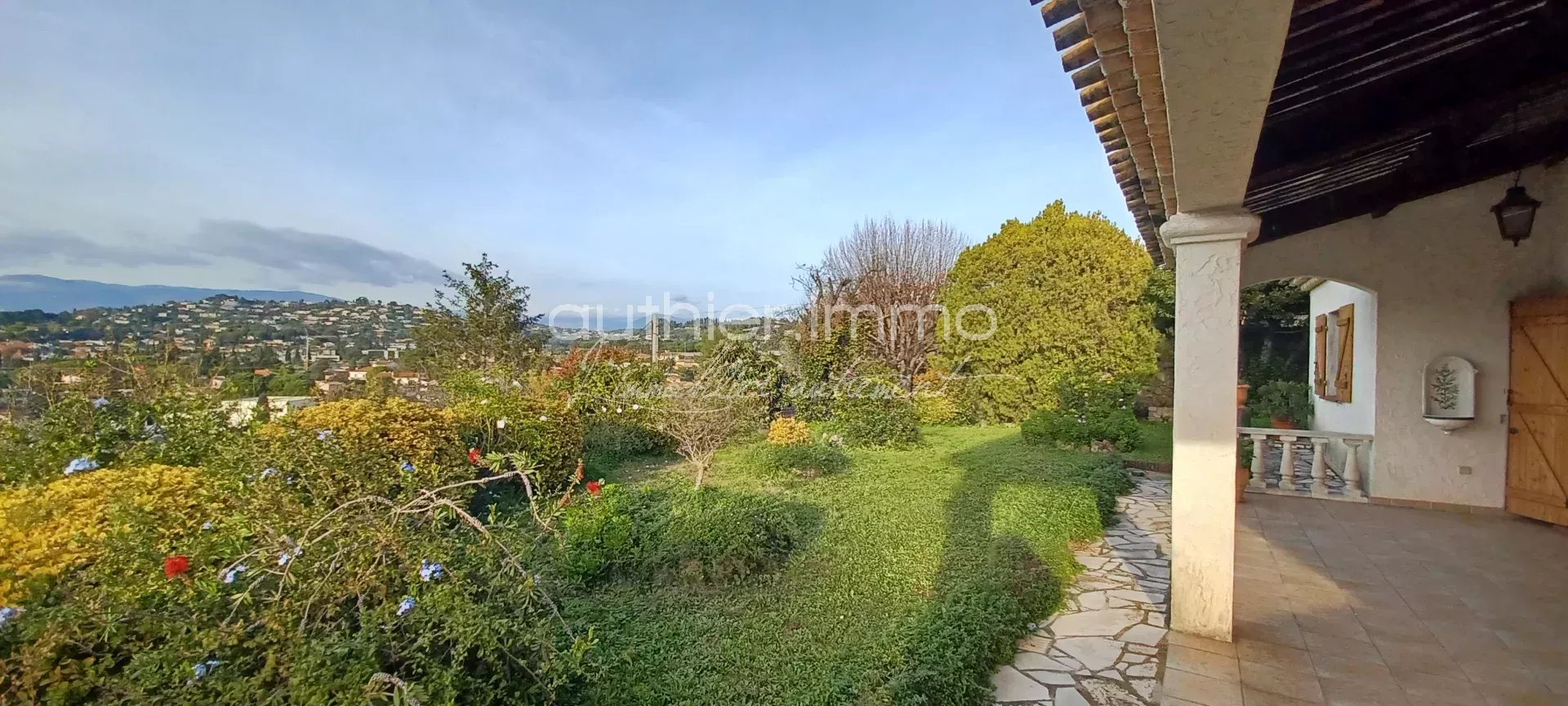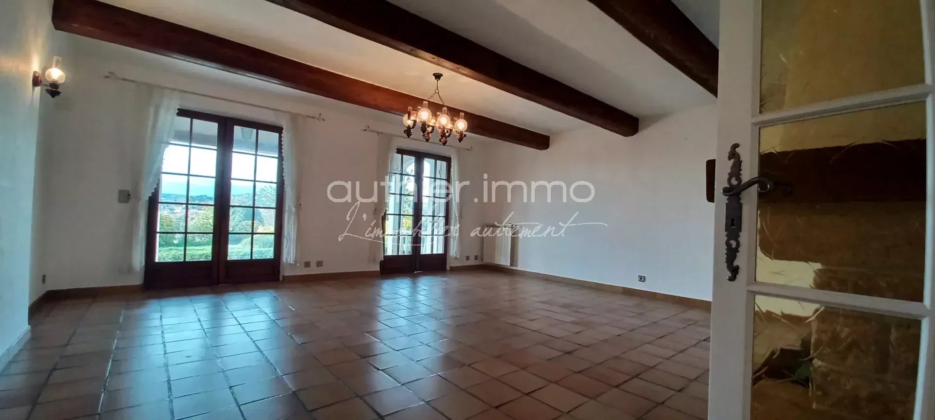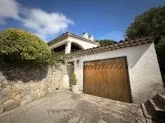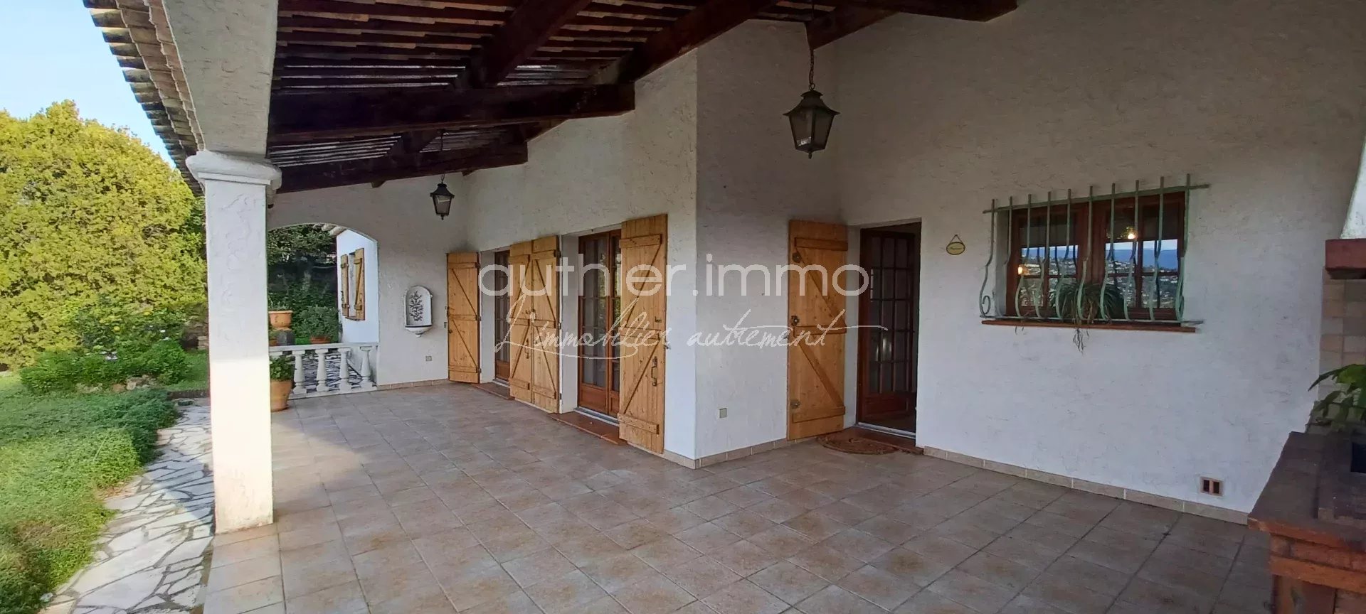 Profitant d'une vue dégagée sur la colline du vieux village, villa de construction traditionnelle de 140 m² offrant un vaste séjour avec cheminée donnant sur terrasse couverte, spacieuse cuisine avec cellier, 2 chambres avec salle de bains, toilettes, à l'étage chambre de maitre avec terrasse tropézienne. Beau terrain complanté de 1.583 m², avec arbres fruitiers, garage et abri voitures A proximité immédiate de toutes commodités A voir absolument !