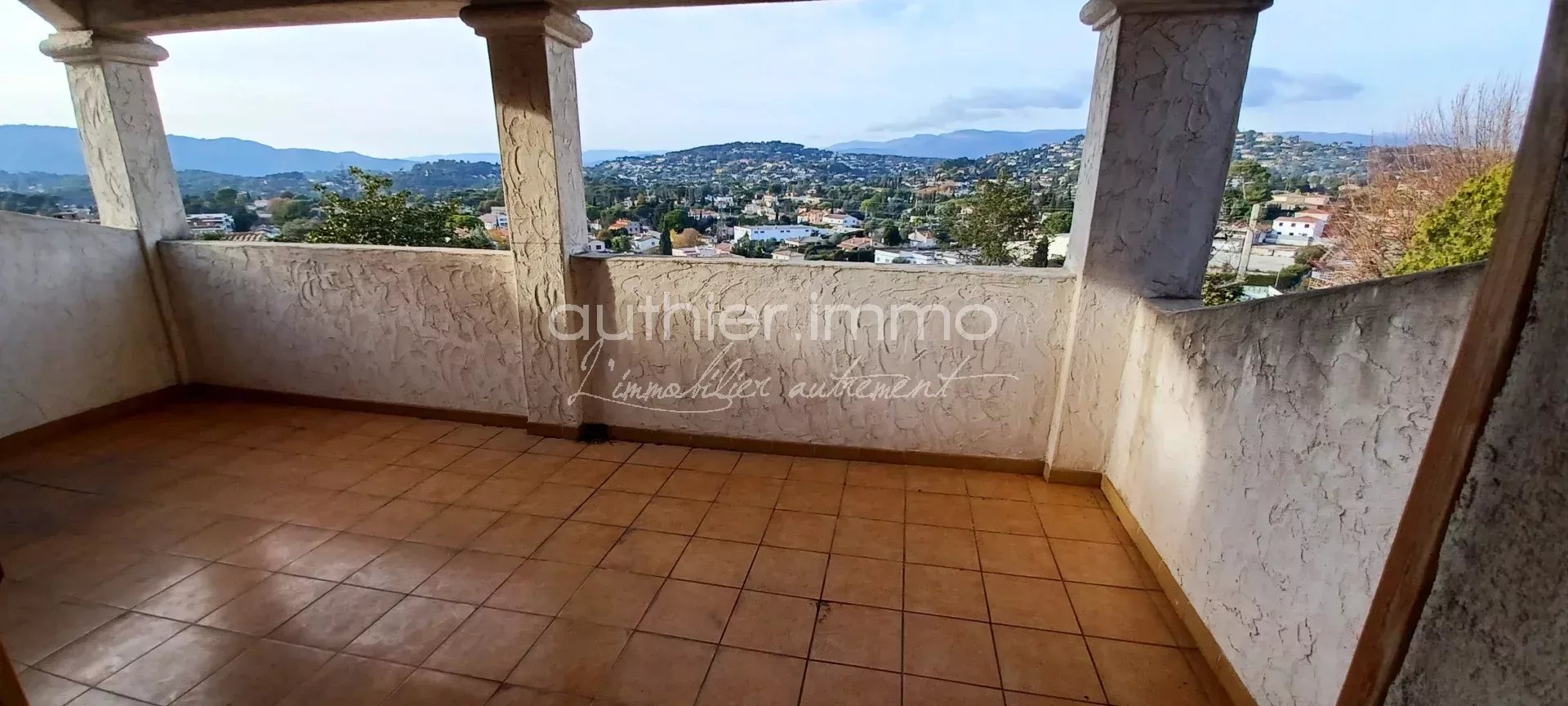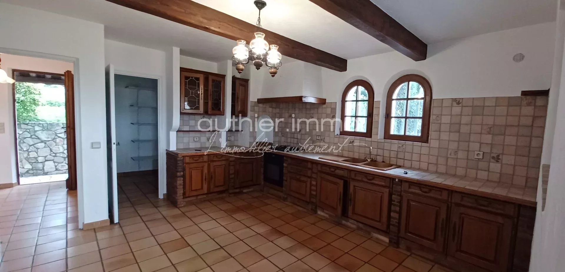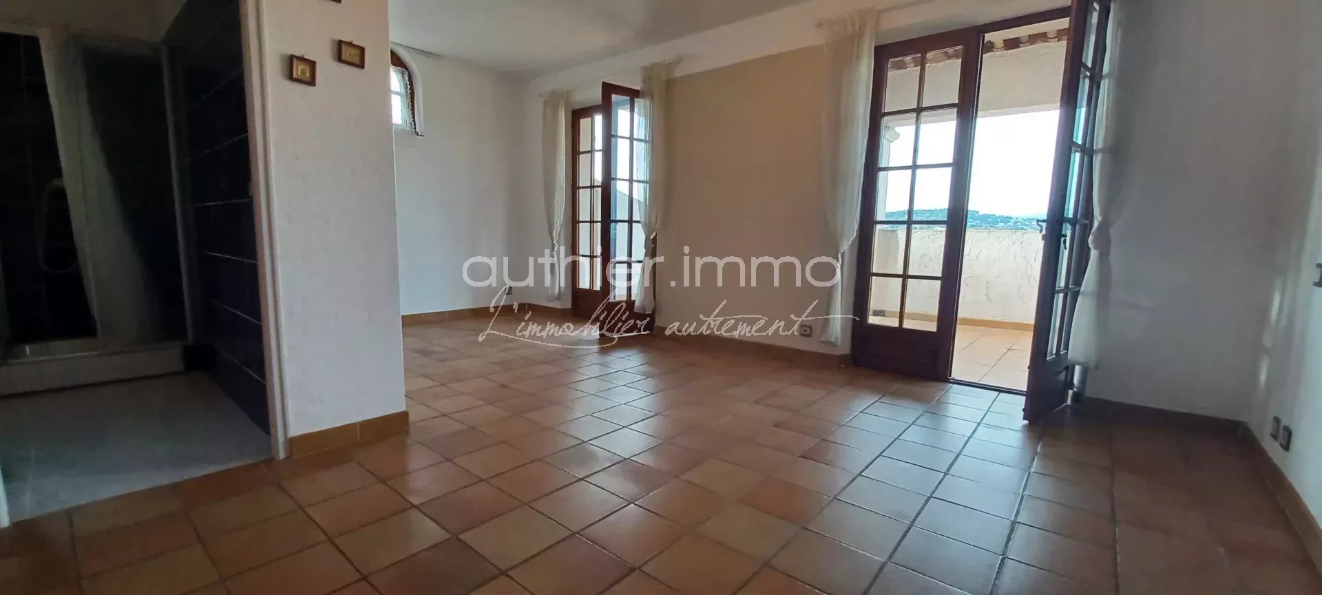 Profitant d'une vue dégagée sur la colline du vieux village, villa de construction traditionnelle de 140 m² offrant un vaste séjour avec cheminée donnant sur terrasse couverte, spacieuse cuisine avec cellier, 2 chambres avec salle de bains, toilettes, à l'étage chambre de maitre avec terrasse tropézienne. Beau terrain complanté de 1.583 m², avec arbres fruitiers, garage et abri voitures A proximité immédiate de toutes commodités A voir absolument !