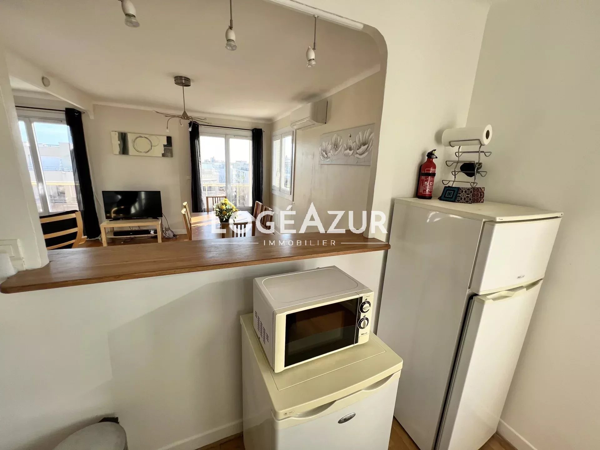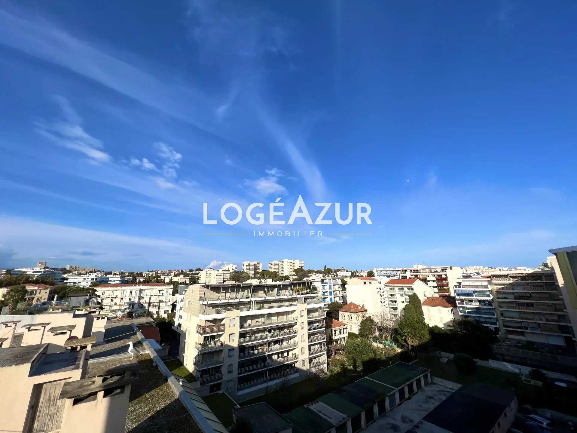 A due passi dalle spiagge di Juan les Pins, questo spazioso appartamento all'ultimo piano offre un ampio soggiorno con cucina a vista arredata e attrezzata, 2 camere da letto, bagno con doccia e servizi igienici separati. Grande terrazza con vista aperta.