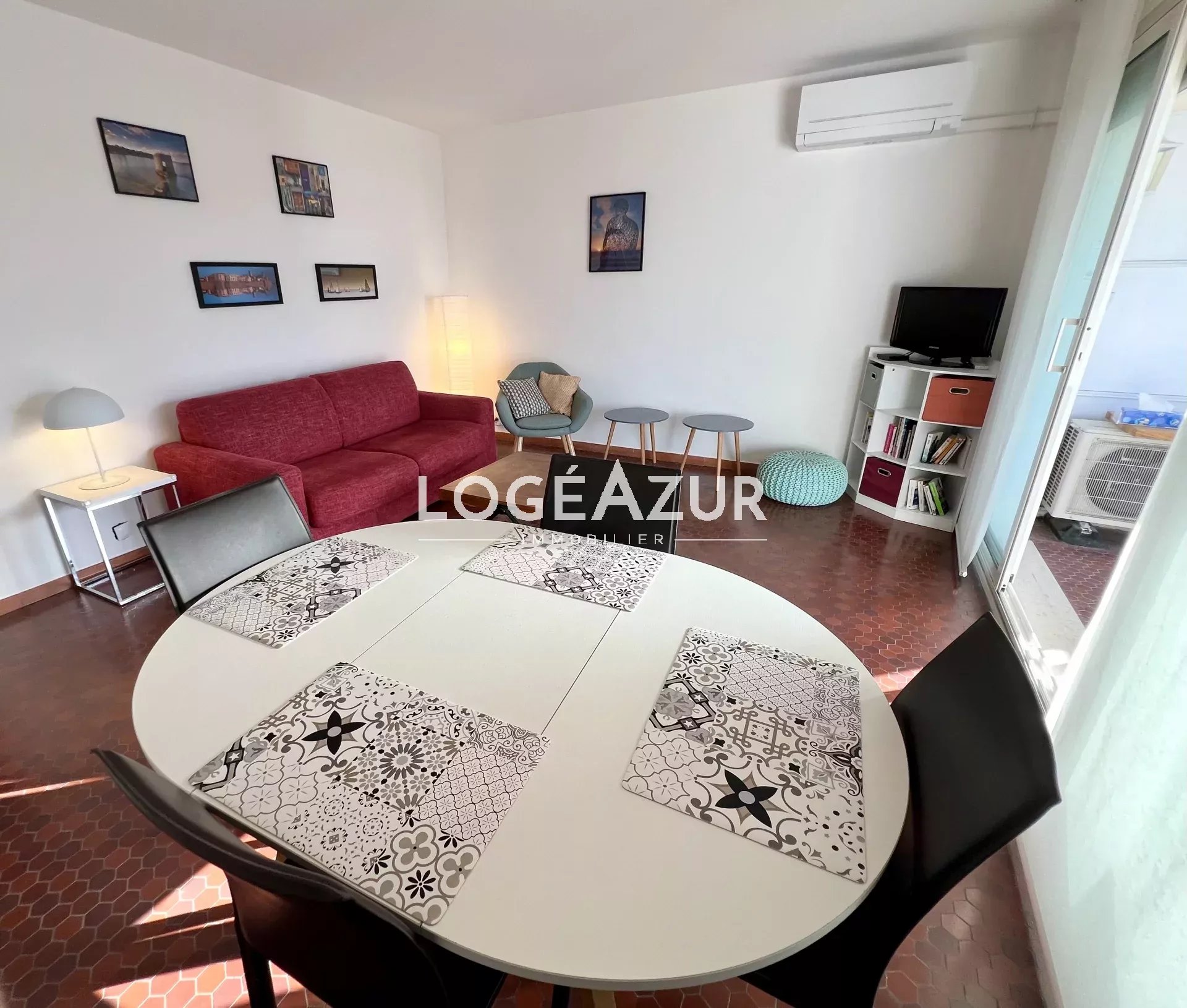 Ce logement familial est proche de tous les sites et commodités. Dans une résidence arborée avec piscine et parking visiteur, profitez de cet appartement composé d'une entrée avec placards, d'un séjour (canapé lit 2 personnes) avec accès sur une grande terrasse, cuisine équipée avec balcon, une chambre (lit double) avec penderie, salle de douche et toilettes séparés. Point de départ idéal pour visiter la côte d'azur, vous aurez à proximité les commerces et axes routiers.