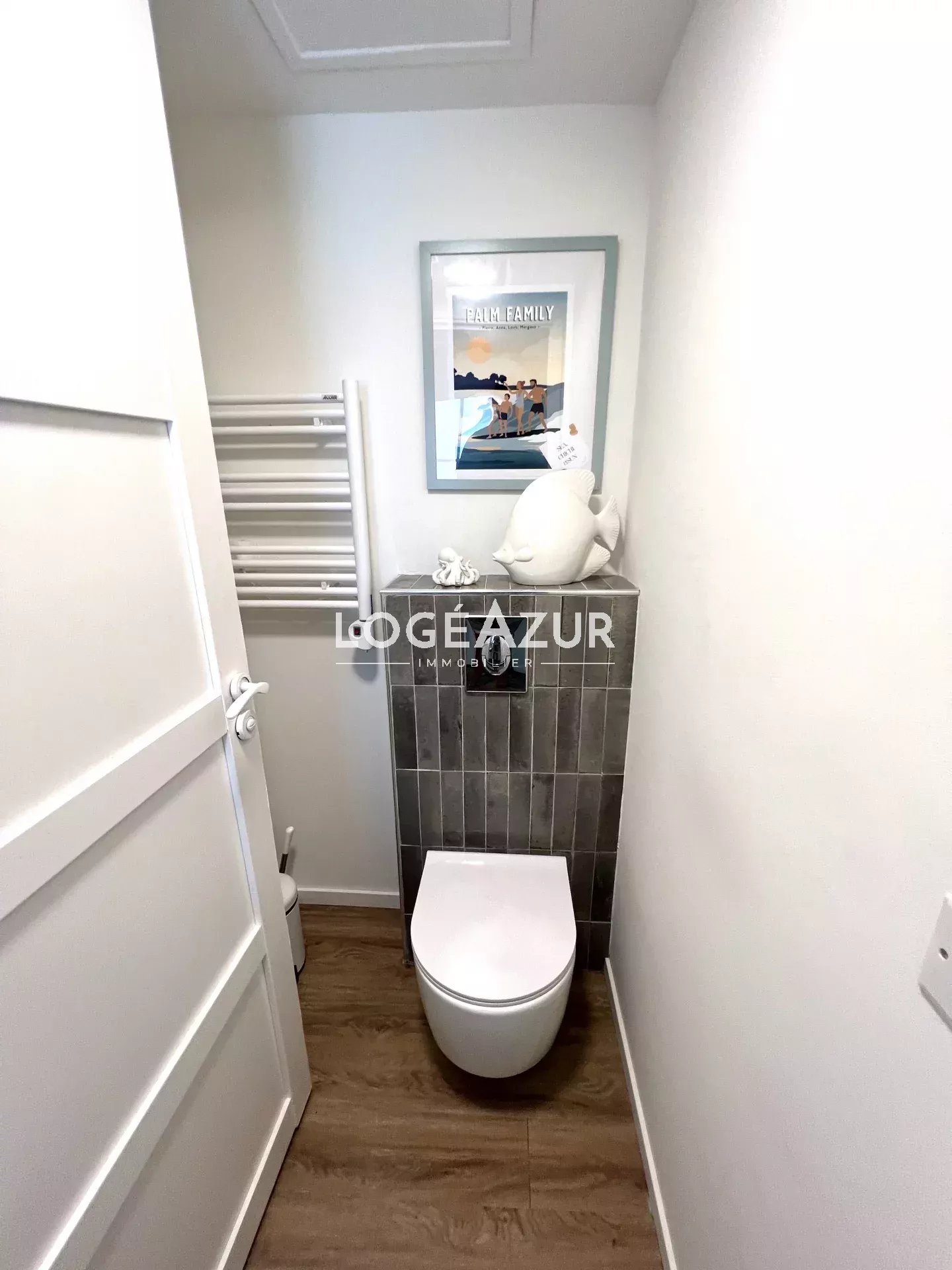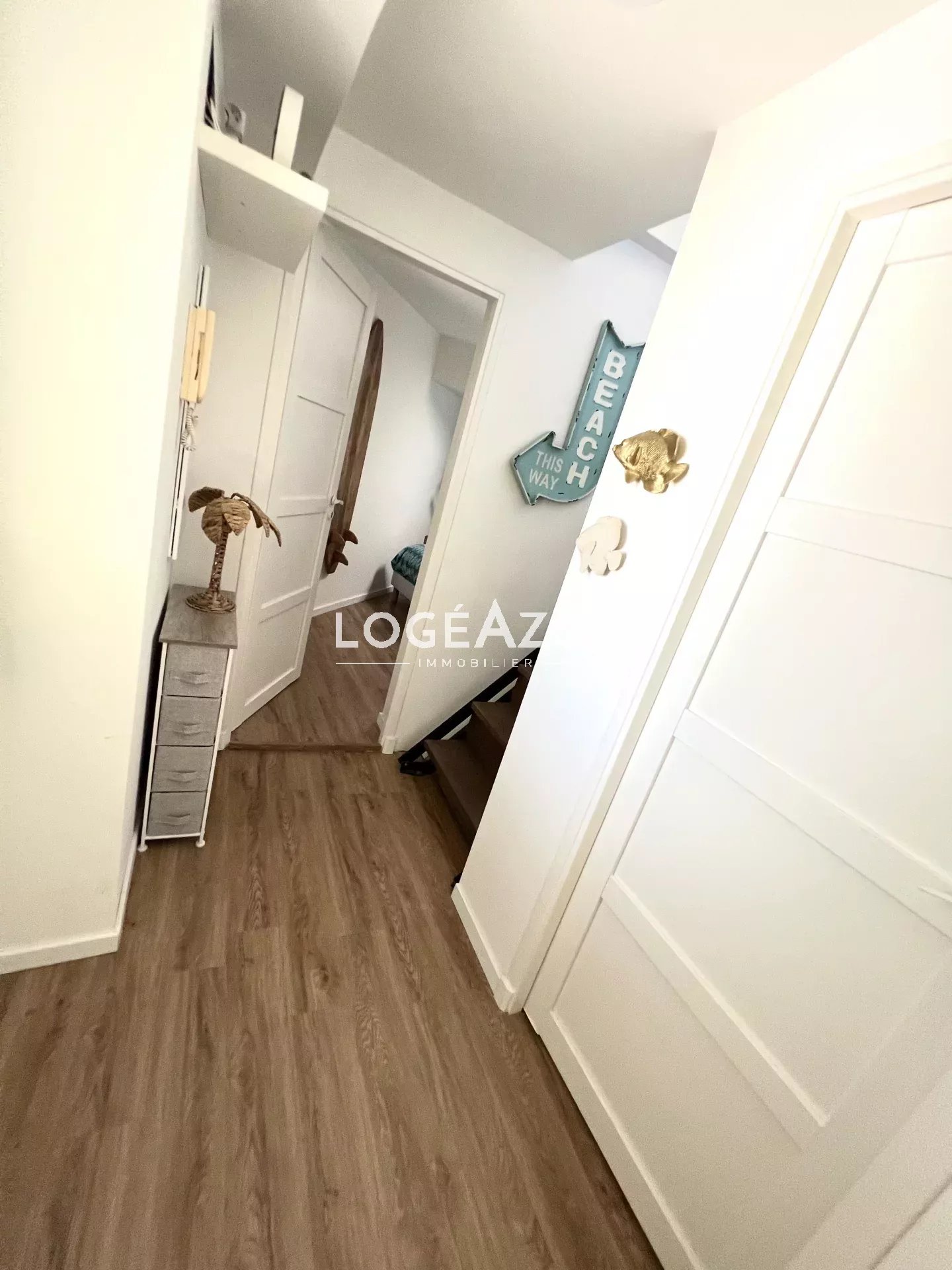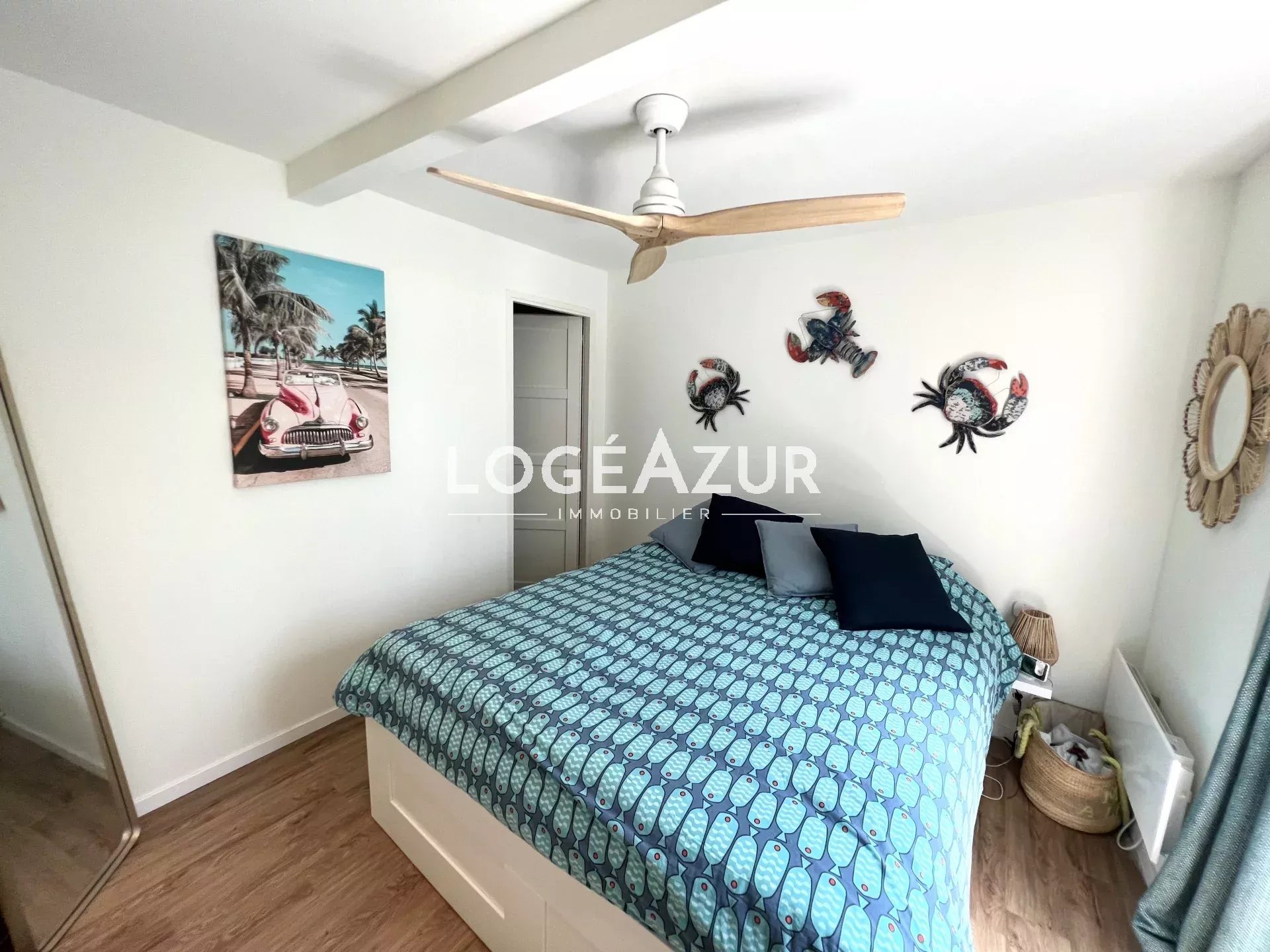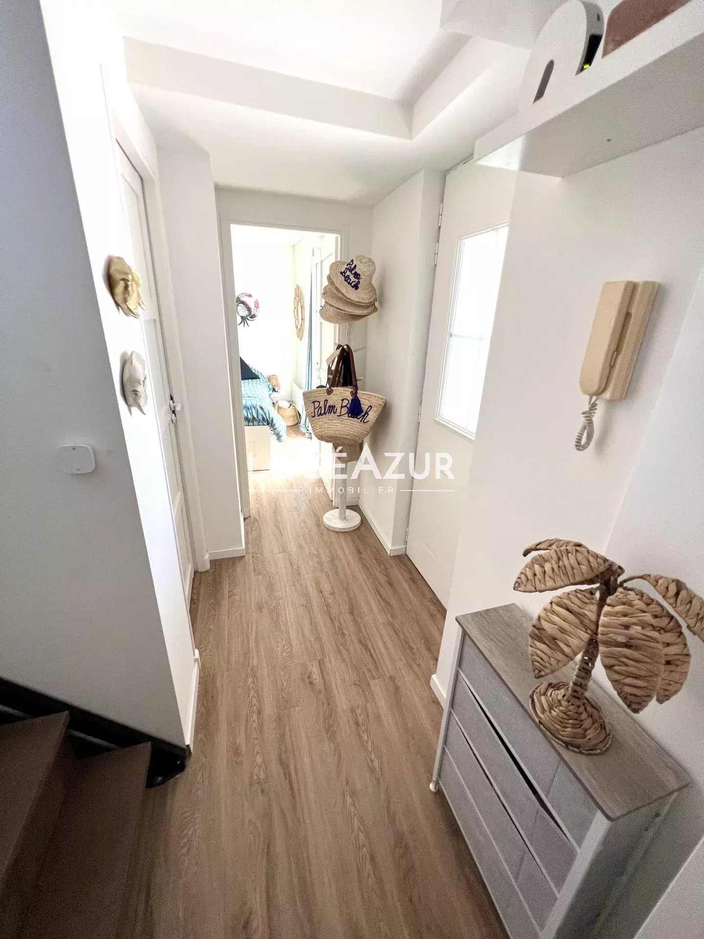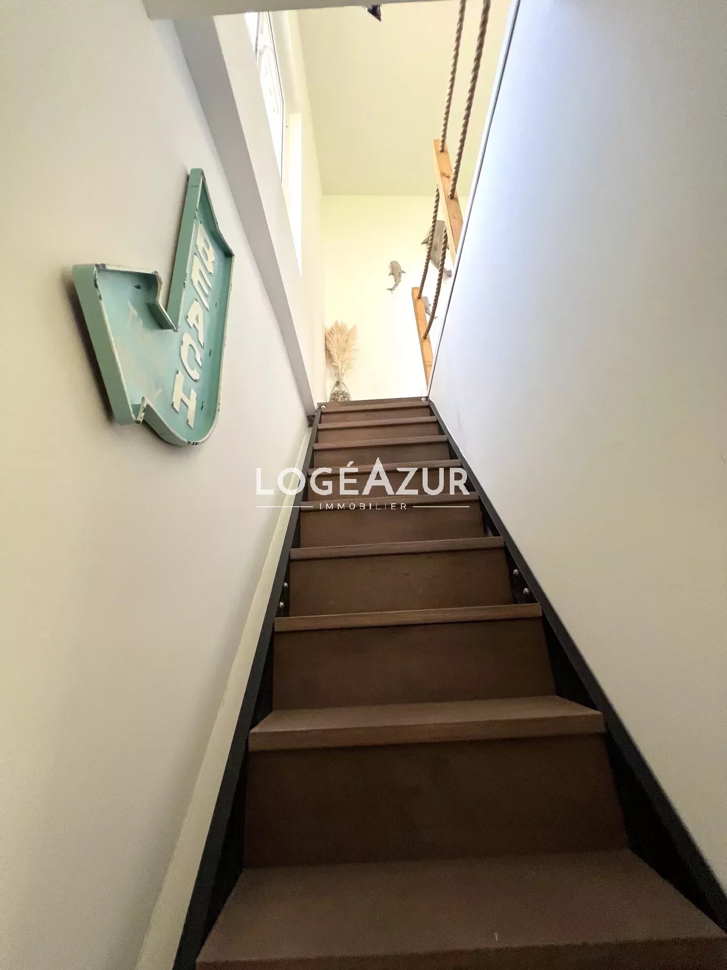 Unique sur le secteur de GOLFE-JUAN face à la mer, maison charmante décorée avec goût, composé à l'étage d'un séjour avec cuisine ouverte, au rez-de-chaussée 2 chambres, 2 salles de douche et toilettes. Terrasse privatif de 7m² environ. Idéal pour profiter des plages de sables juste en face et des longues soirées d'été.