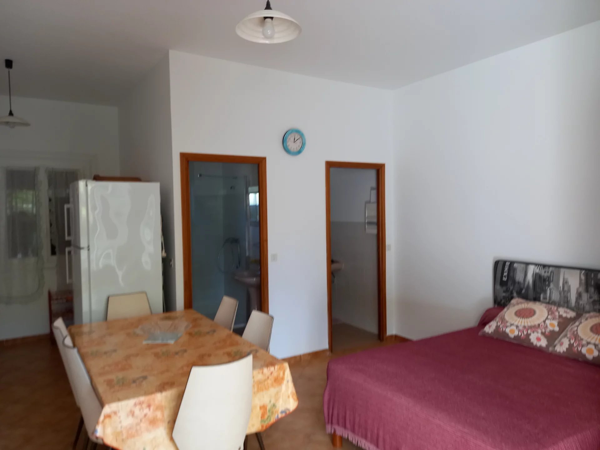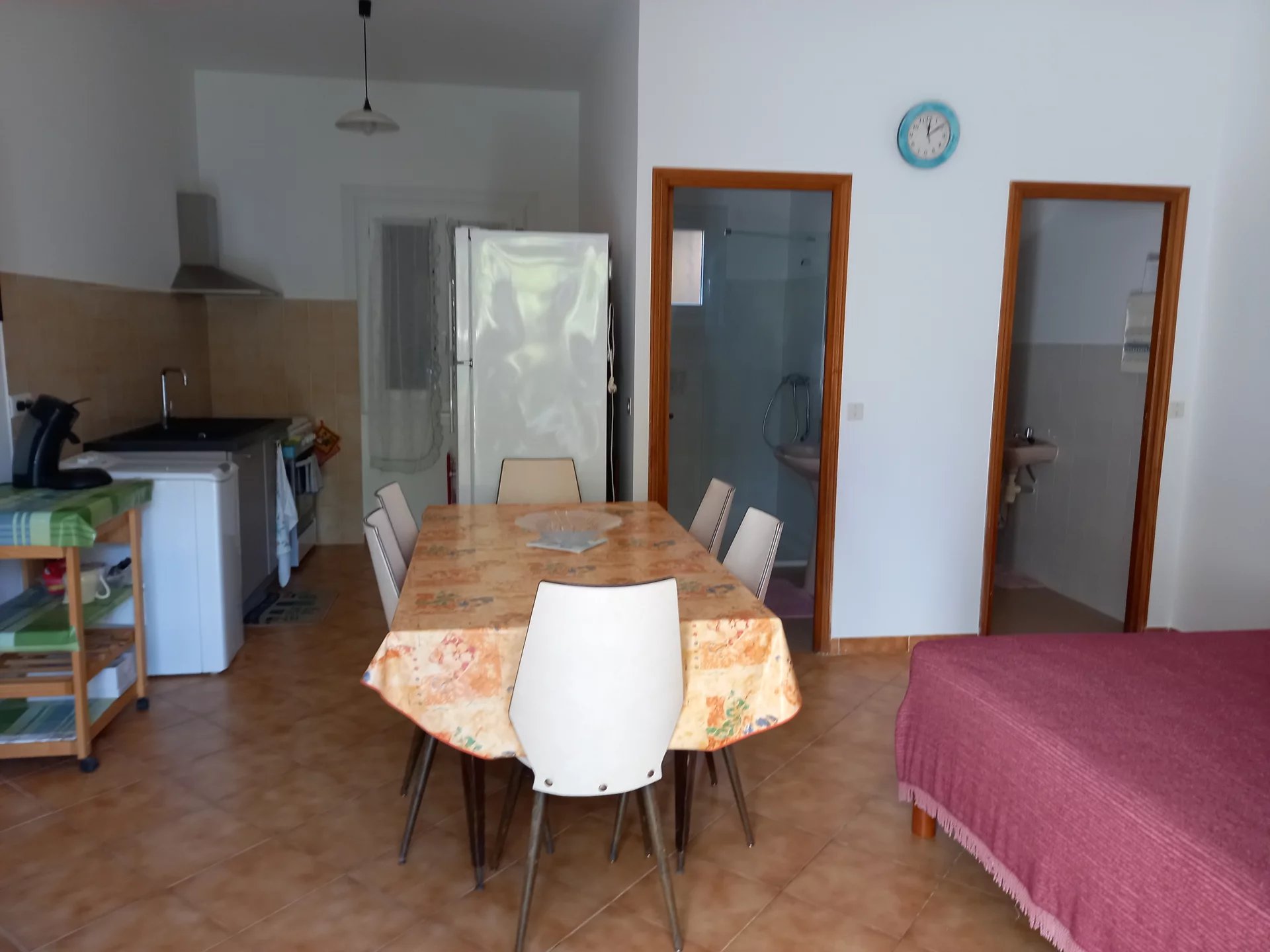 Rez-de-chaussée de villa, studio avec coin cuisine équipé, une salle d'eau, terrasse, jardin et parking.