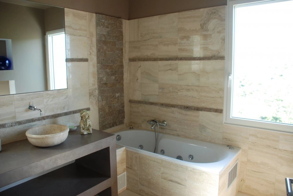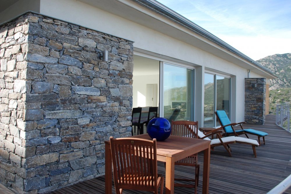 Une villa contemporaine avec piscine, composée: au rez-de-chaussée,deux chambres, une salle de bains,à l'étage: un salon avec terrasse, un séjour coin cuisine équipée, un cellier, deux chambres, une salle d'eau et une salle de bains,et à l'extérieur une dépendance composée d'une chambre avec salle d'eau. Garage, jardinet et piscine.