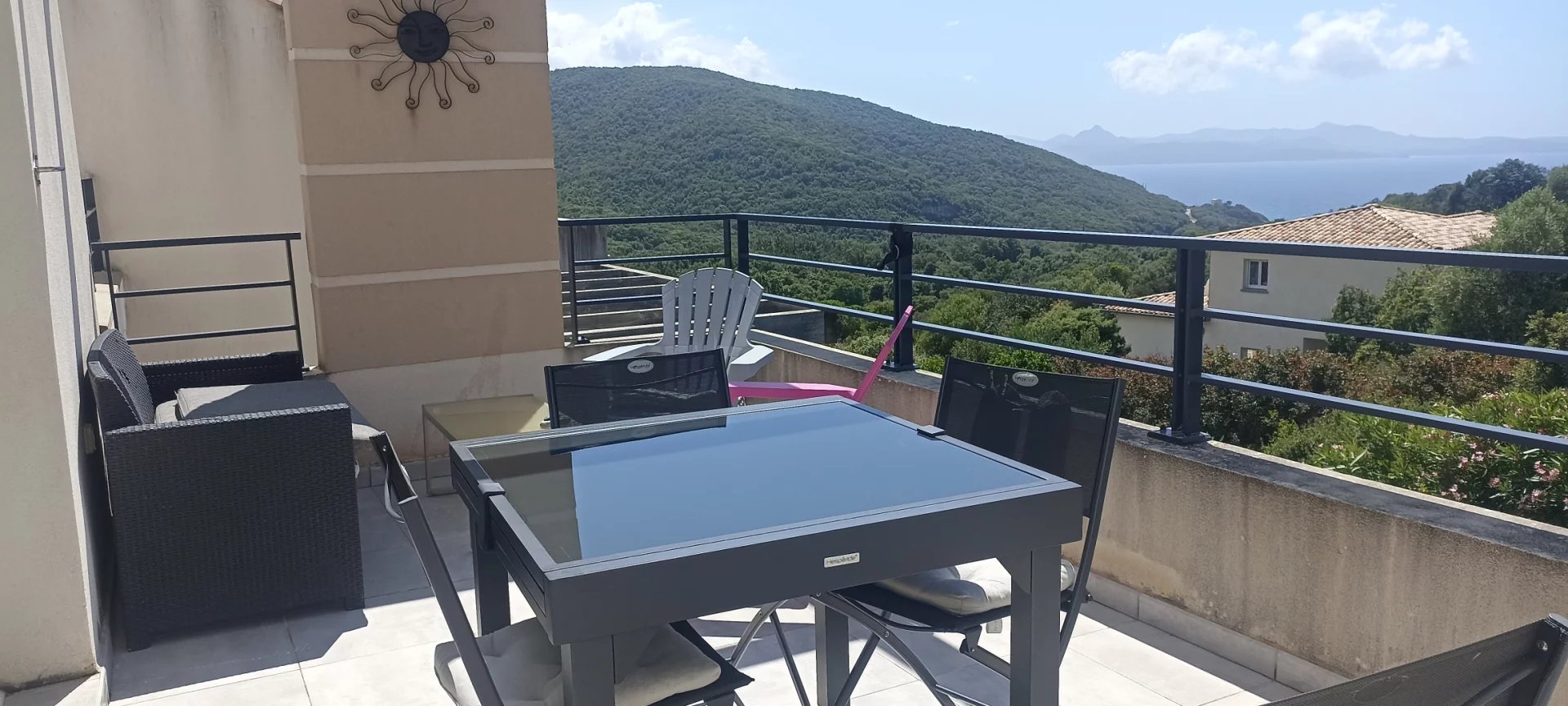 Marine de FARINOLE, dans une résidence récente, un appartement climatisé situé au 1er étage, composé d'un séjour coin cuisine équipé, une chambre, une salle d'eau, terrasse vue mer avec cellier et parking.