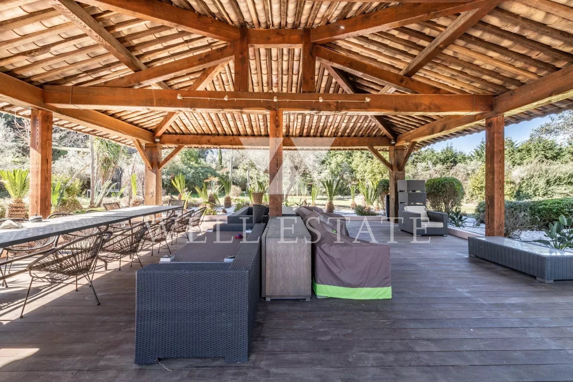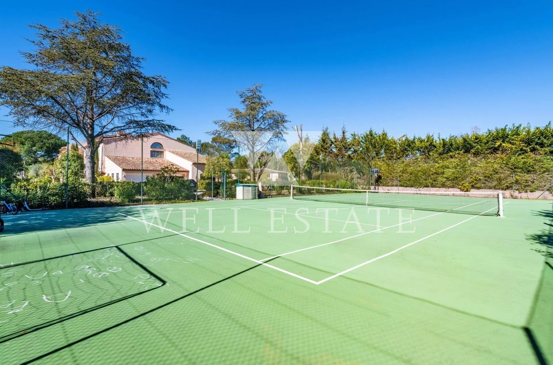 Majestueuse propriété dans l’un des plus beaux secteurs de Mougins, dans un domaine fermé au calme absolu . Maison principale de 11 pièces, de plus de 600 m2 habitables, composée d'un salon, d'une salle de jeux, d'une grande cuisine, et de 5 chambres en suite. Appartement de gardien indépendant et maison d’invités, le tout sur un superbe parc arboré de 8000 m2, aire de jeux pour enfants, deux piscines, pool-house, sauna, terrain de tennis, garages