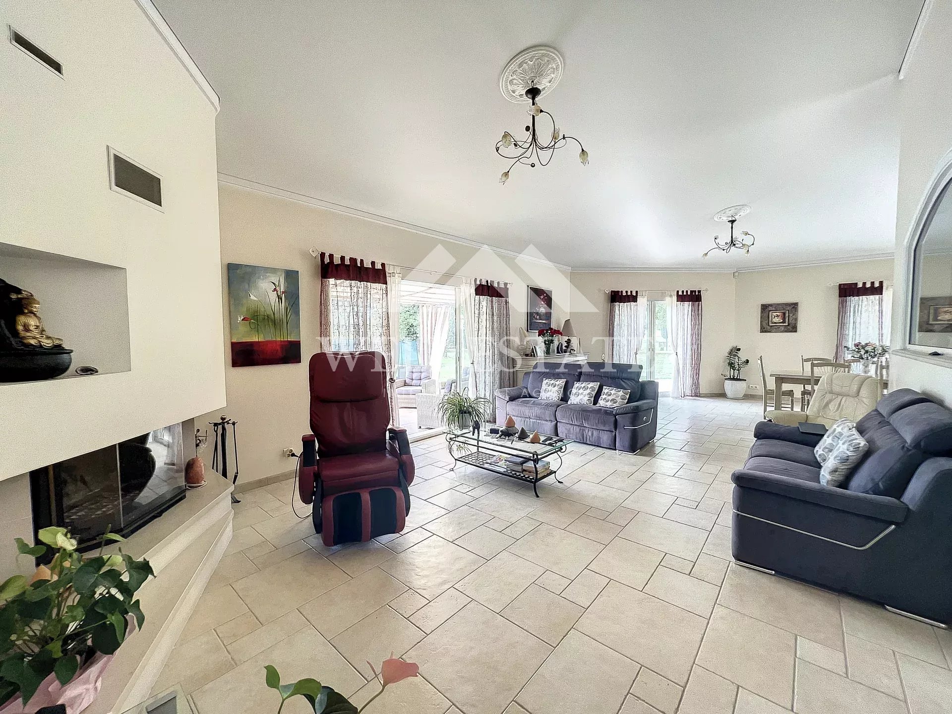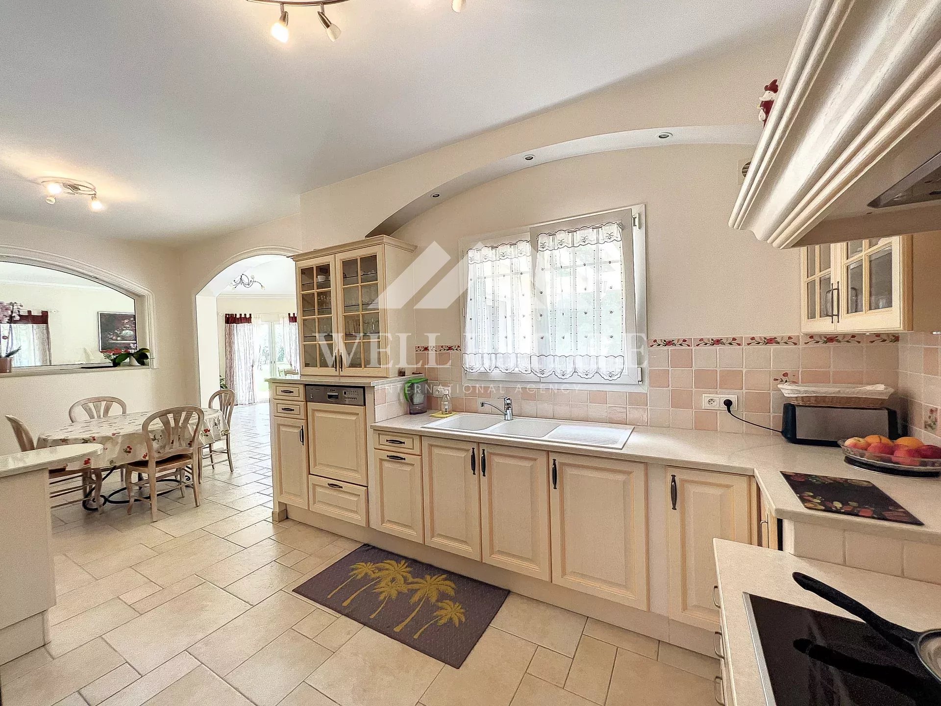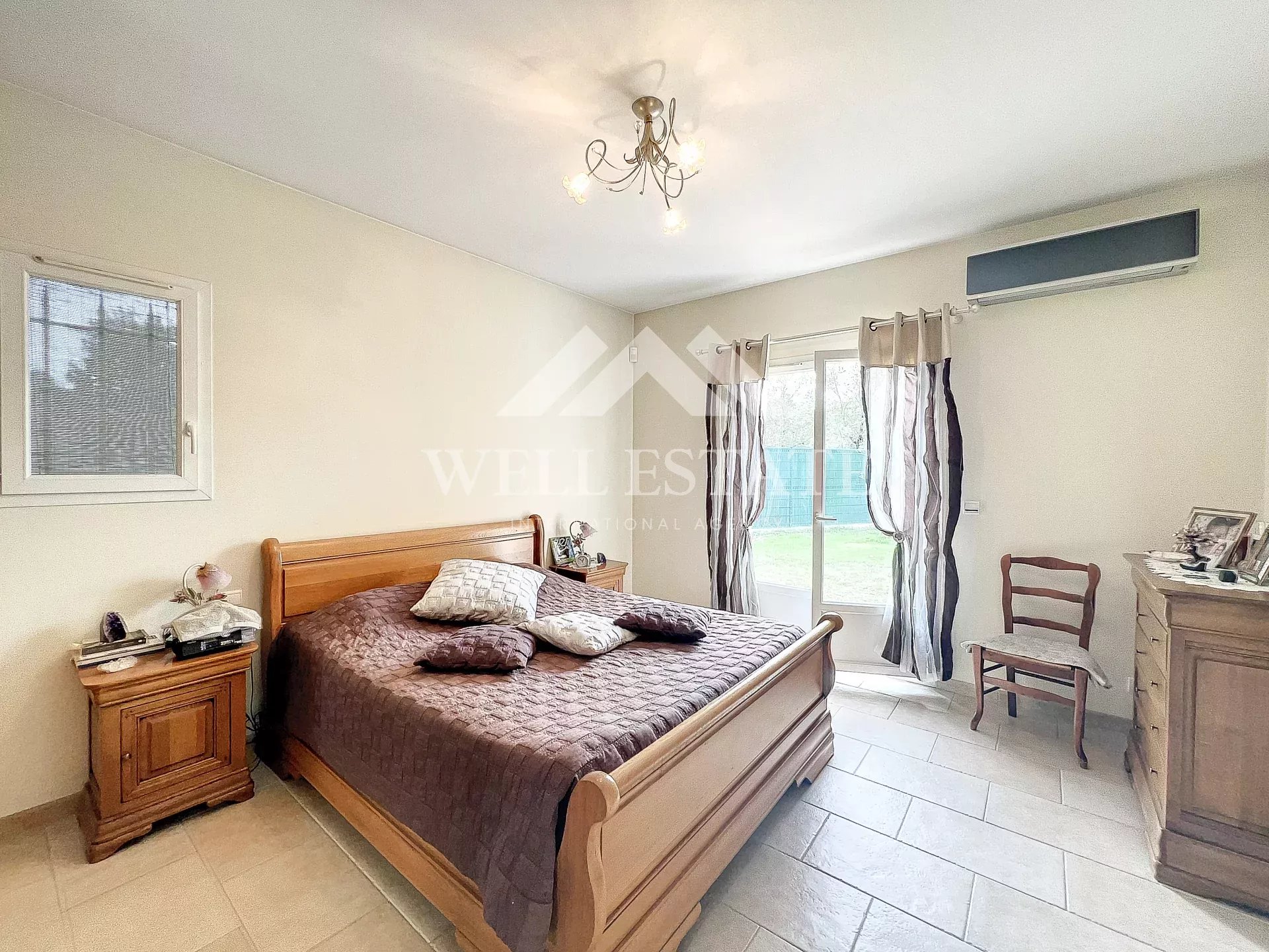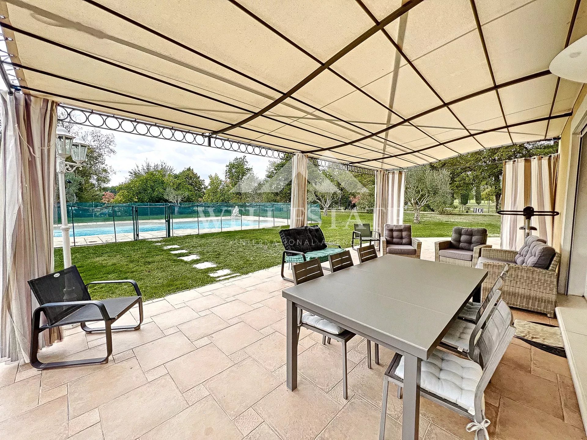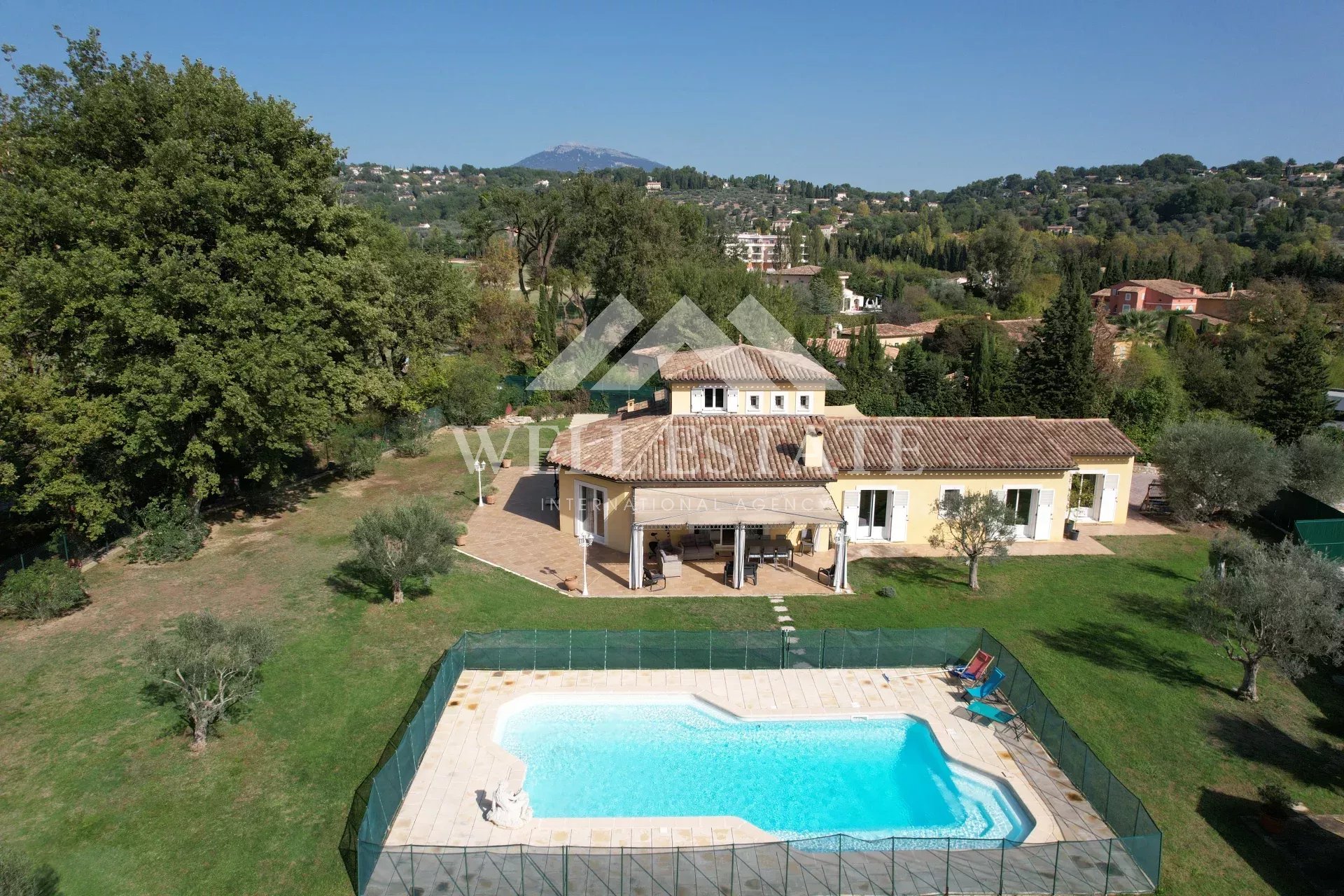 Opio/Chateauneuf - Belle Villa d’une superficie de 250m², au calme absolu, d’une superficie de 250m² se situant dans un quartier résidentiel recherché, proche de du golf de la Grande Bastide. Situé sur un jardin plat de 2.667m² avec piscine(13.5m6m). Cette superbe villa offre de généreux volumes dont un spacieux salon, salle à manger, cuisine ouverte de 72m². La partie nuit du Rez de jardin est composée, d'une suite parentale de 25m² ainsi que deux chambres et une de salle d'eau de 8.43m²,d'un wc individuelle, d'une buanderie. Au premier étage, un espace de 35m² composé d'une chambre de maitre avec salle de bain et dressing. En outre vous bénéficiez d'un garage aménagé de 40m² avec point d'eau, climatisation dans les 4 chambres, d'une cheminée avec insert dans le séjour, chauffage au sol, visiophone, vidéophonie. Vous avez aussi la possibilité d'un agrandissement de partie à vivre de la villa de 35m². La piscine est au sel et hydrolyse de dimension :13m sur 6m. A découvrir rapidement..
