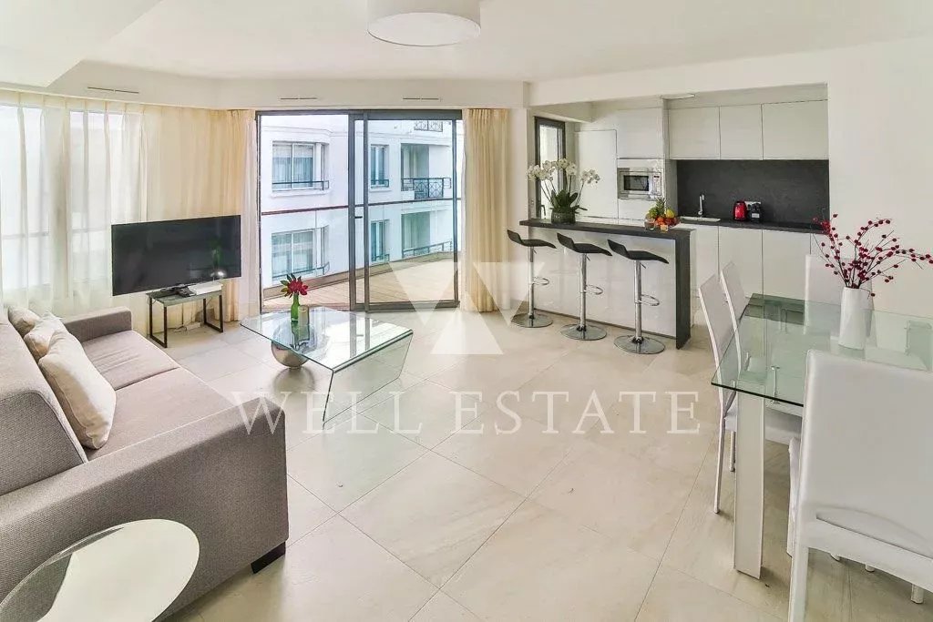 Situato di fronte al Palais des Festivals con vista dominante sui gradini e la Croisette, molto bello appartamento di 70 m2 piano alto (6 °) nuovissimi ed attrezzati. Offre accesso a piedi alle spiagge, ristoranti, negozi ... e permette di essere al centro di tutti gli eventi, congressi ...! L'appartamento: Comprende 2 camere da letto con bagno e bagno, soggiorno, cucina e bagno per gli ospiti. Vanta una grande terrazza e un contorno di mare. Posizionare un parcheggio semplice nel seminterrato. Posti letto In totale, ha una capacità di 6 persone con: - Master camera da letto: letto 160x190 - Camera 2: divano letto 140x190 - Soggiorno: divano letto 160x190