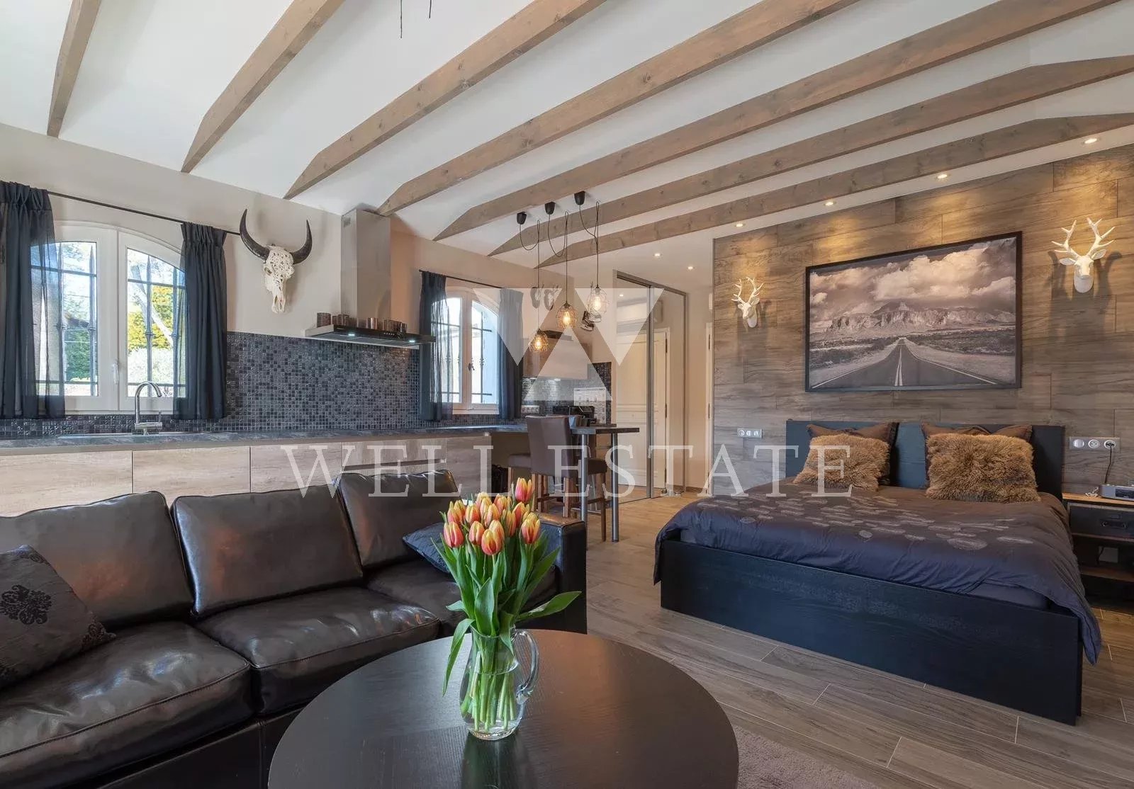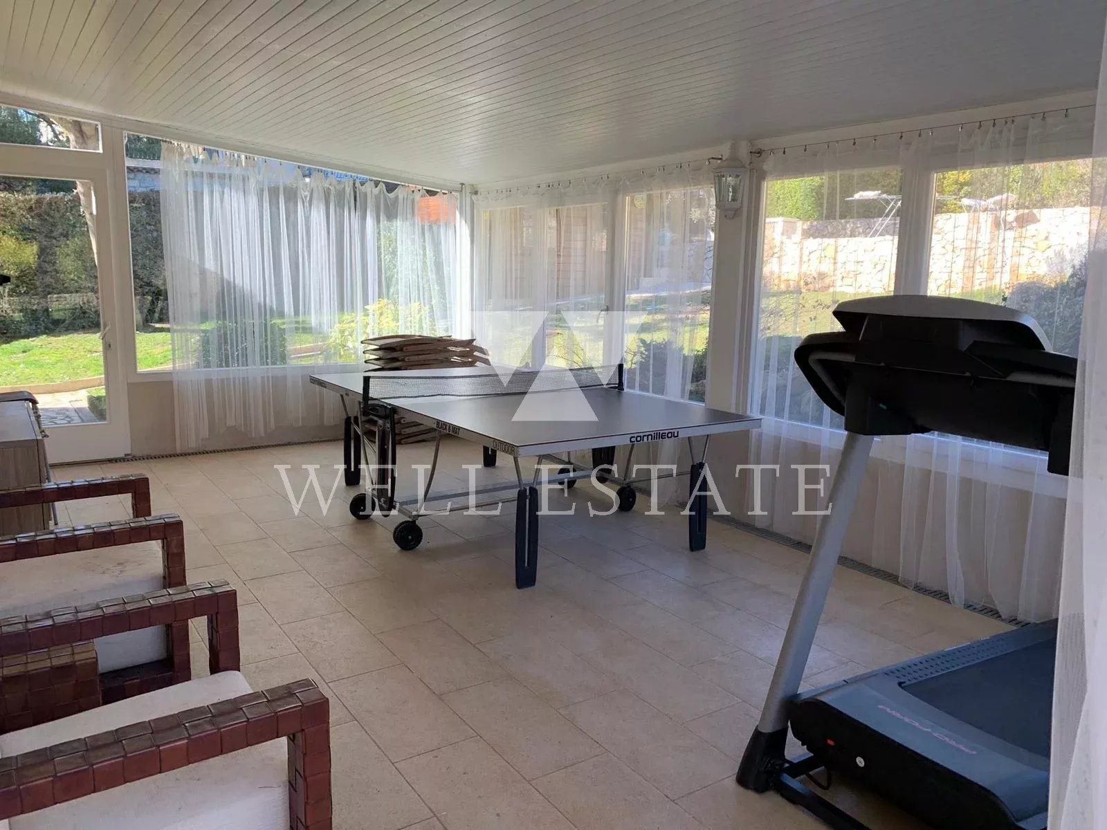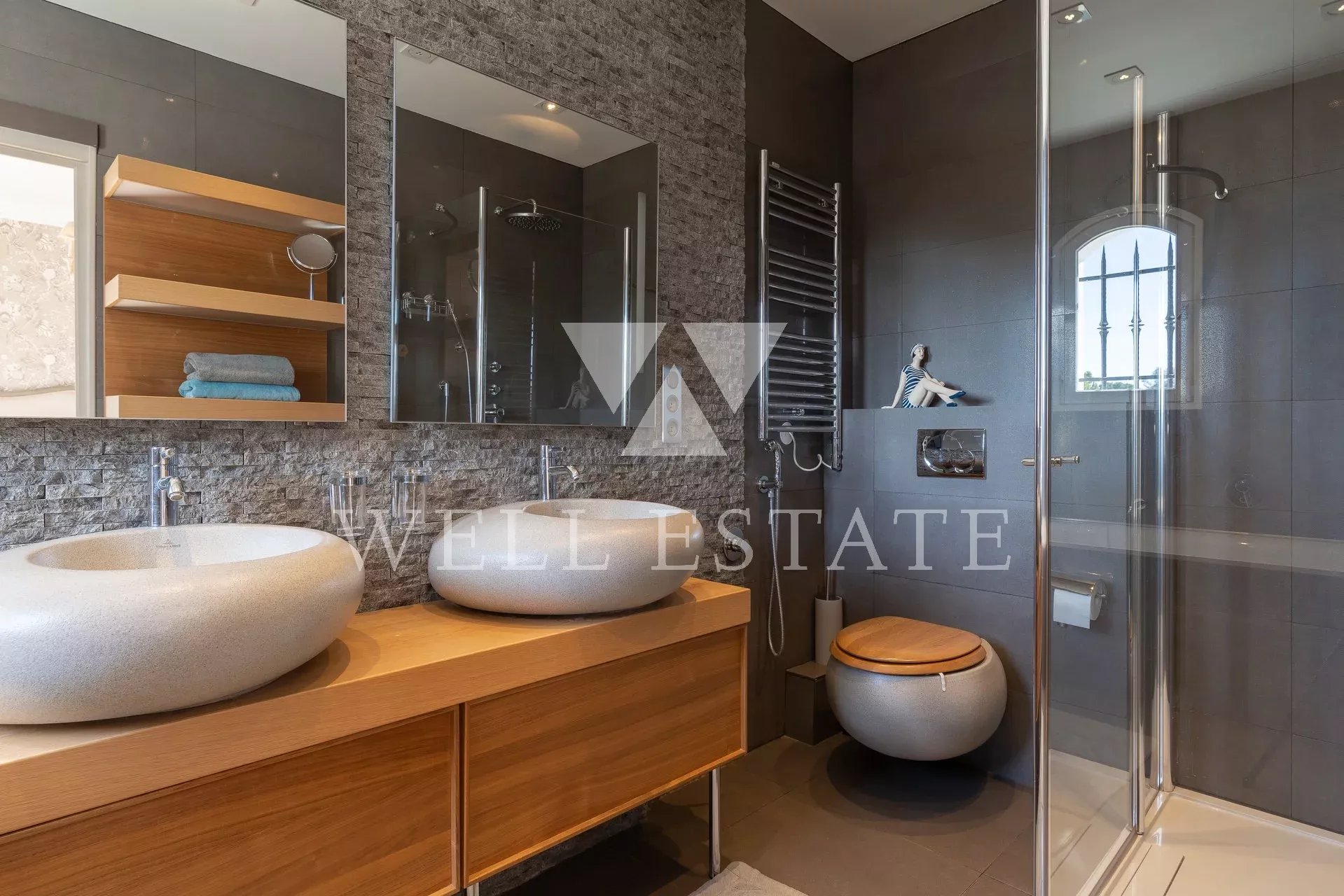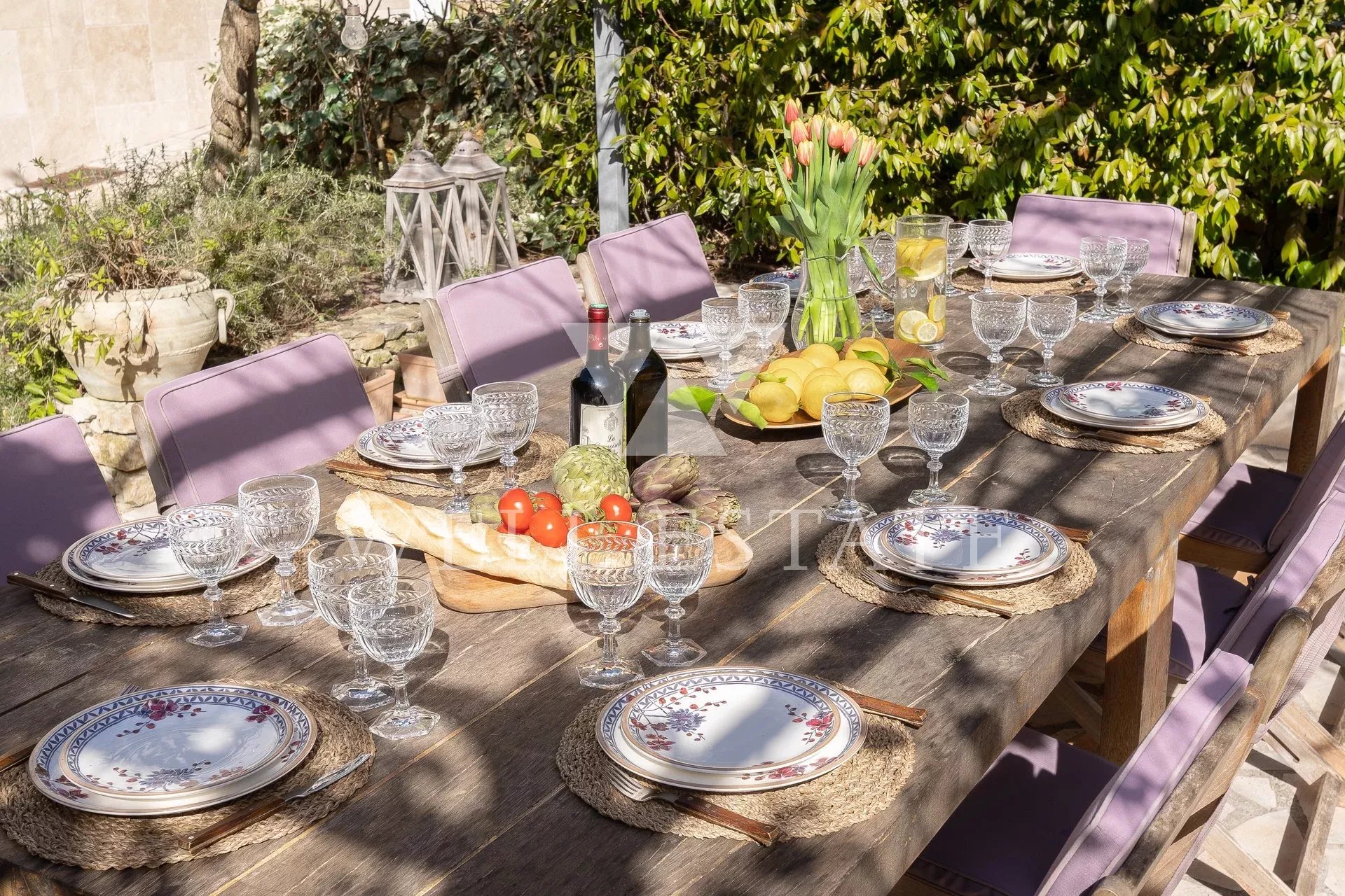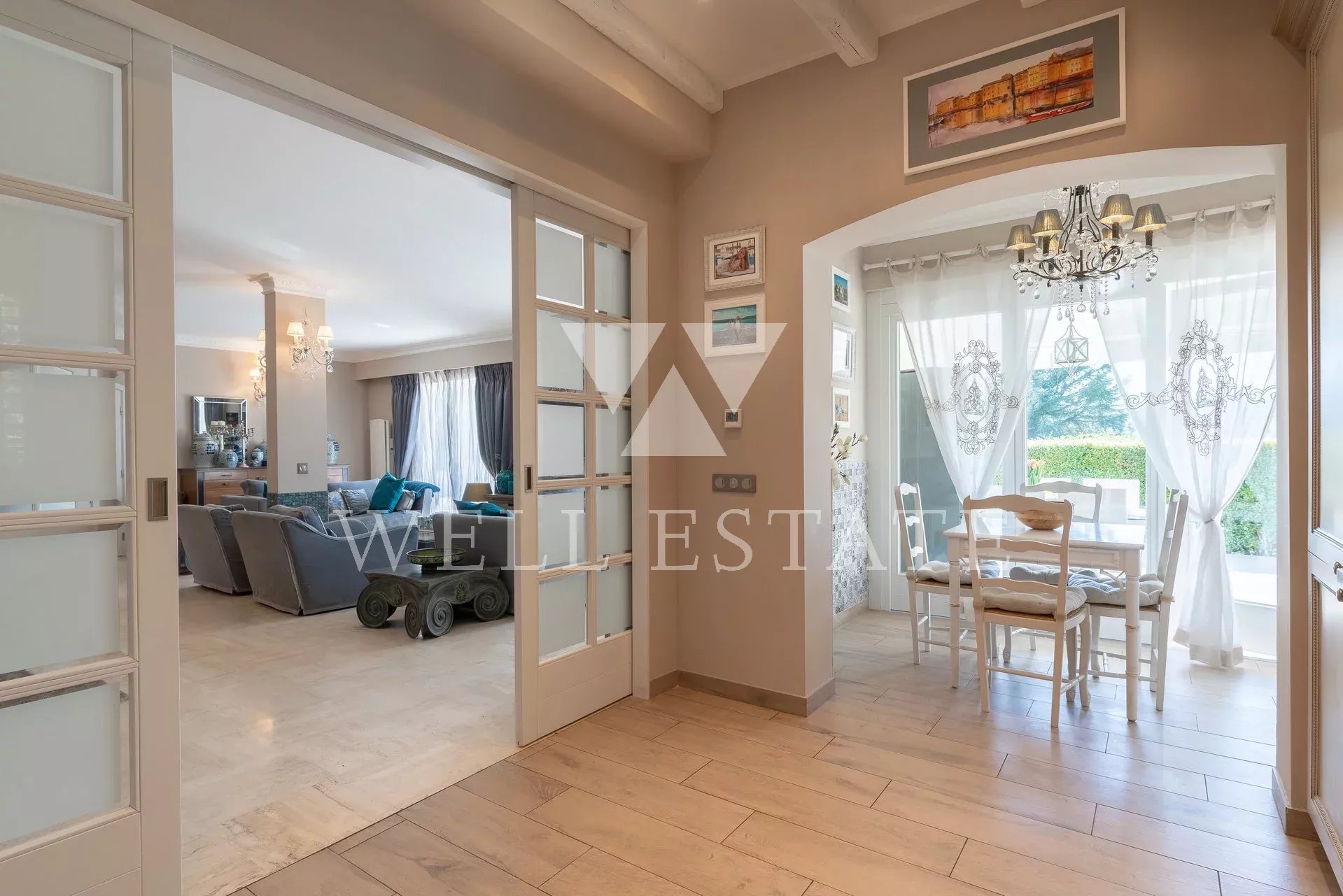 Dans un environnement splendide sur le terrain verdoyant de 2000m, propriété d'exception de 300m2. La villa est composée d'un majestueux séjour, cuisine indépendante équipée, salle à manger donnant sur la terrasse ensoleillée, WC invité. A l’étage: 3 chambres avec leurs salles de bains privatives. 2 appartements indépendantes avec chacune ca propre cuisine et sa salle de bains. Plusieurs terrasses dont une avec le tapis de course et la table de ping-pong ombragé par une belle pergola. Emplacement idéal, près du commerce, boulangerie etc. Idéal pour 8-10 personnes.