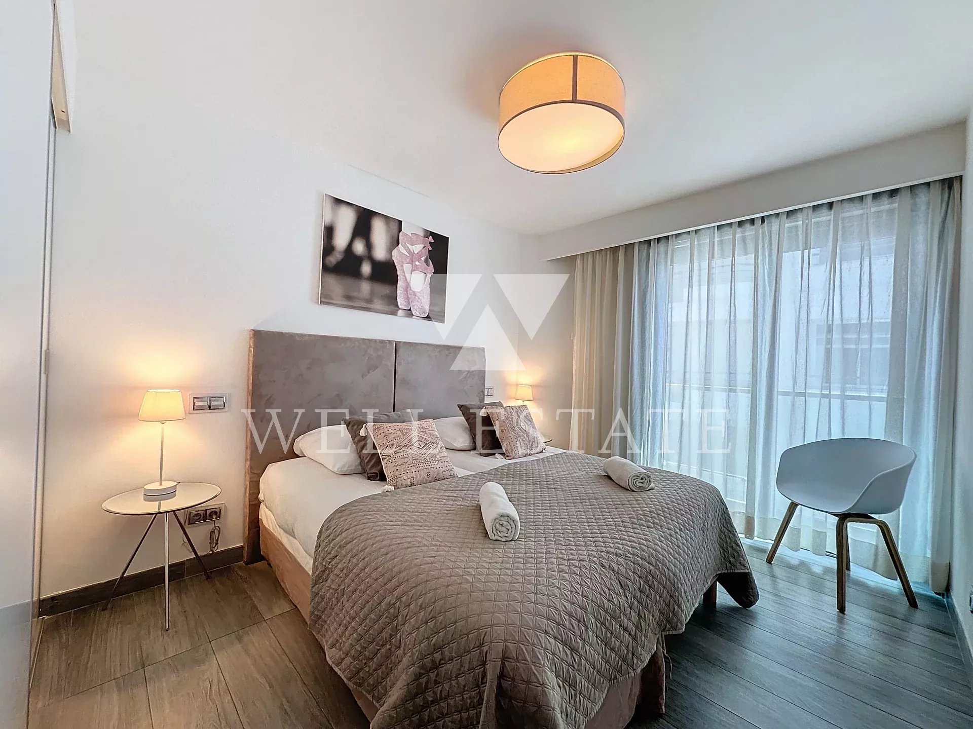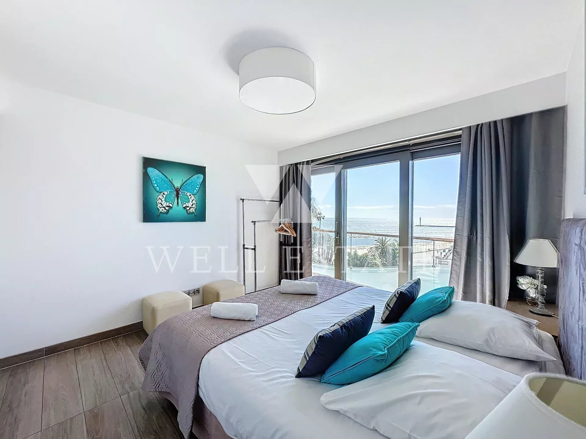 Situato di fronte al Palais des Festivals con vista dominante sui gradini e la Croisette, bellissimo appartamento di 115 m2, piano alto (6 °) nuovo di zecca e attrezzati. Offre accesso a piedi alle spiagge, ristoranti, negozi ... e permette di essere al centro di tutti gli eventi, congressi ...! L'appartamento: Dispone di 3 camere con bagno e di un bagno, soggiorno, cucina, wc ospiti, spogliatoio. Ha un piccolo balcone e vista panoramica sul mare. 2 posti auto nel seminterrato. In totale, ha una capacità di 6 persone. Posti letto: - Master: 1 letto matrimoniale 160x190 - Camere di ospiti: 2 letti 90x190