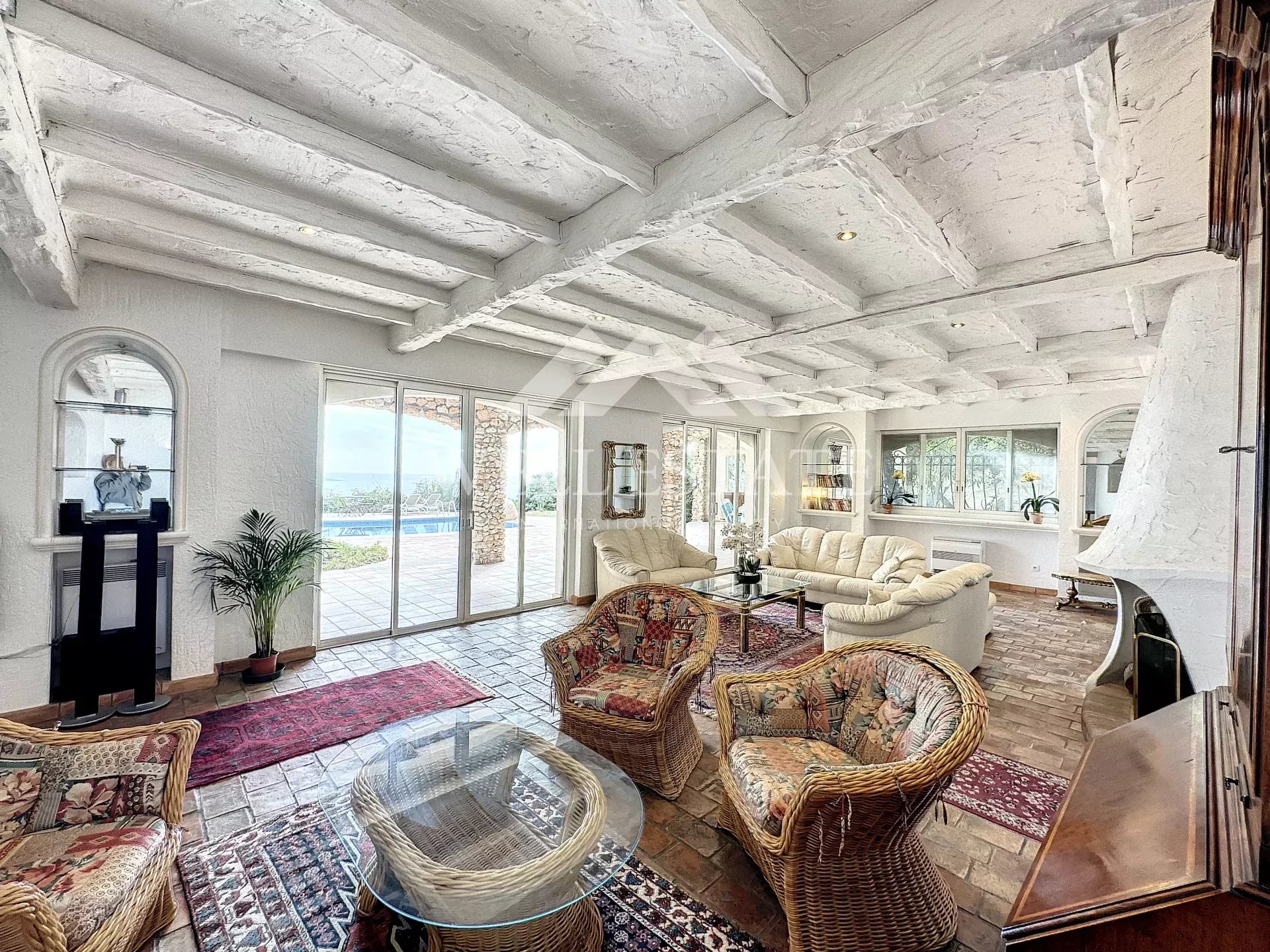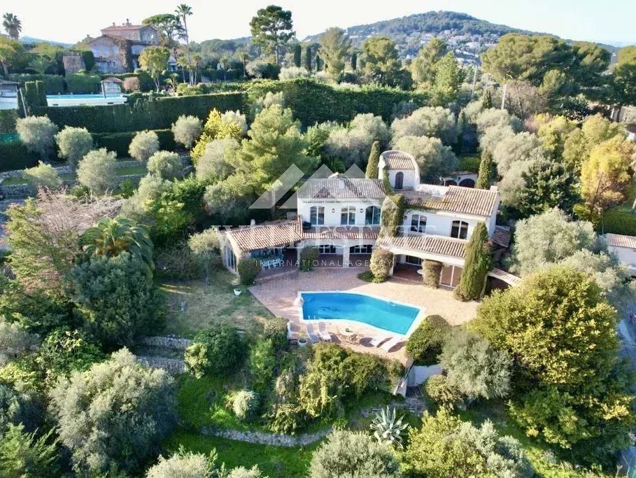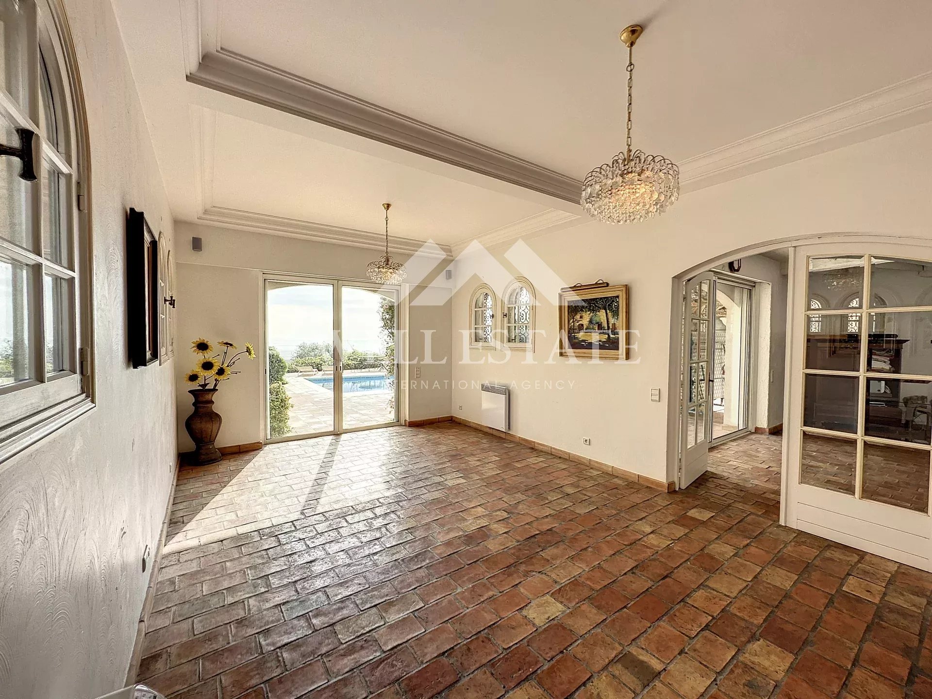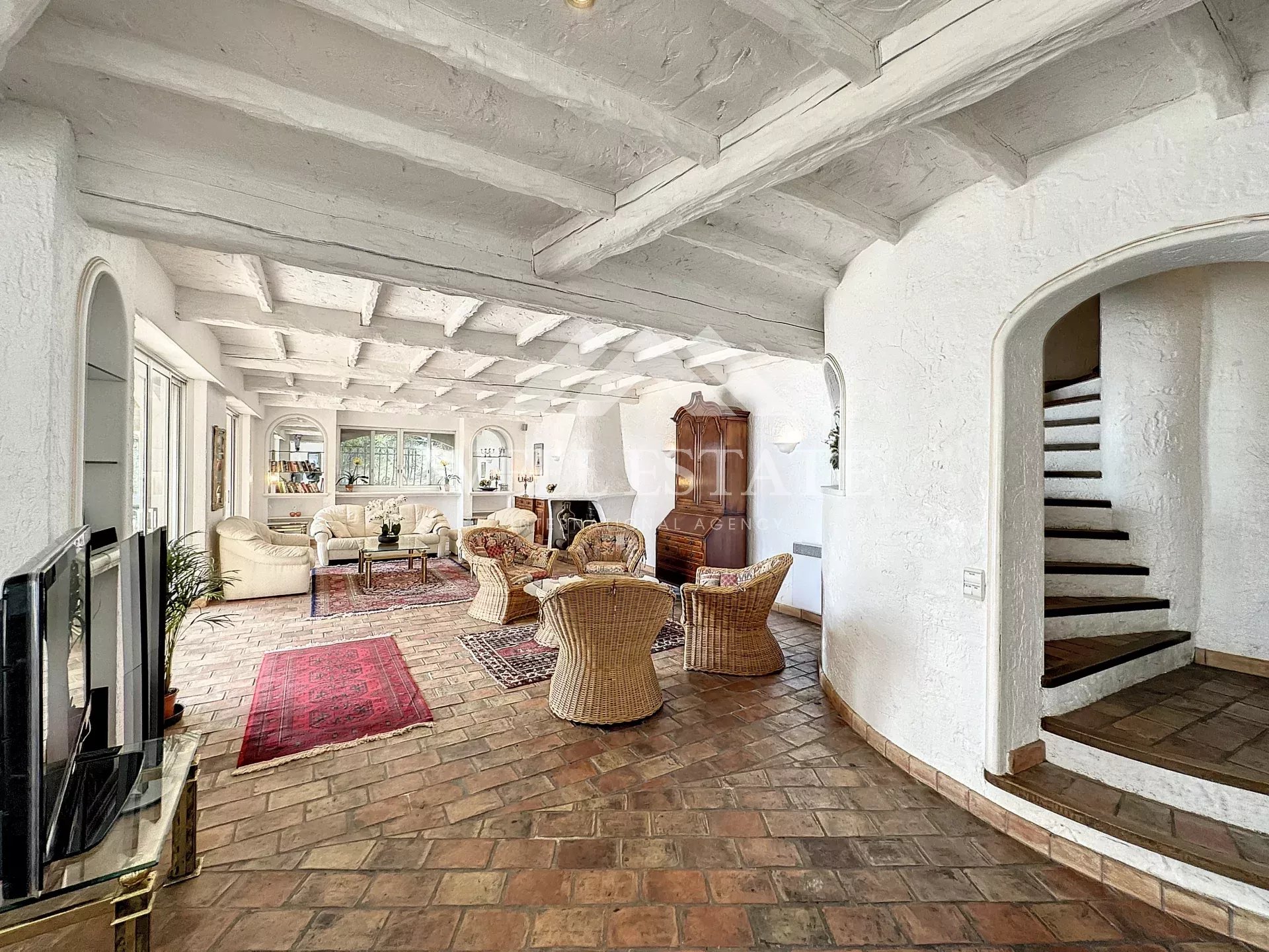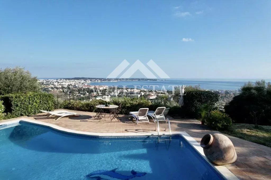 Sur les hauteurs de Golfe Juan, à mi-distance entre Antibes et Cannes, à seulement 10 minutes des plages, belle villa des années 1980 de style provençal. La villa exposée plein sud, sans vis-à-vis, jouissante d'une vue panoramique sur la mer et le Cap d'Antibes, avec le jardin de 2200m².
