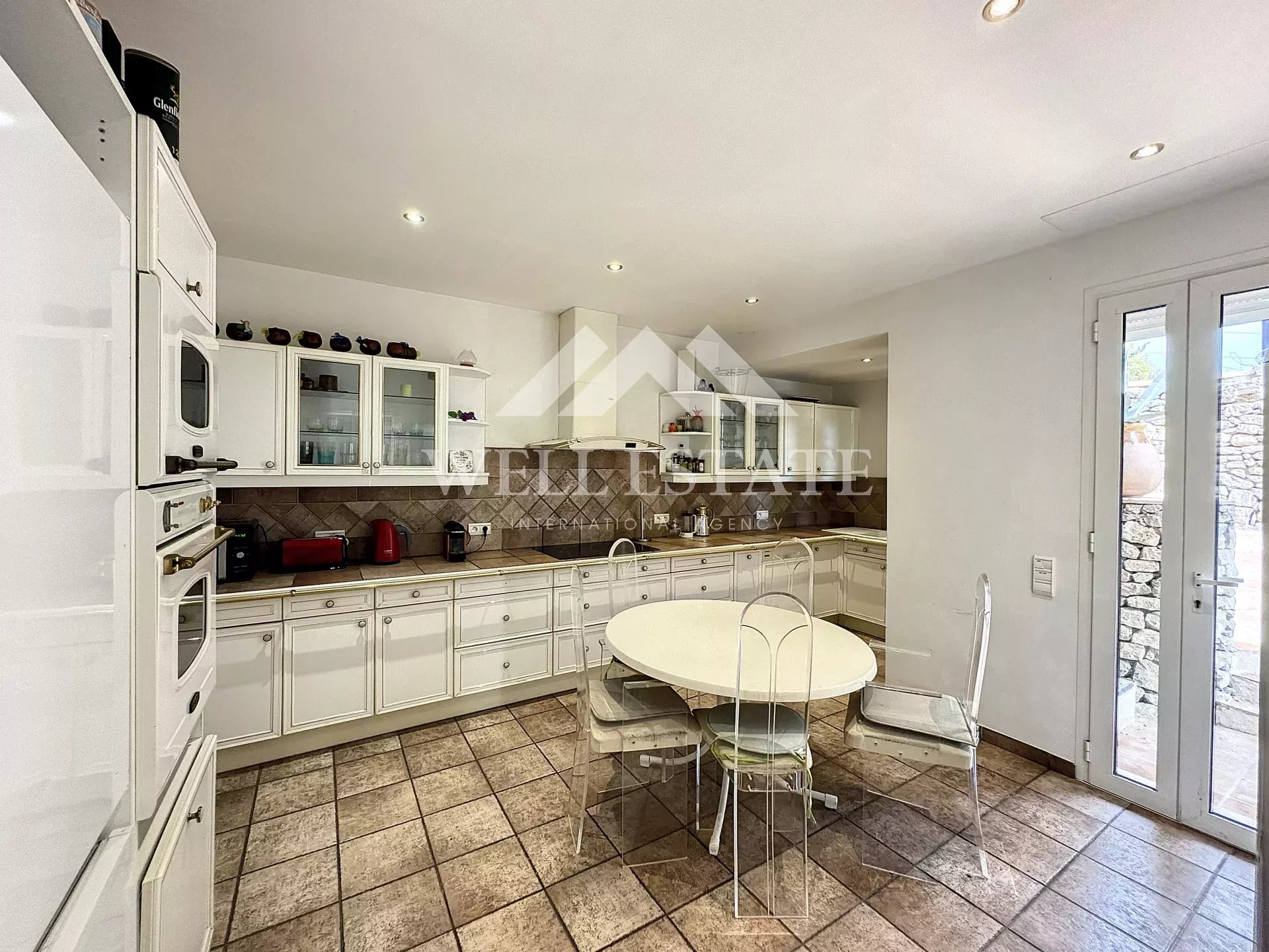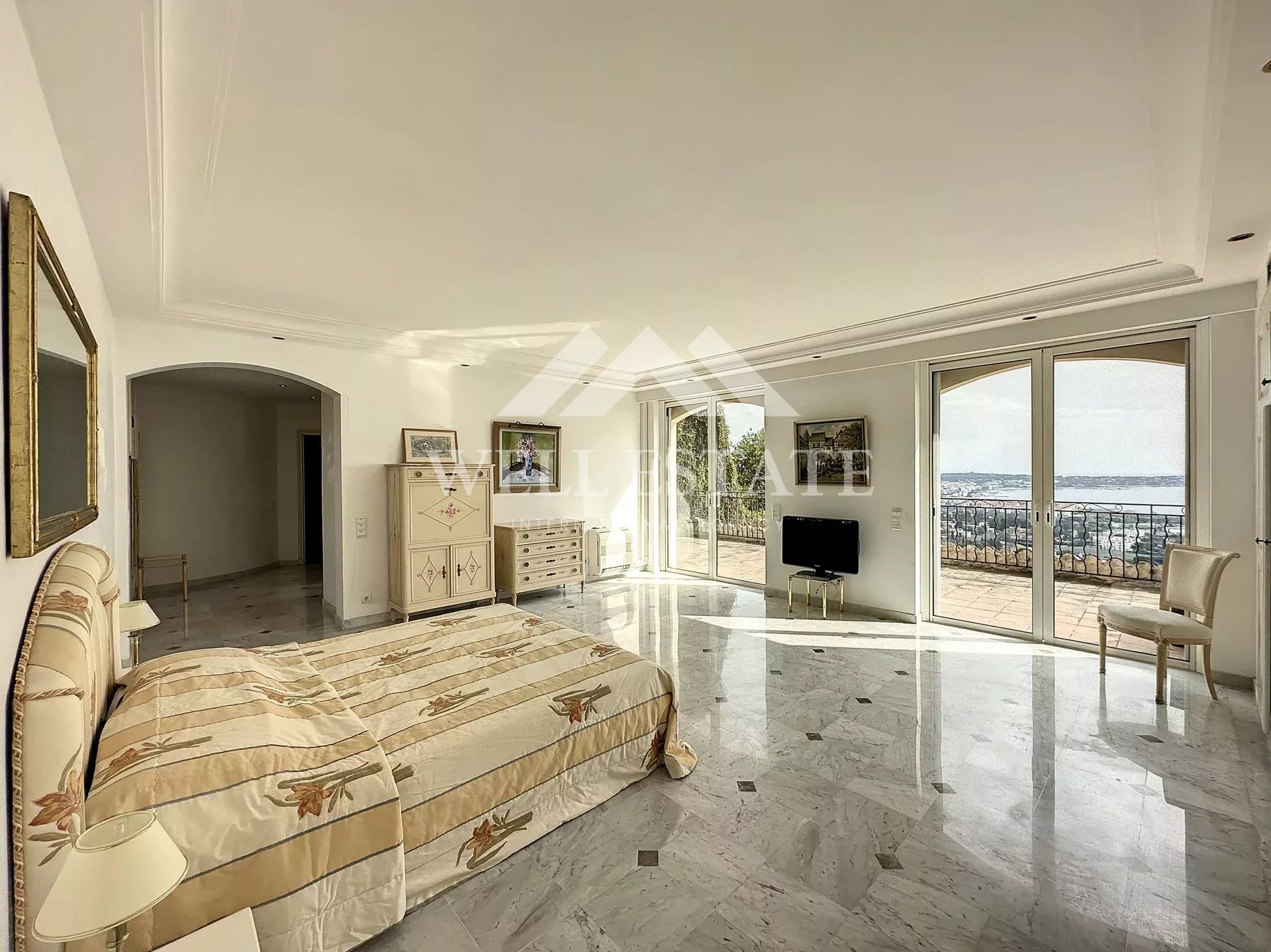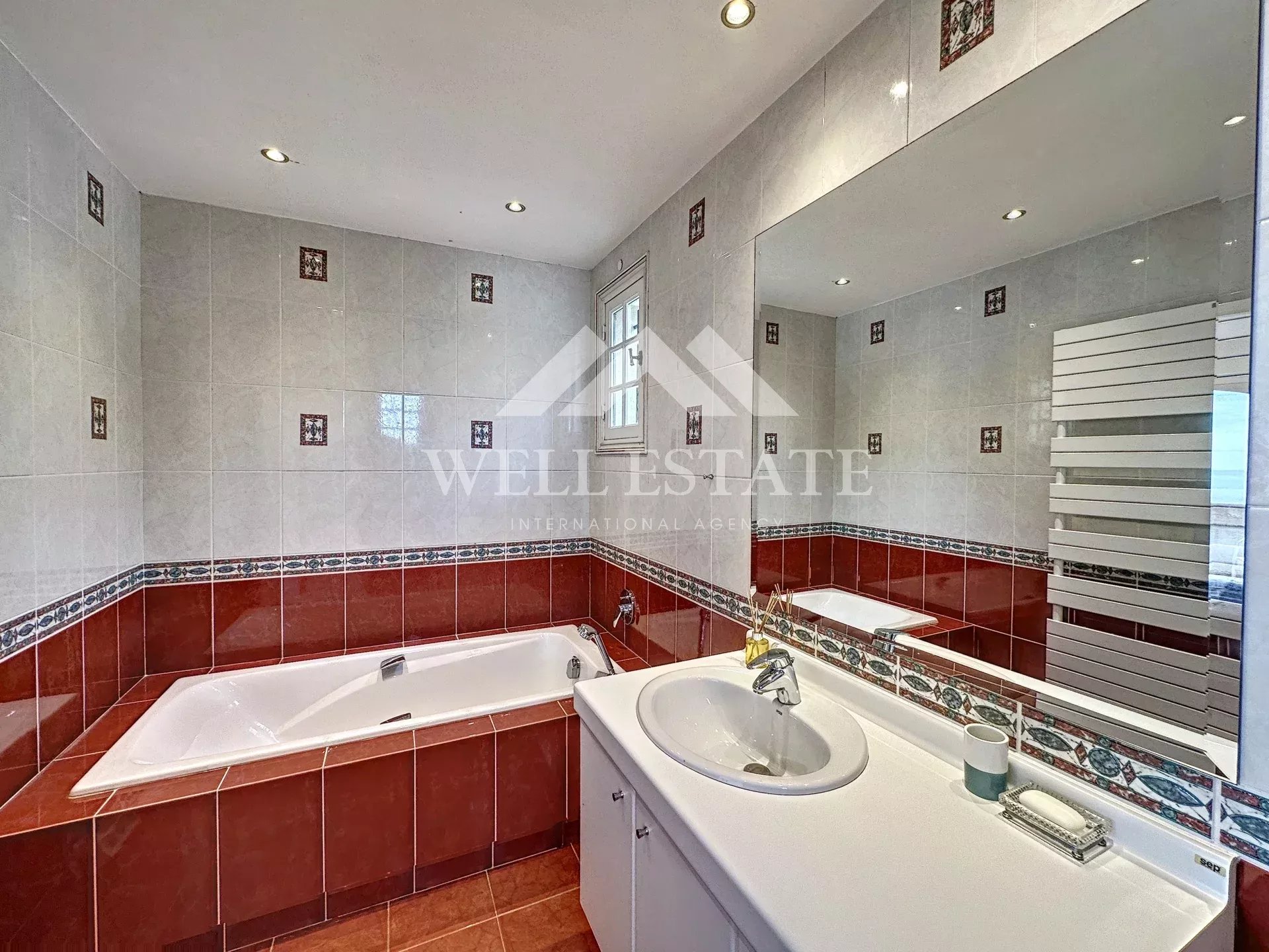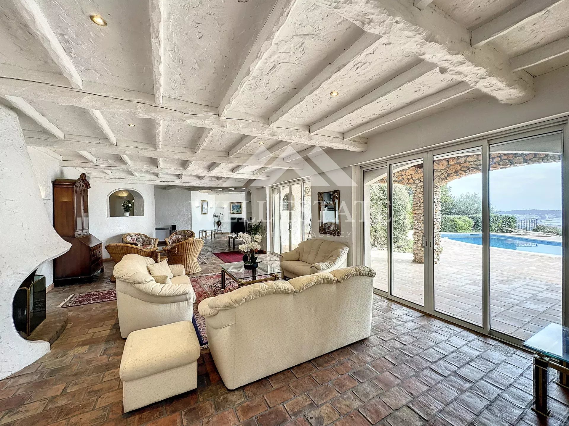 Sur les hauteurs de Golfe Juan, à mi-distance entre Antibes et Cannes, à seulement 10 minutes des plages, belle villa des années 1980 de style provençal. La villa exposée plein sud, sans vis-à-vis, jouissante d'une vue panoramique sur la mer et le Cap d'Antibes, avec le jardin de 2200m².