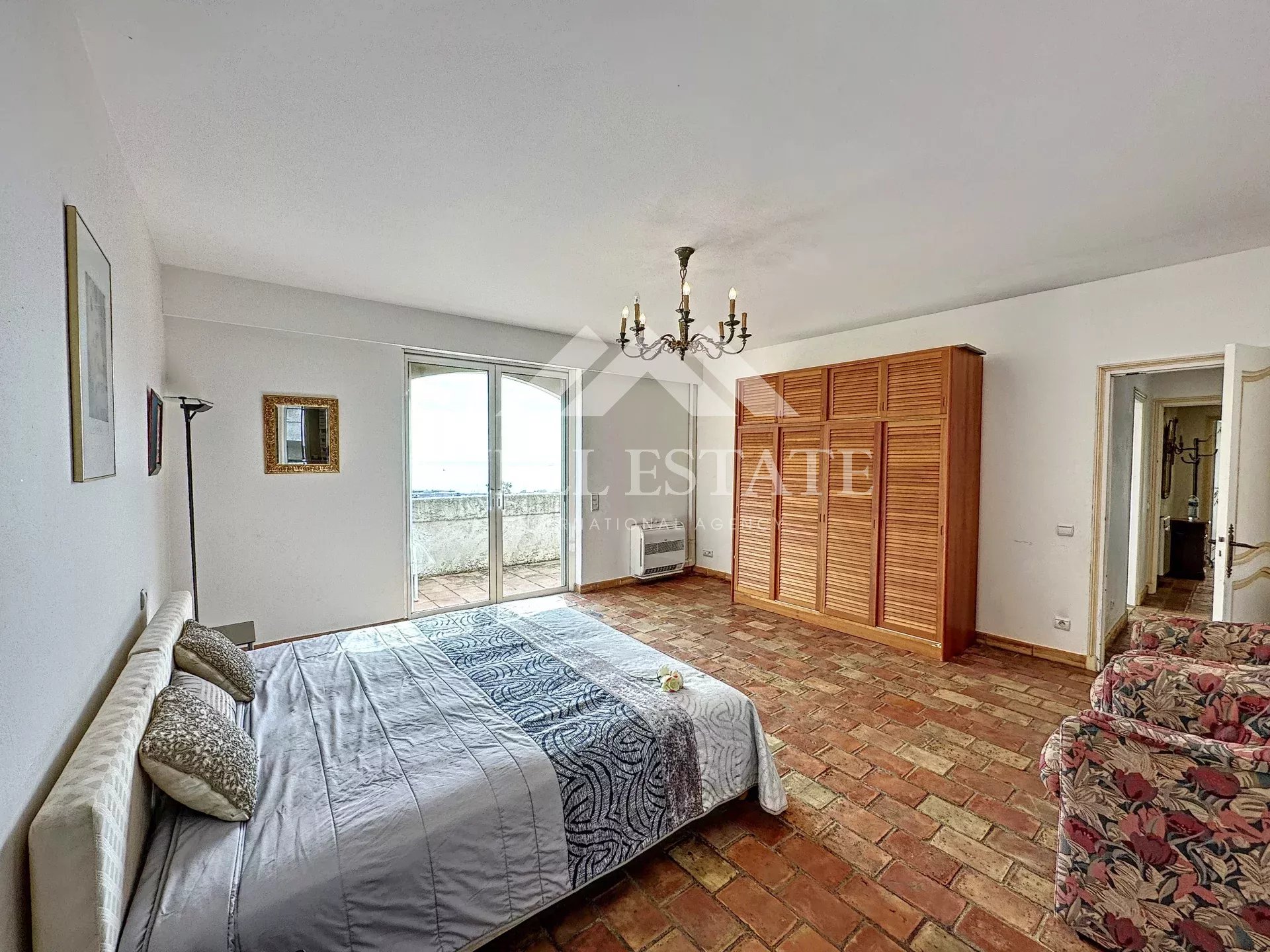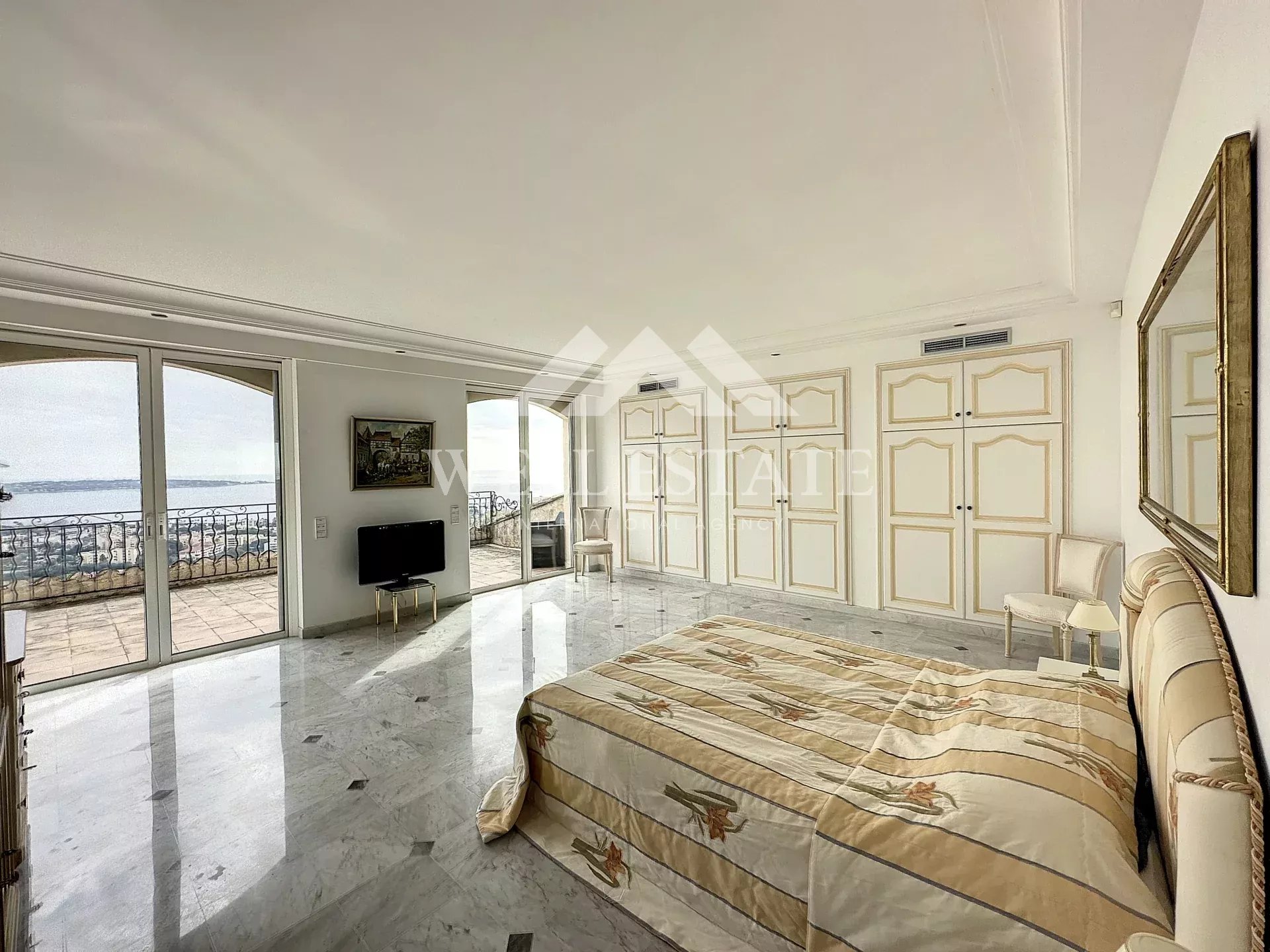 A l'étage: une belle suite de maître de 50m2 avec sa salle de bains, ainsi que deux autres chambres en suite, toutes donnant sur les terrasses vue mer panoramique.