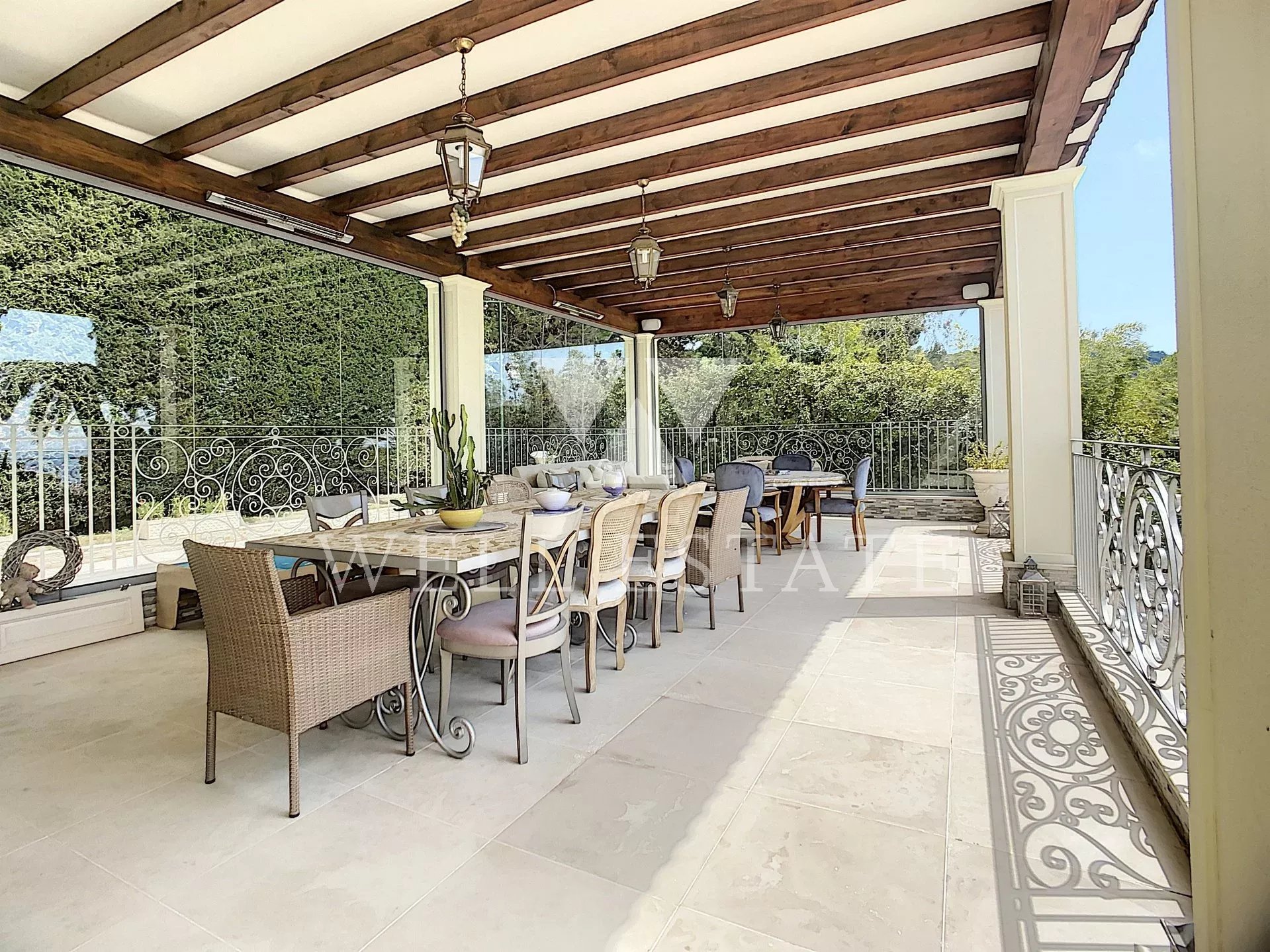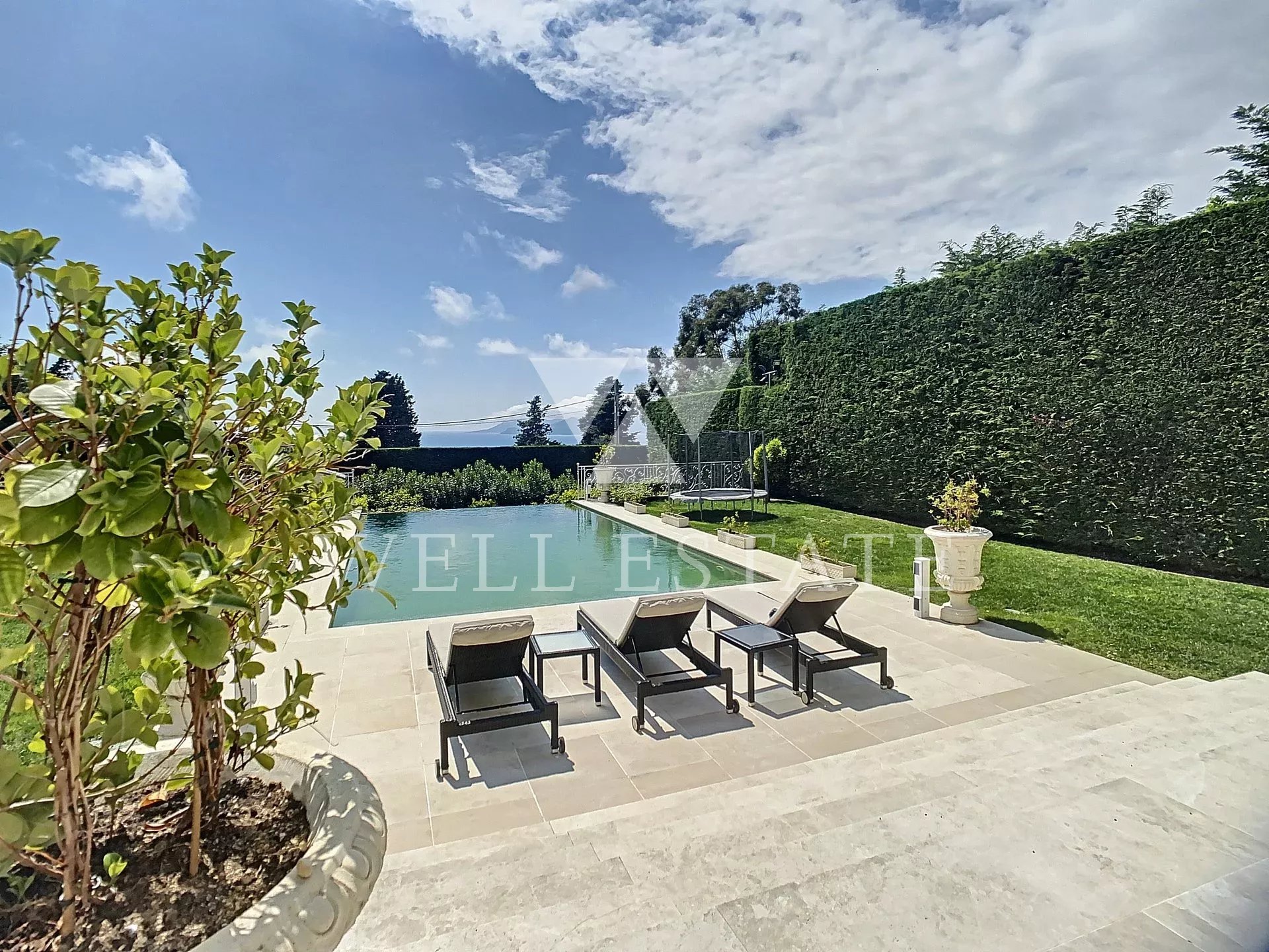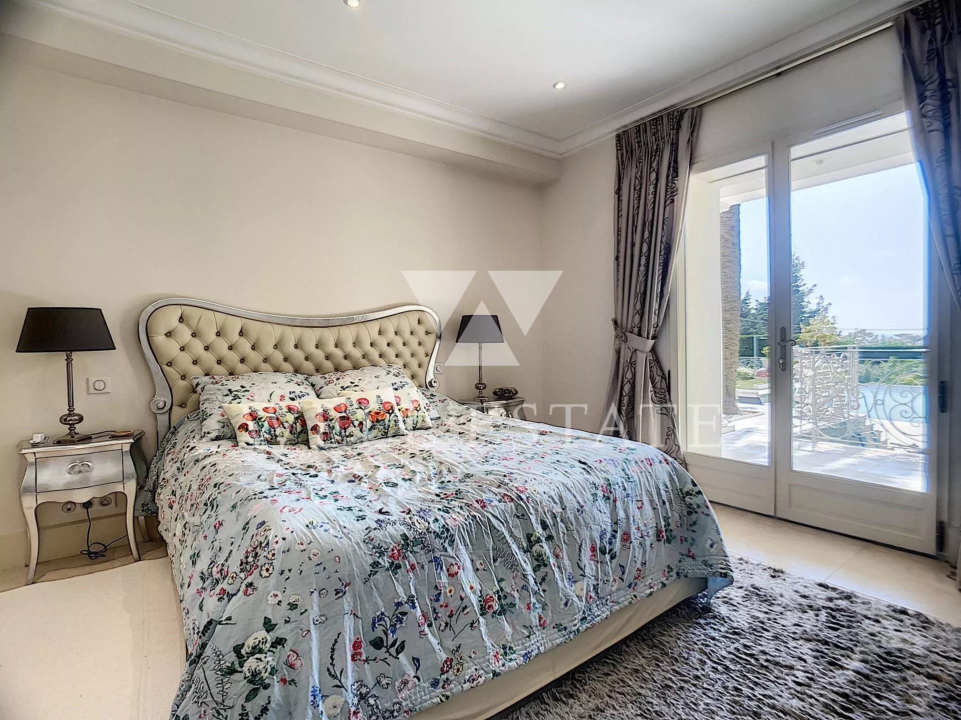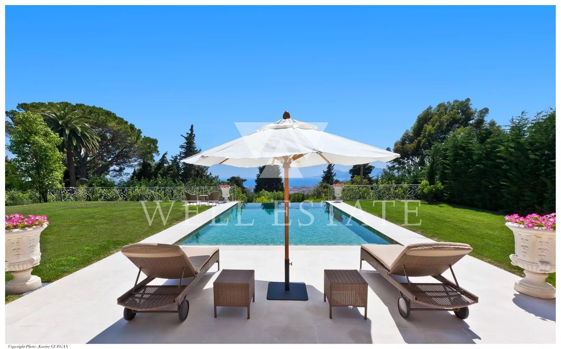 Magnifique villa en position dominante, bénéficiante d’une vue mer panoramique sur la baie de Cannes et l'Estérel, avec un jardin de 1600 m2 au coeur du quartier calme et plus recherché de Cannes.