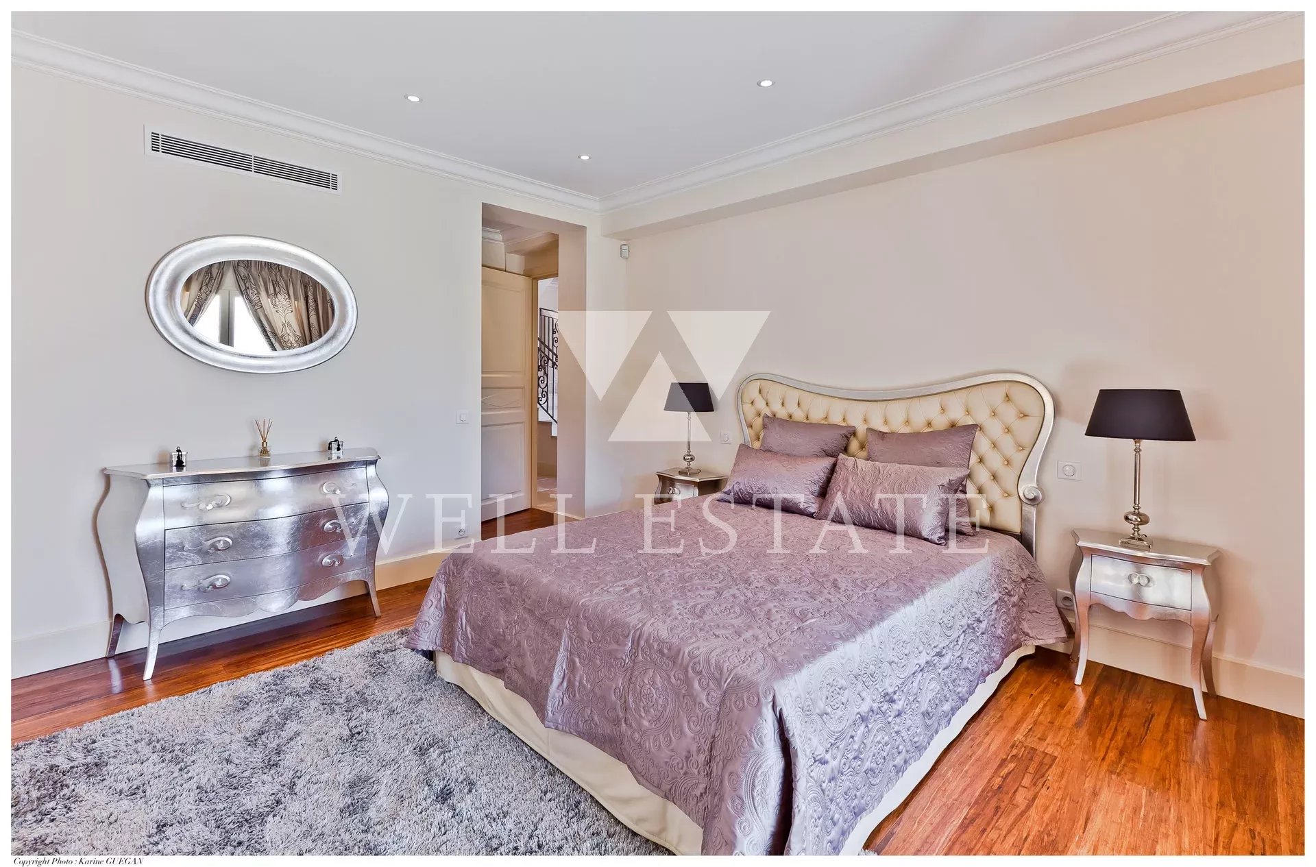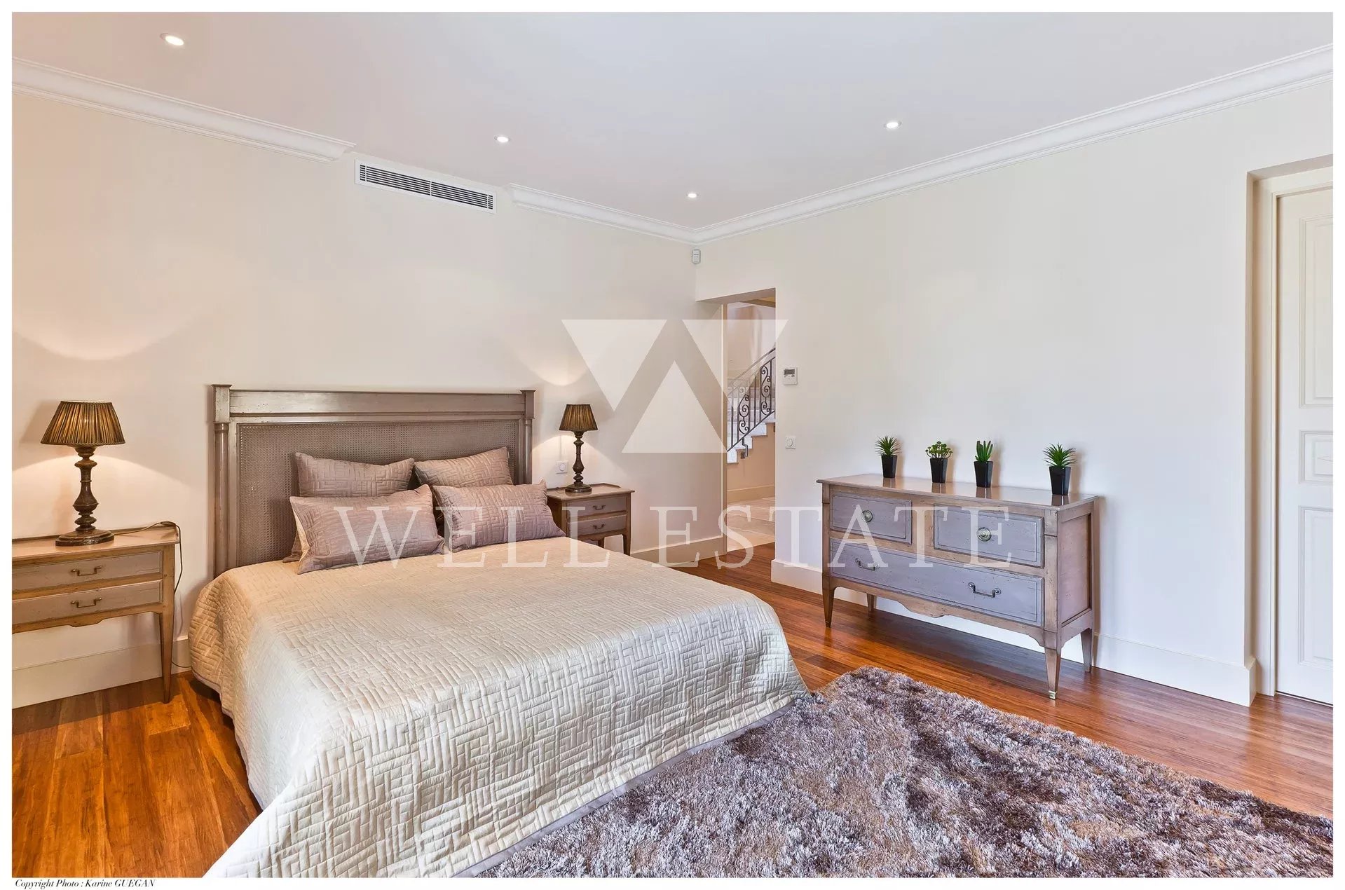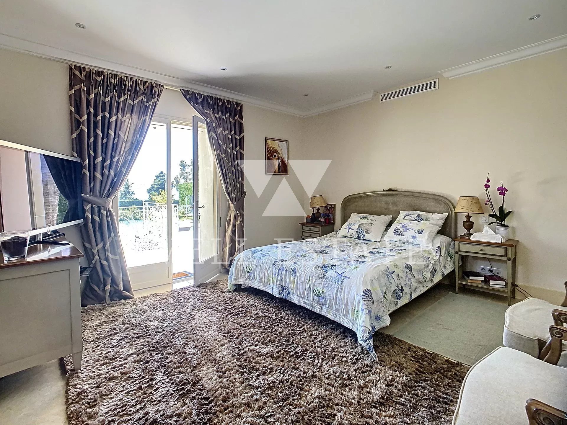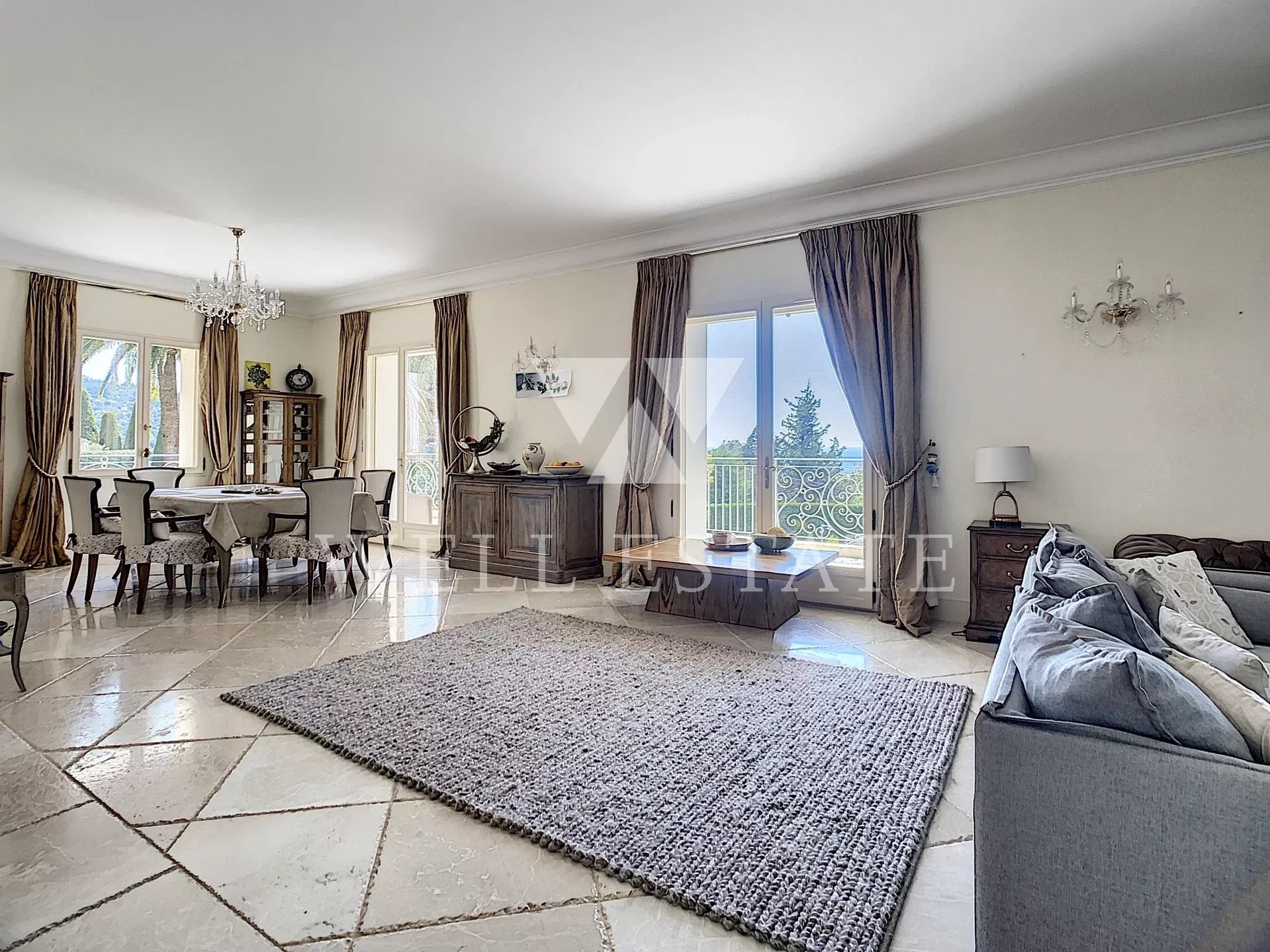 Magnifique villa en position dominante, bénéficiante d’une vue mer panoramique sur la baie de Cannes et l'Estérel, avec un jardin de 1600 m2 au coeur du quartier calme et plus recherché de Cannes.