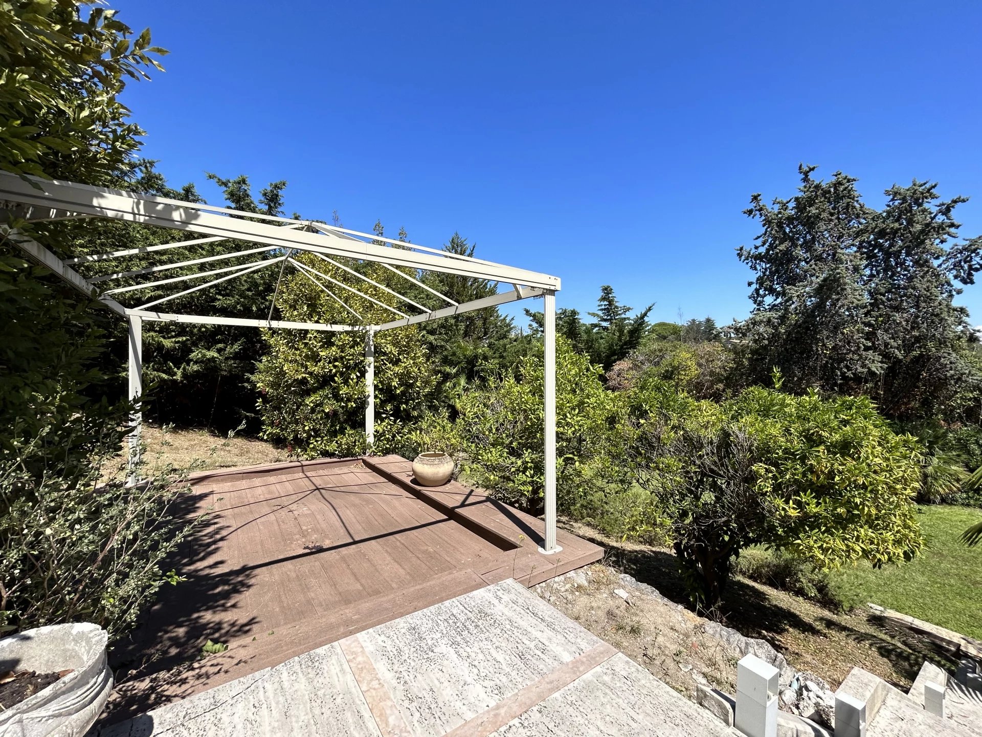 Maison rare à la vente, dans les collines calmes et très prisées de Super Cannes, à quelques minutes en voiture du centre de Cannes, venez découvrir cette très belle maison en bon état au style contemporain avec une touche Italienne.