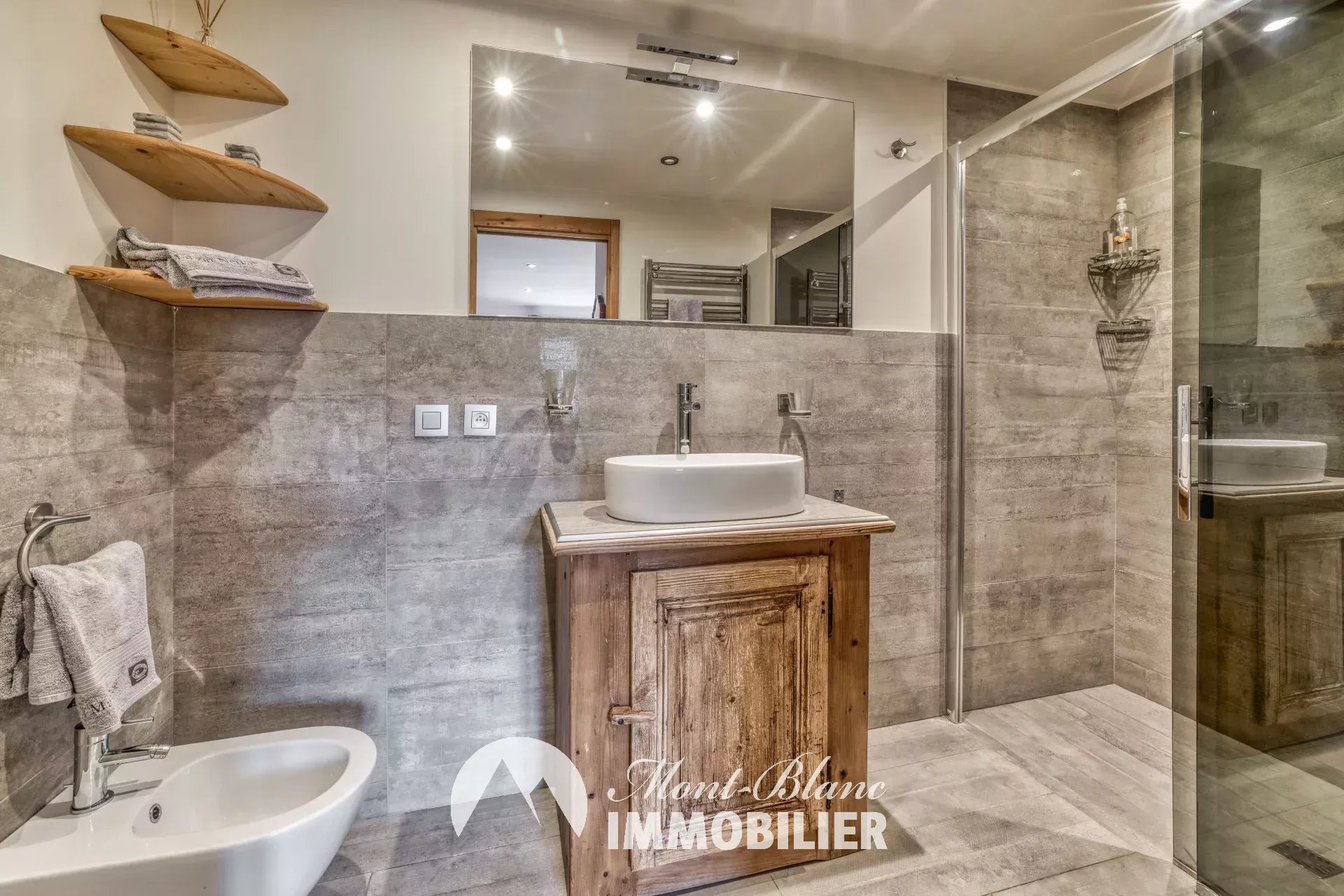 Location long terme A louer sur le secteur calme et préservé de Maison Neuve aux Houches. Appartement 4 pièces d'environ 90m² composé comme suit : entrée avec cellier, pièce de vie avec cheminée, cuisine semi-ouverte, deux chambres doubles, une salle d'eau, un WC séparé, une suite parentale avec salle d'eau, WC et bidet, terrasse, place de parking extérieur et casier à ski. Meublé Loyer charges comprises : 3000€ (dont 120€ de provisions pour charges comprenant électricité et charges d'entretien du bâtiment) Dépôt de garantie : 3000€