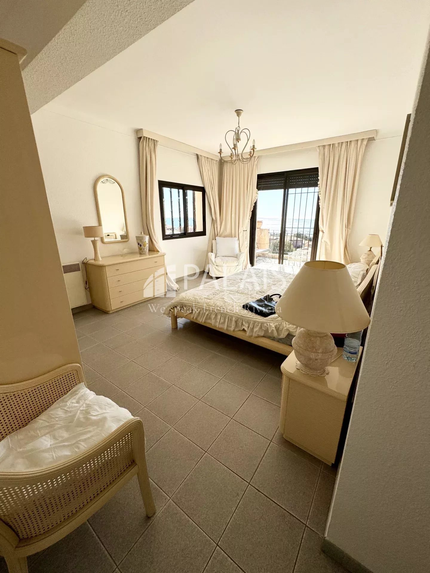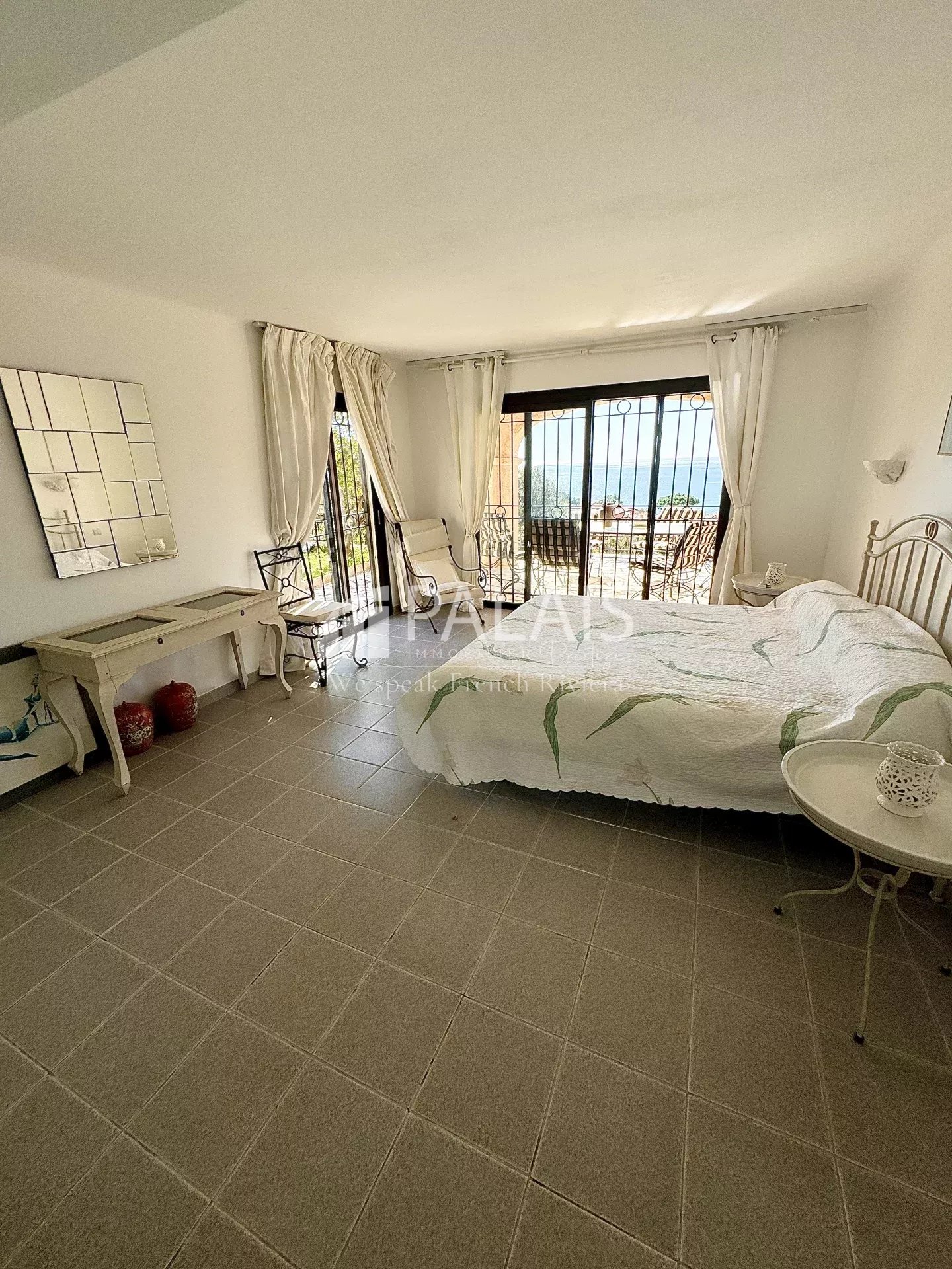 le long du couloir à gauche une chambre parentale avec accès à une immense terrasse,