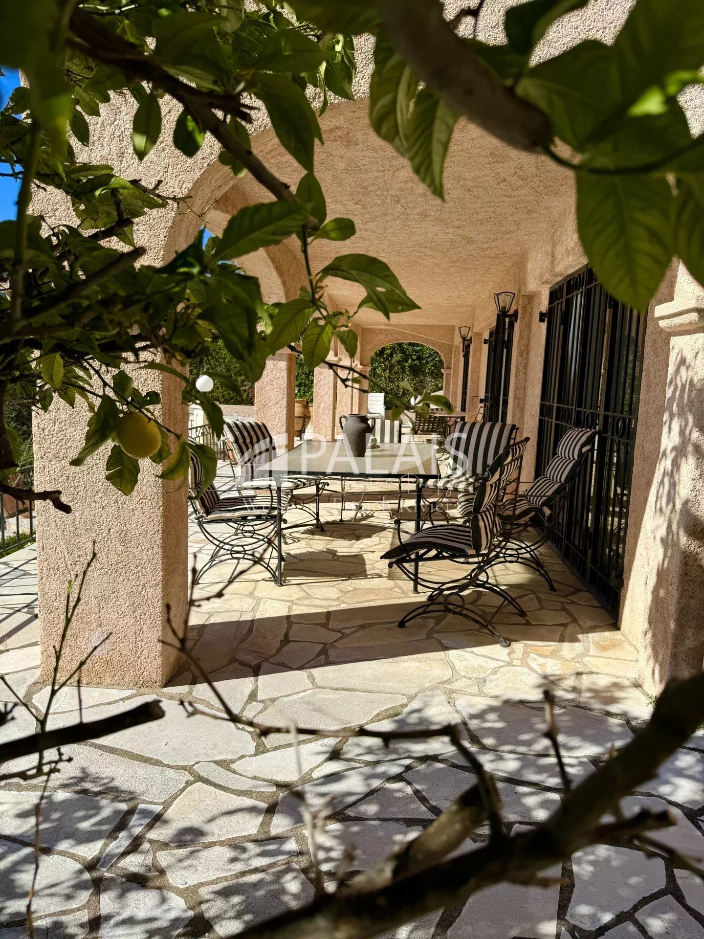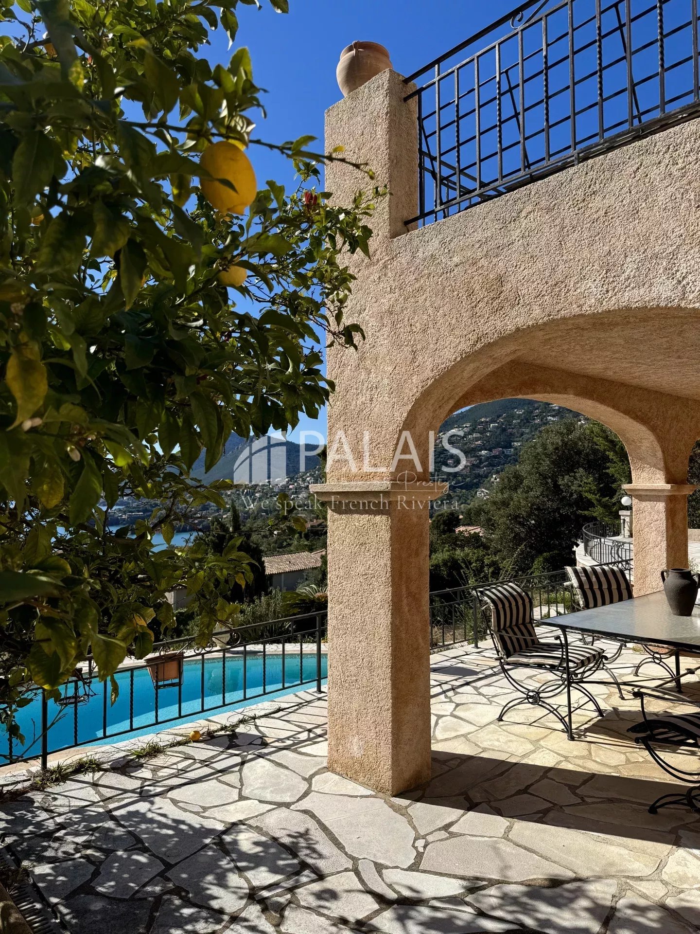 Toutes les pièces ont accès à la terrasse et à la piscine située un niveau en dessous.